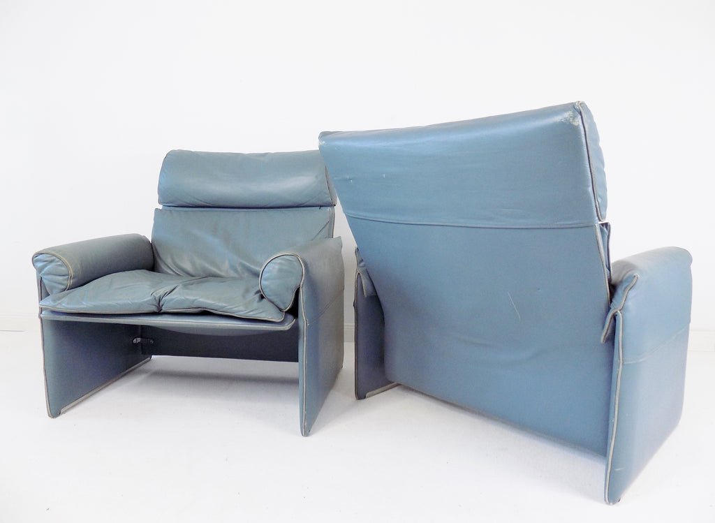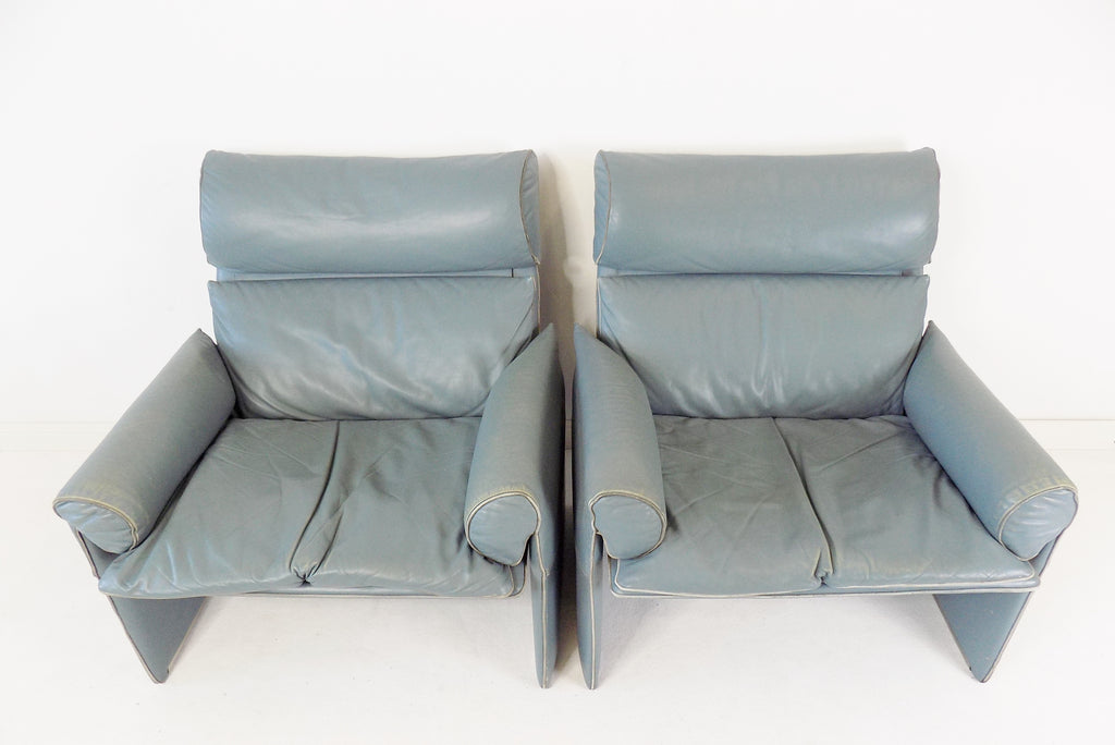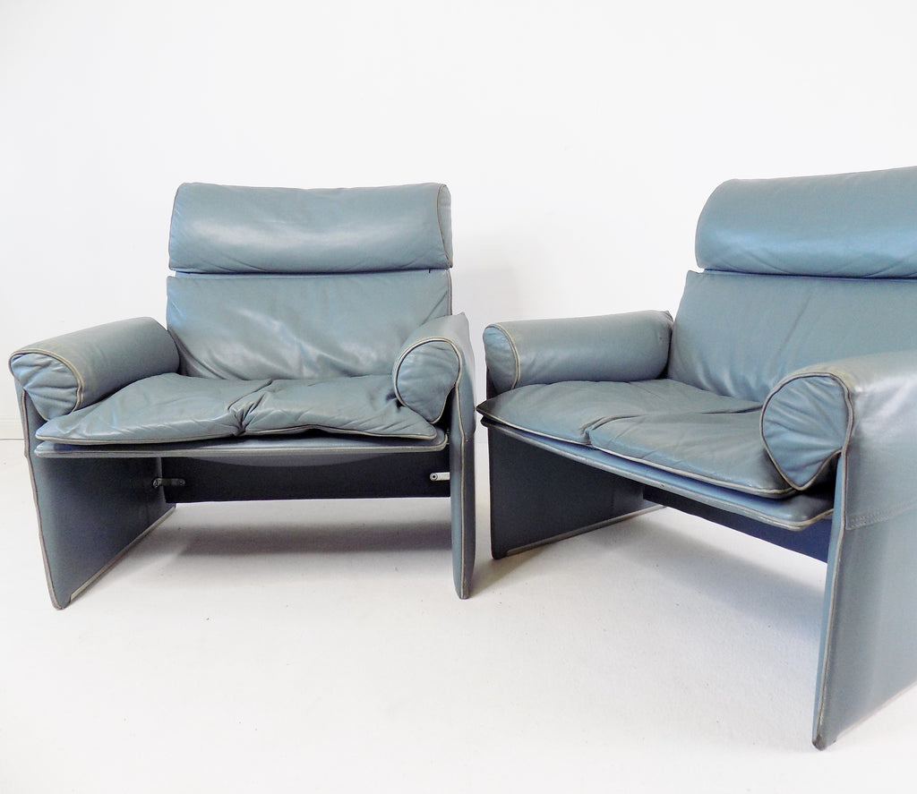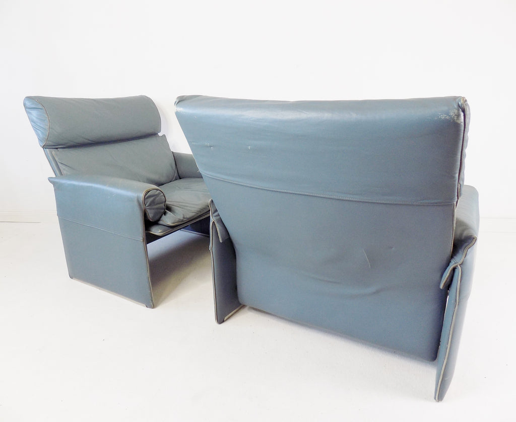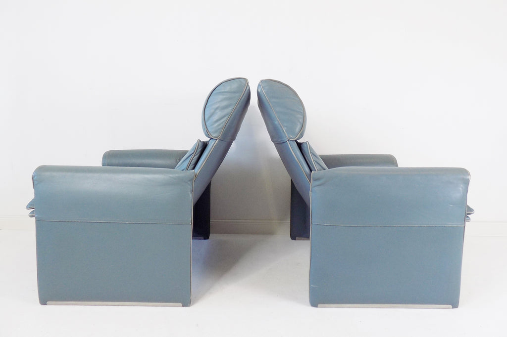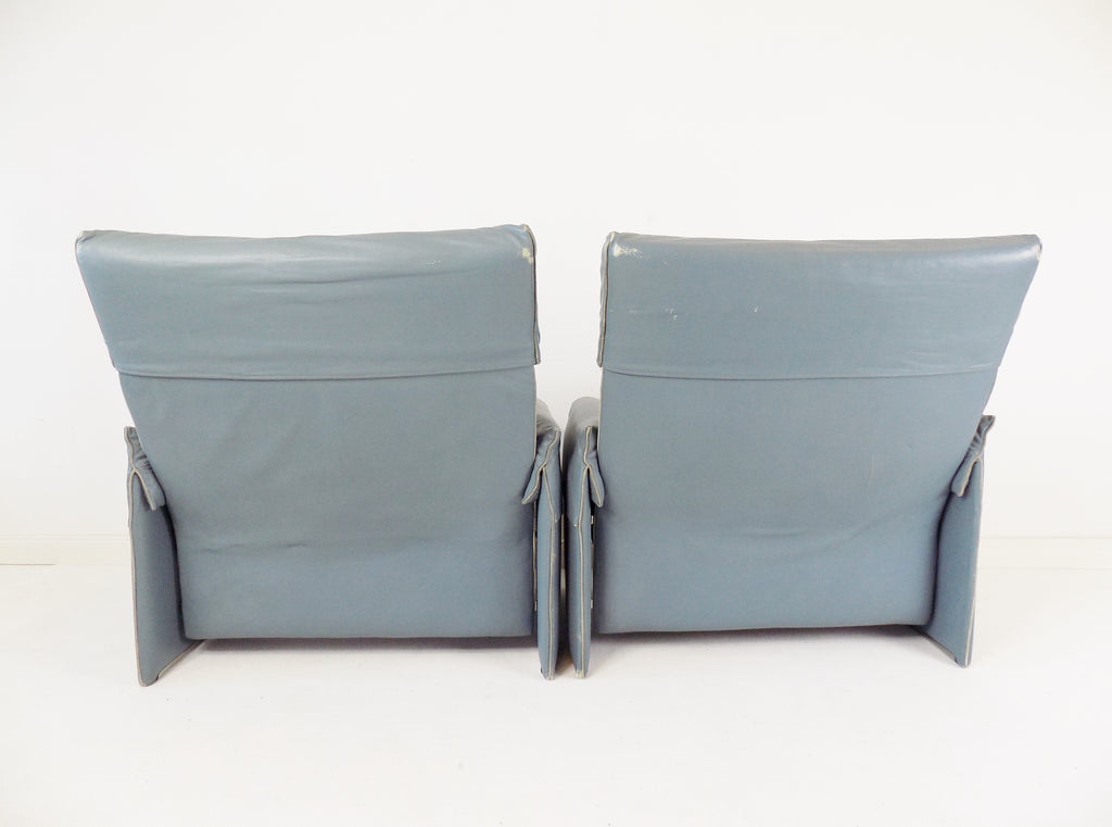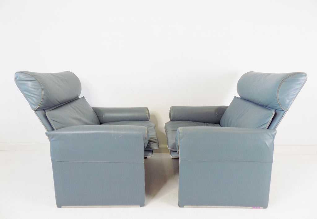 이 2개의 Dream 라운지 의자 세트는 매우 트렌디한 그레이 블루 가죽으로 제공됩니다.