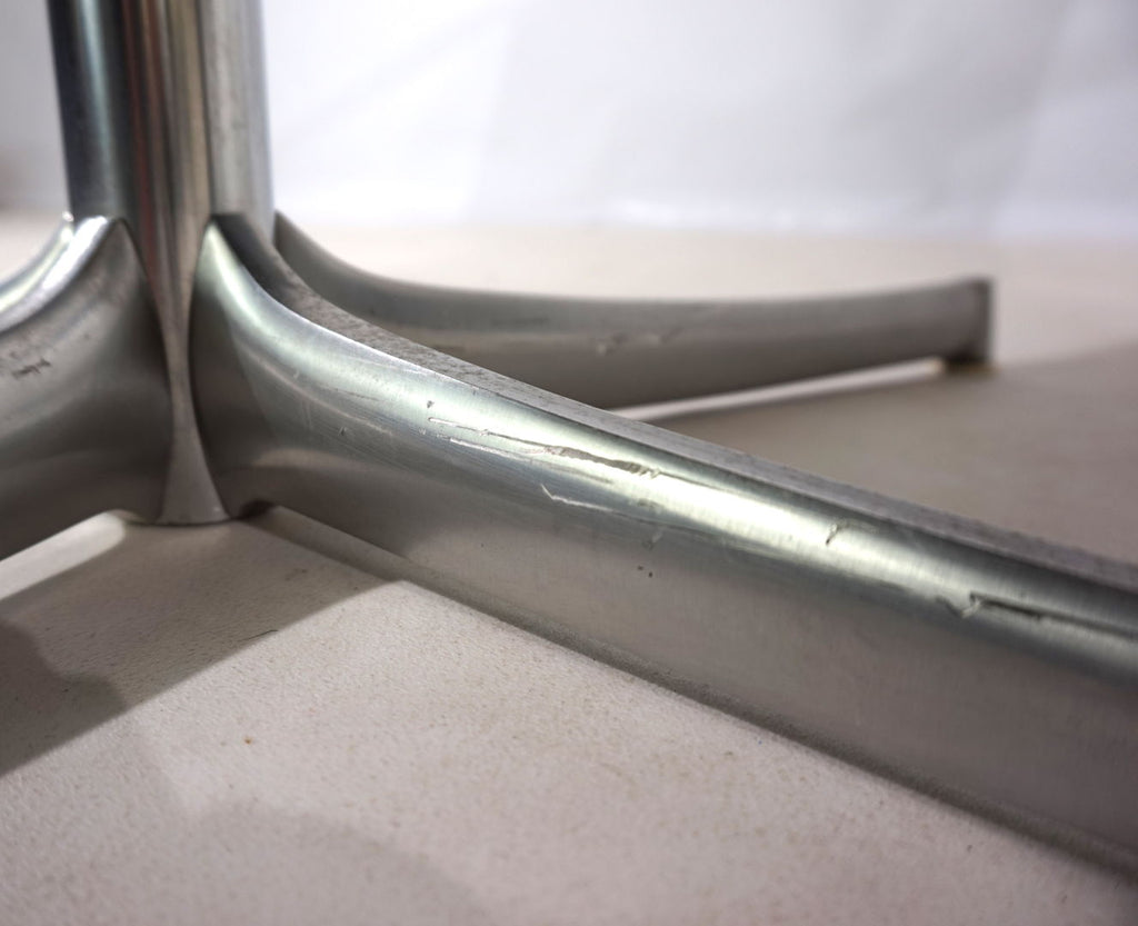검정색 가죽으로 제작된 이 아름다운 FK 711 사무용 의자는 상태가 매우 좋습니다. 스테인리스 스틸 팔걸이는 가죽으로 덮여 있어 매우 고급스러운 느낌을 줍니다. 검정색 가죽은 사용 흔적이 거의 없으며 스테인리스 스틸 프레임은 완벽한 상태입니다. 한쪽 의자의 등받이와 의자의 별 모양 다리에만 약간의 사용 흔적이 있습니다. 의자는 회전이 가능합니다. 1970년대 Fabricius와 Kastholm이 W. Knoll을 위해 디자인한 클래식하고 견고하며 최상의 상태를 유지하는 디자인입니다. Walter Knoll 제조소는 최고 품질의 가구로 유명하며 항상 당대 가장 혁신적인 디자이너들과 협력해 왔습니다.