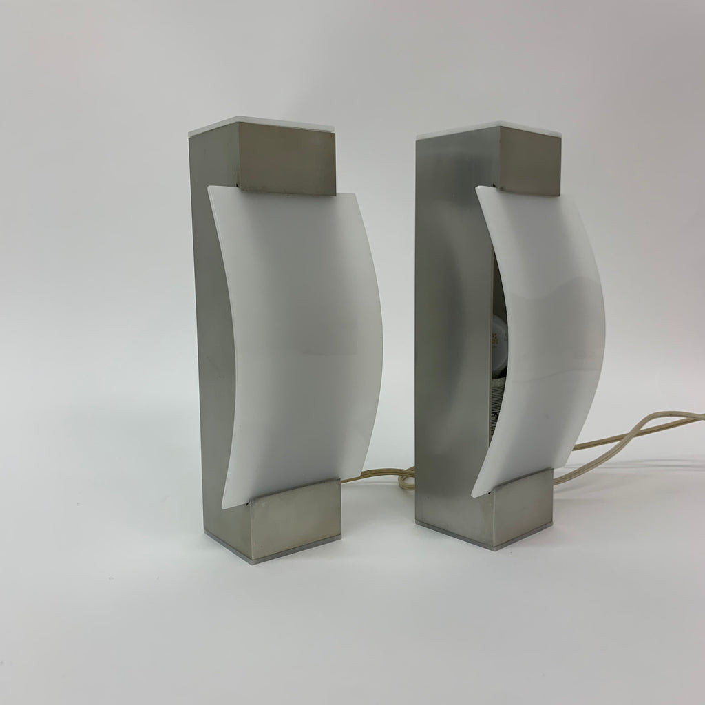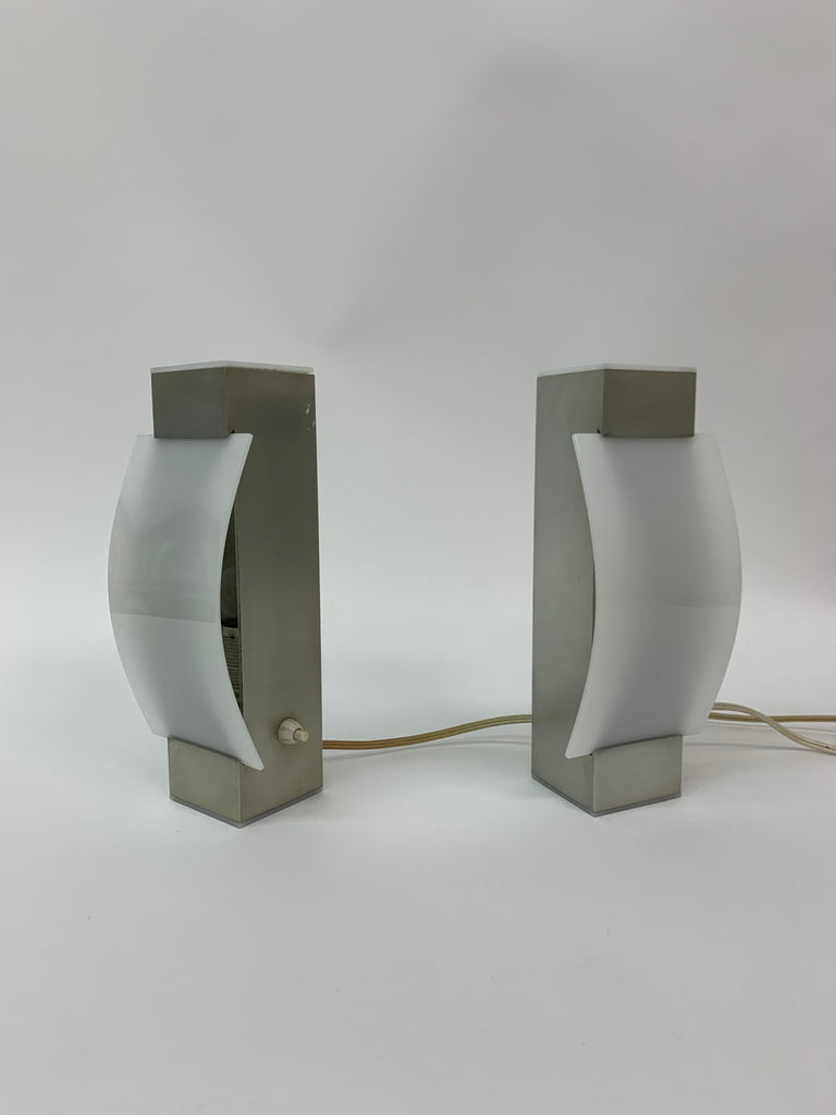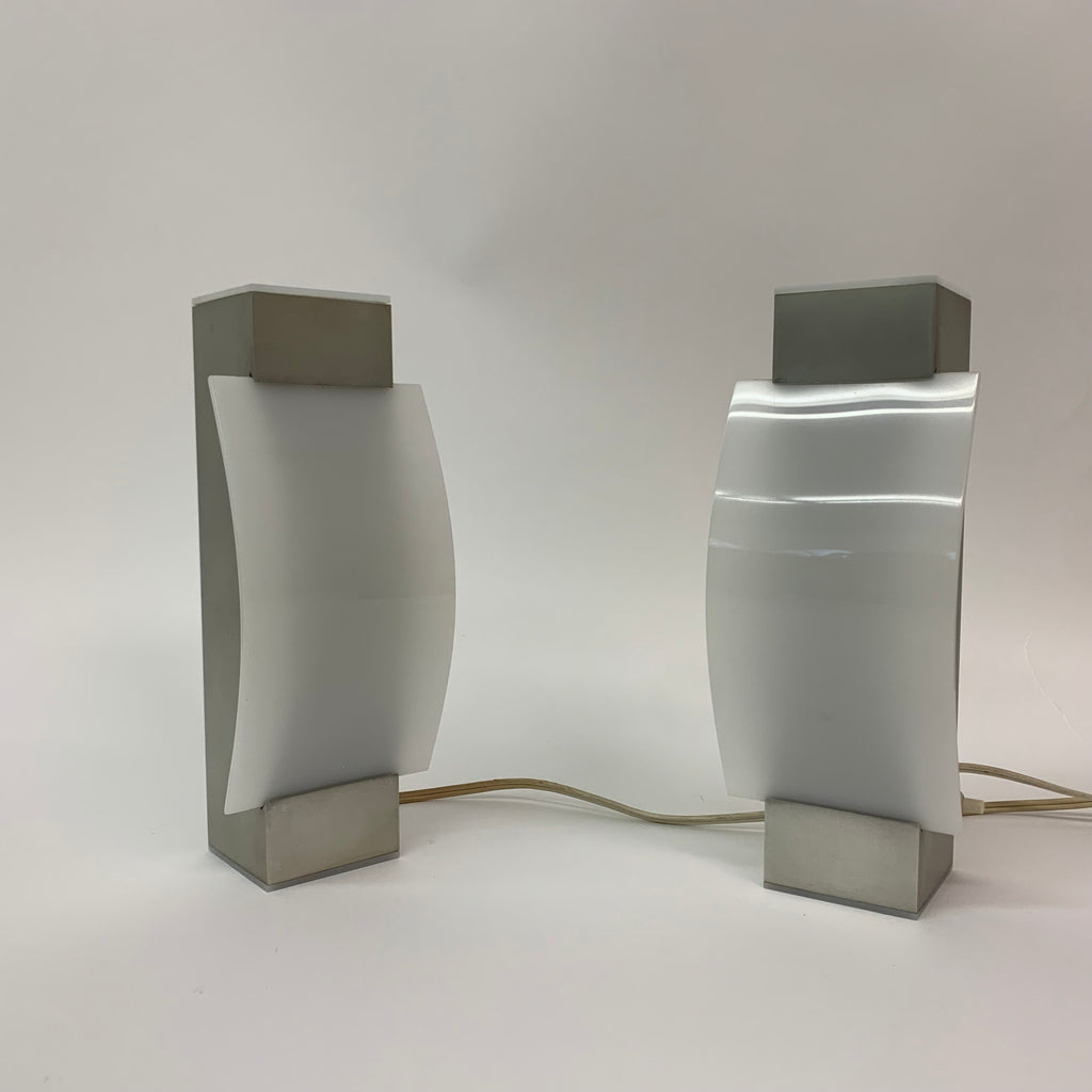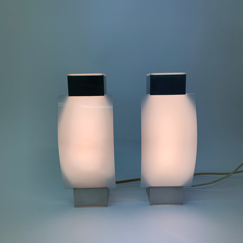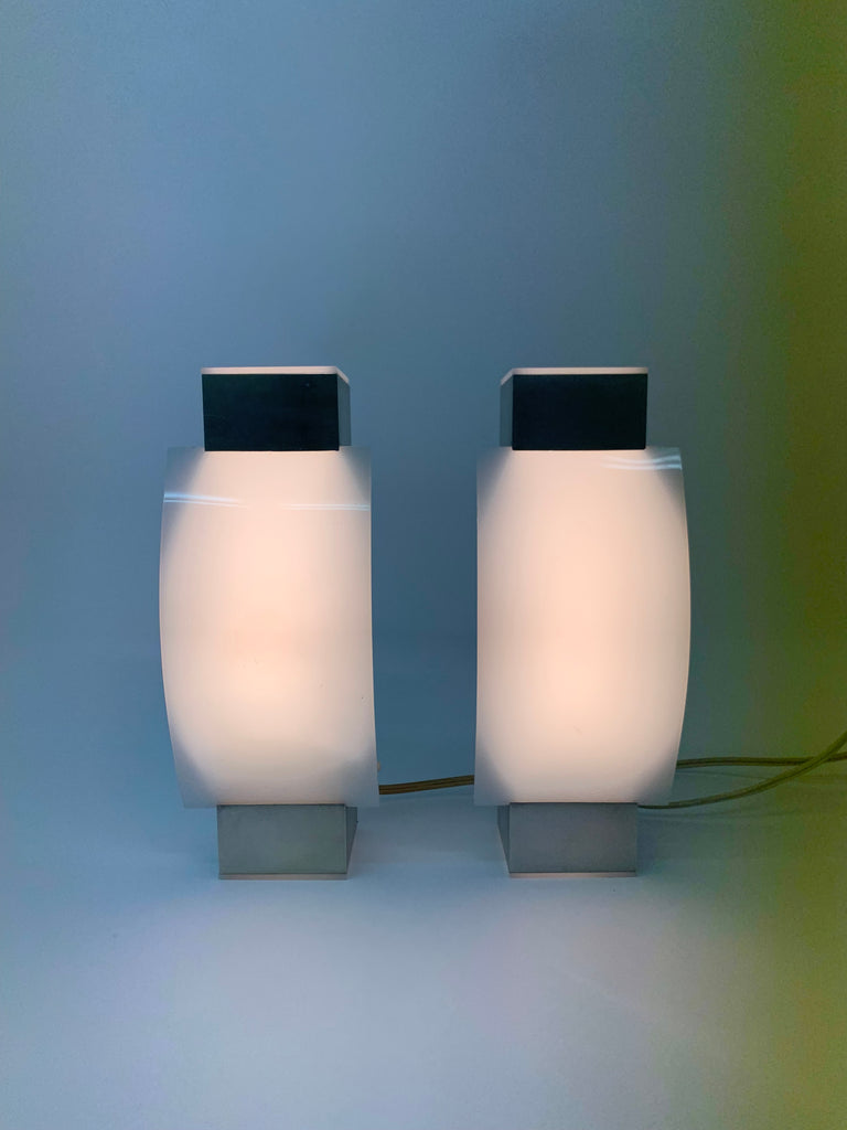 Set of 2 Raak table lights 1970’s Dutch design aluminium and lucite