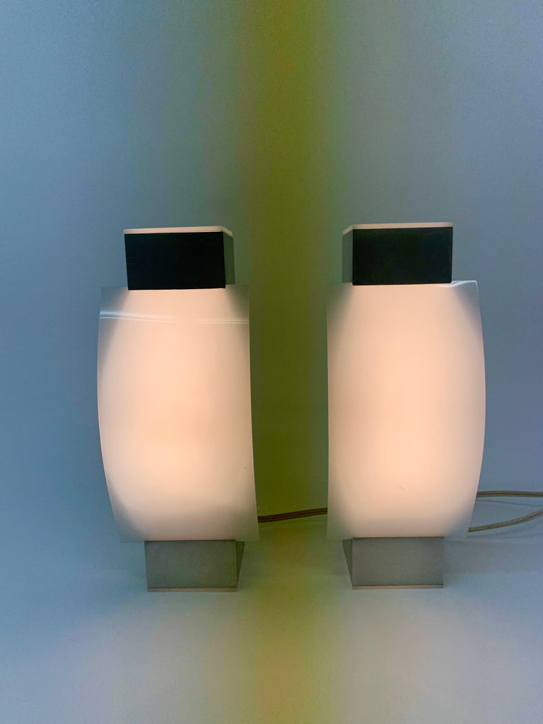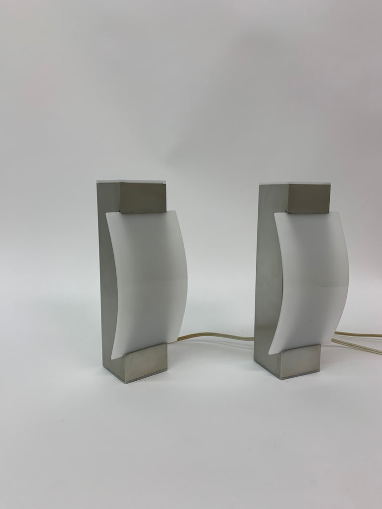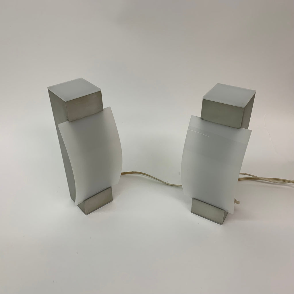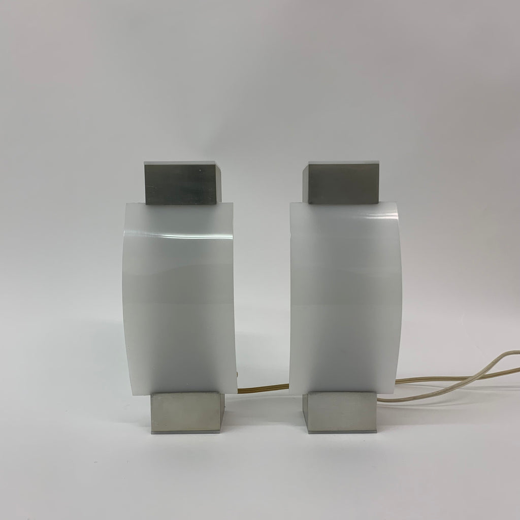 Set of 2 Raak table lights 1970’s Dutch design aluminium and lucite