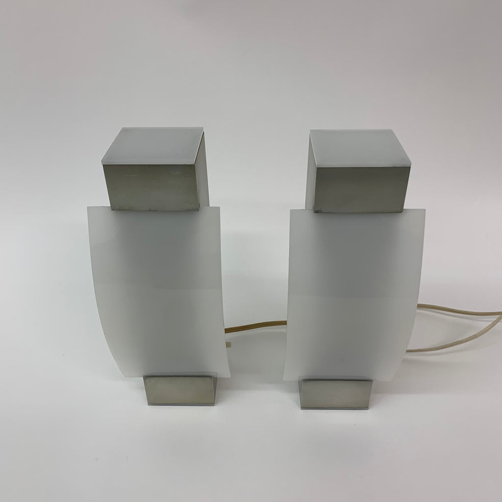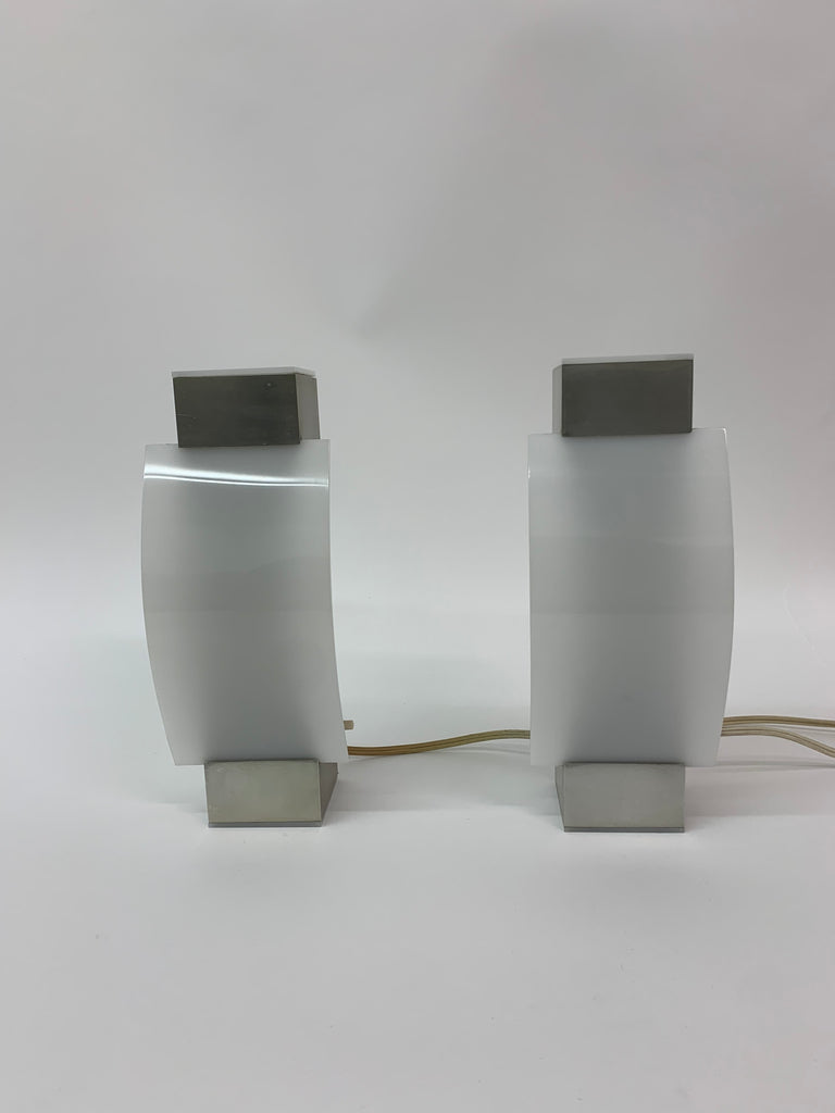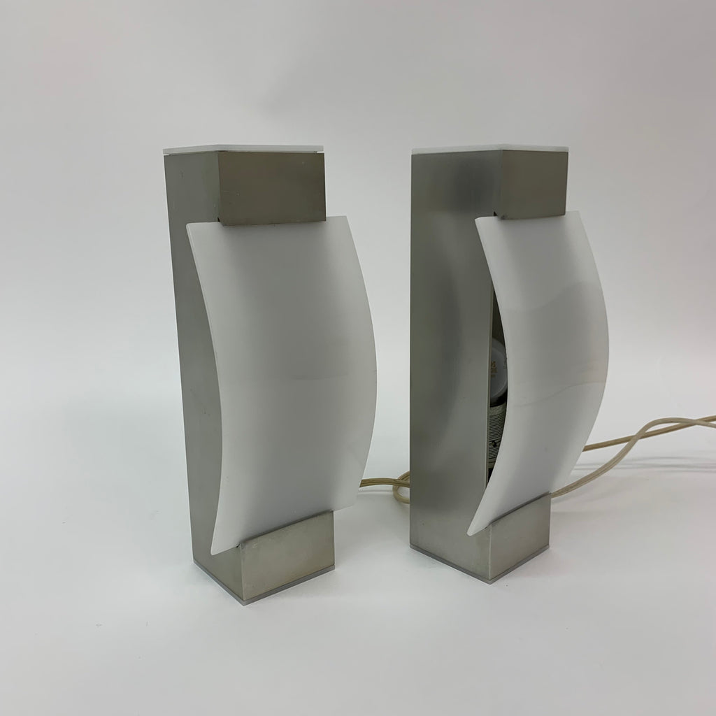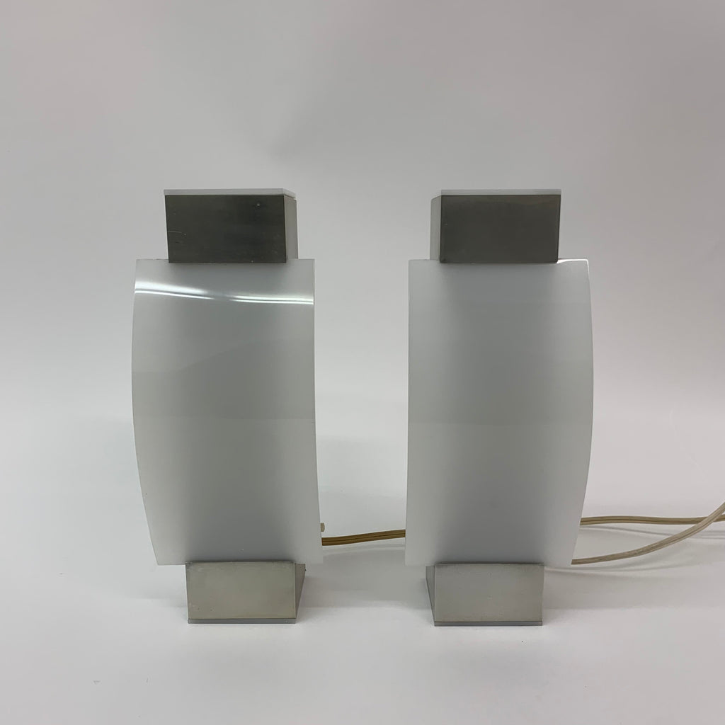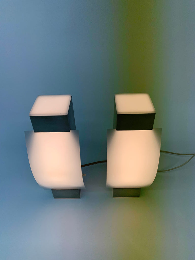 Set of 2 Raak table lights 1970’s Dutch design aluminium and lucite