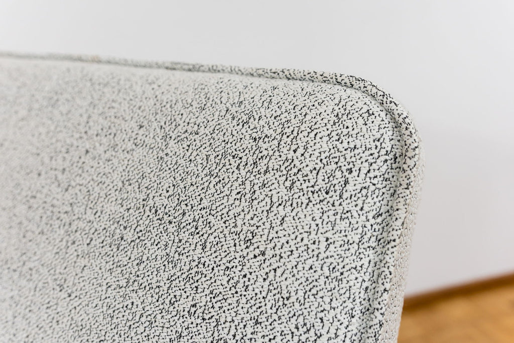 Reupholstered in black and white fabric.