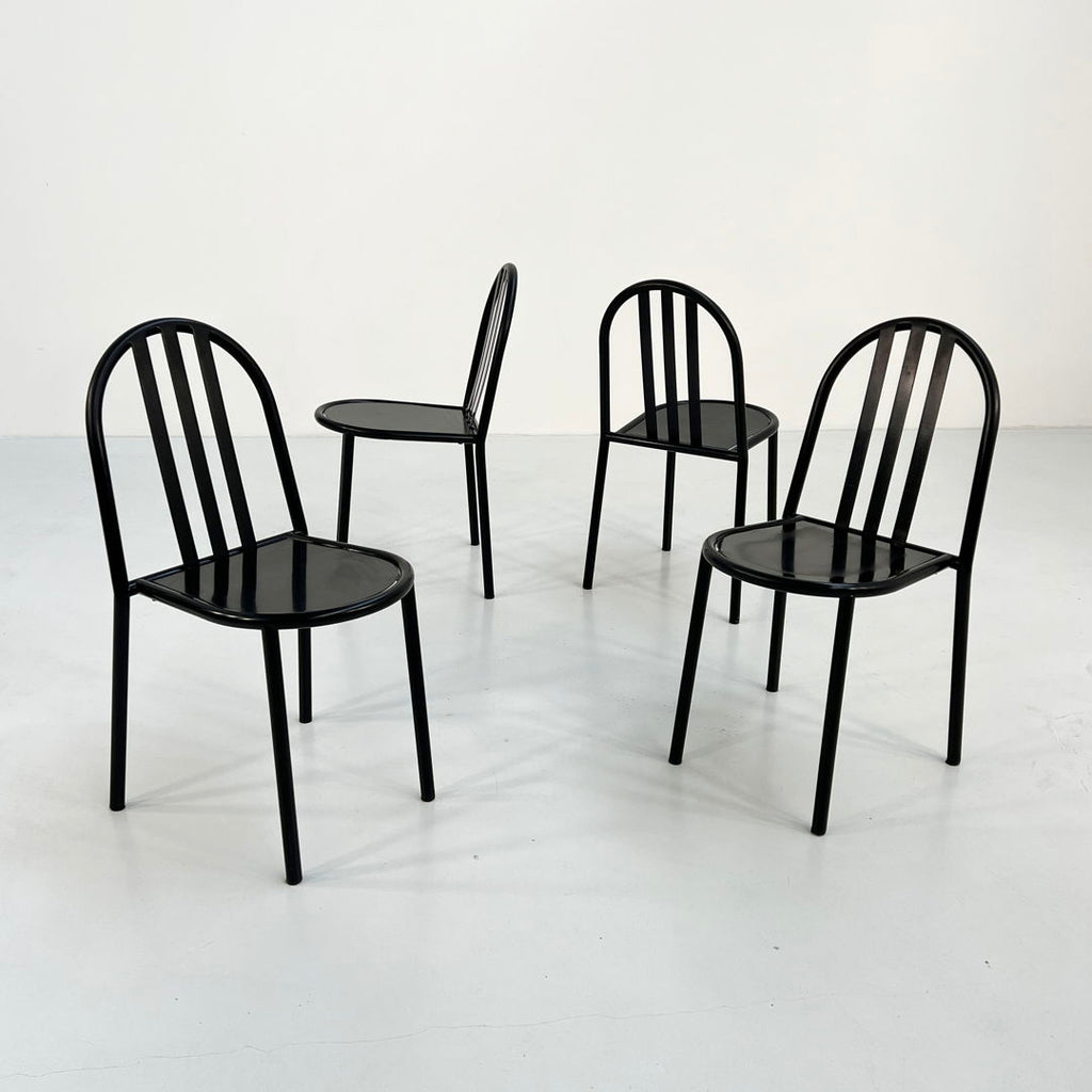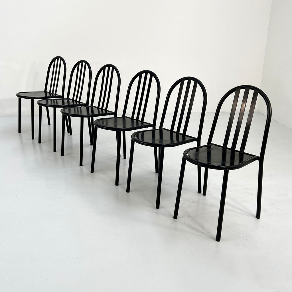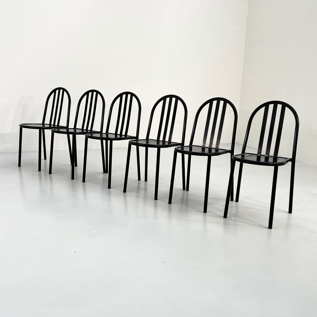 Pallucco Italia를 위한 Robert Mallet-Stevens의 No.222 의자 6개 세트, 1980년대 디자이너 - Robert Mallet-Stevens 프로듀서 - Pallucco Italia 모델 - No.222 의자 디자인 기간 - 80년대 치수 - 폭 40 cm x 깊이 40 cm x 높이 82 cm x 시트 높이 46 cm 재질 - 메탈 색상 - 블랙 상태 - 좋음 의견 - 사용연령 및 사용감에 맞게 가벼운 착용감입니다.