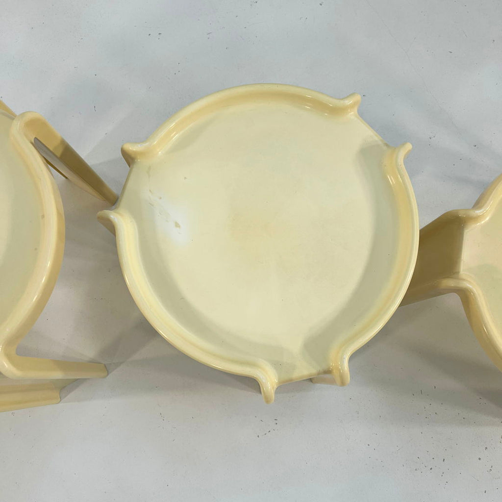 Kartell을 위한 Giotto Stoppino의 네스팅 테이블 세트, 1970년대 디자이너 - Giotto Stoppino 프로듀서 - Kartell 모델 - 네스팅 테이블 디자인 기간 - 70년대 측정 - 폭 47cm x 깊이 47cm x 높이 40cm 재질 - 플라스틱 색상 - 흰색 상태 - 좋은 코멘트 - 세월과 사용감에 따른 가벼운 마모입니다. 약간의 가벼운 흠집. 플라스틱이 살짝 황변됩니다. 특히 한 테이블의 테이블 보드에 플라스틱이 약간 변색되었습니다. 자세한 내용은 사진을 참조하세요.