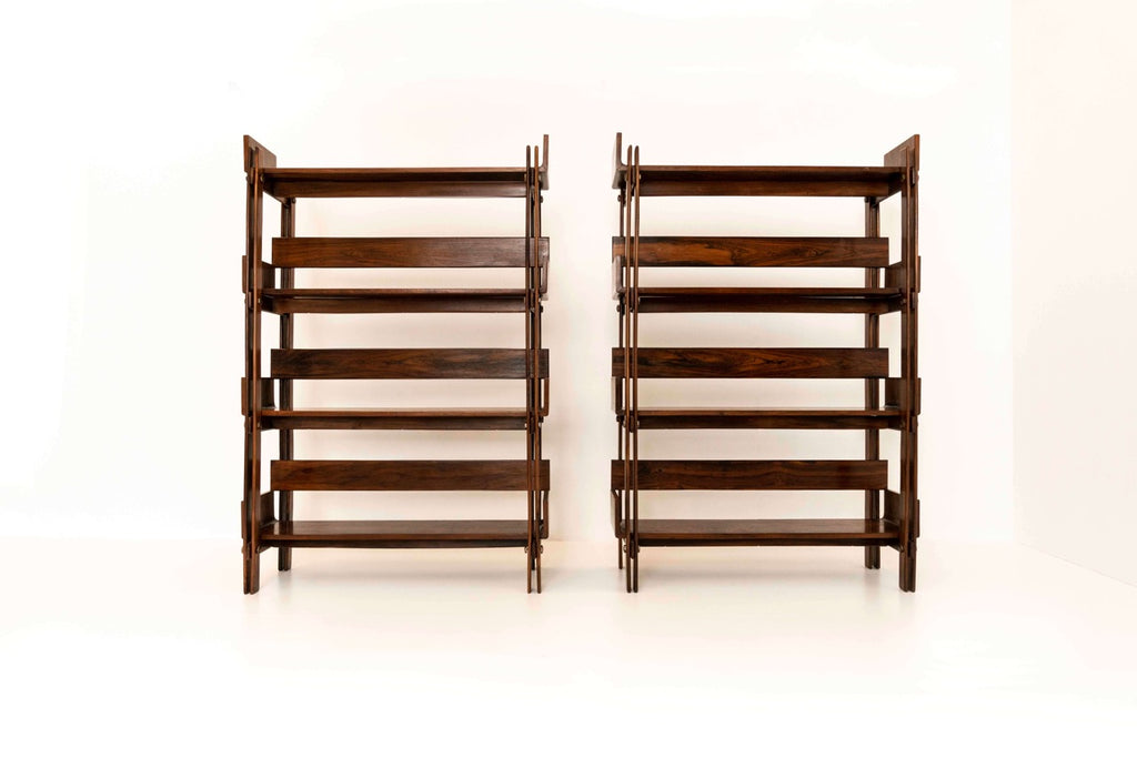 오카 브라질을 위한 Sergio Rodrigues의 인상적인 두 책장 세트, 1960년대.