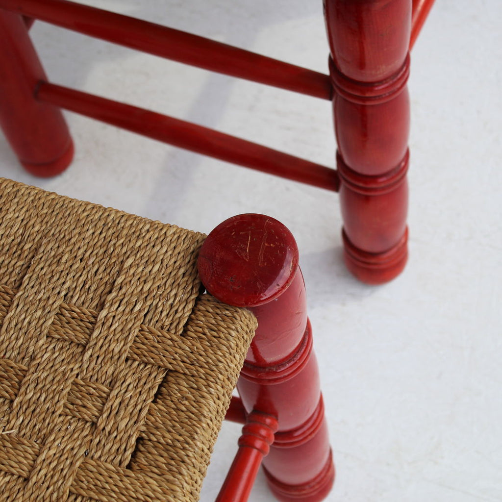 Set of red Italian Rush Chairs in good condition. Dimensions: H106 x D42 x L46, SH 46cm
