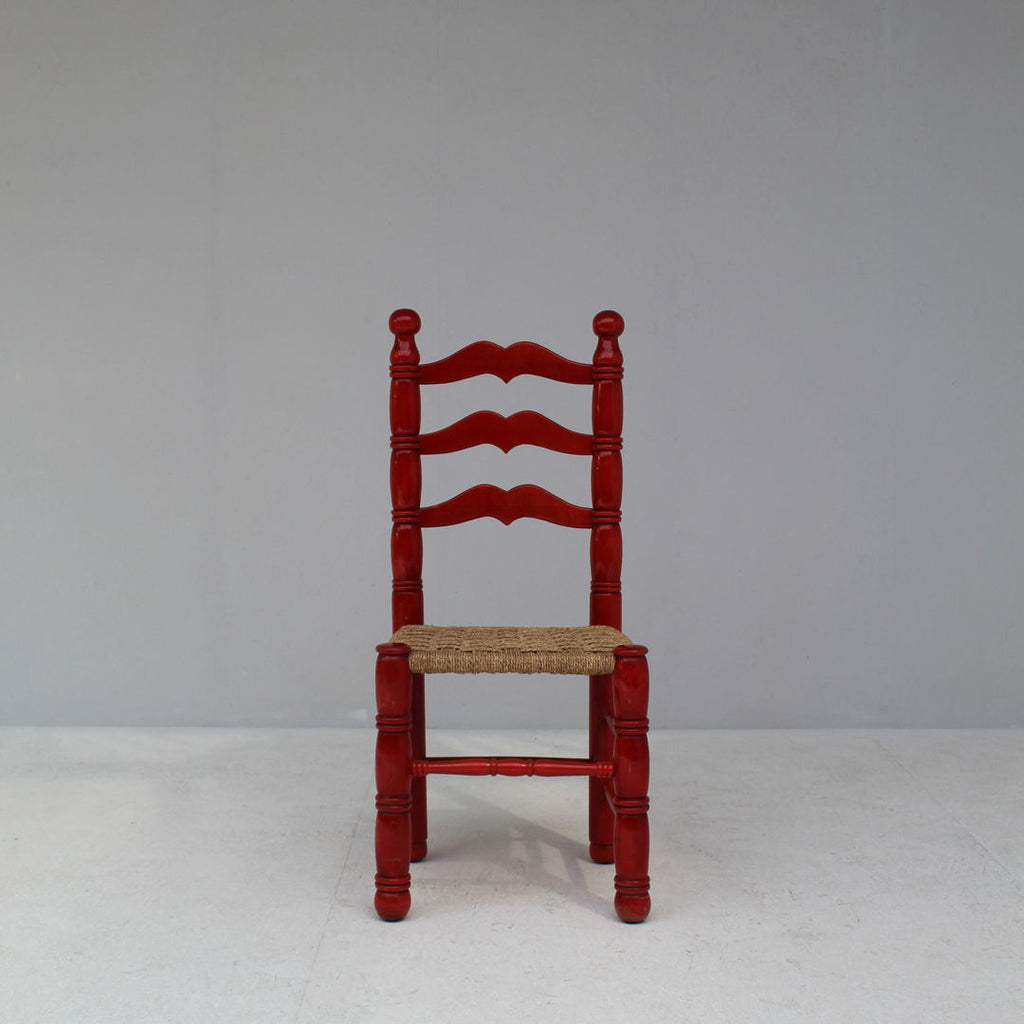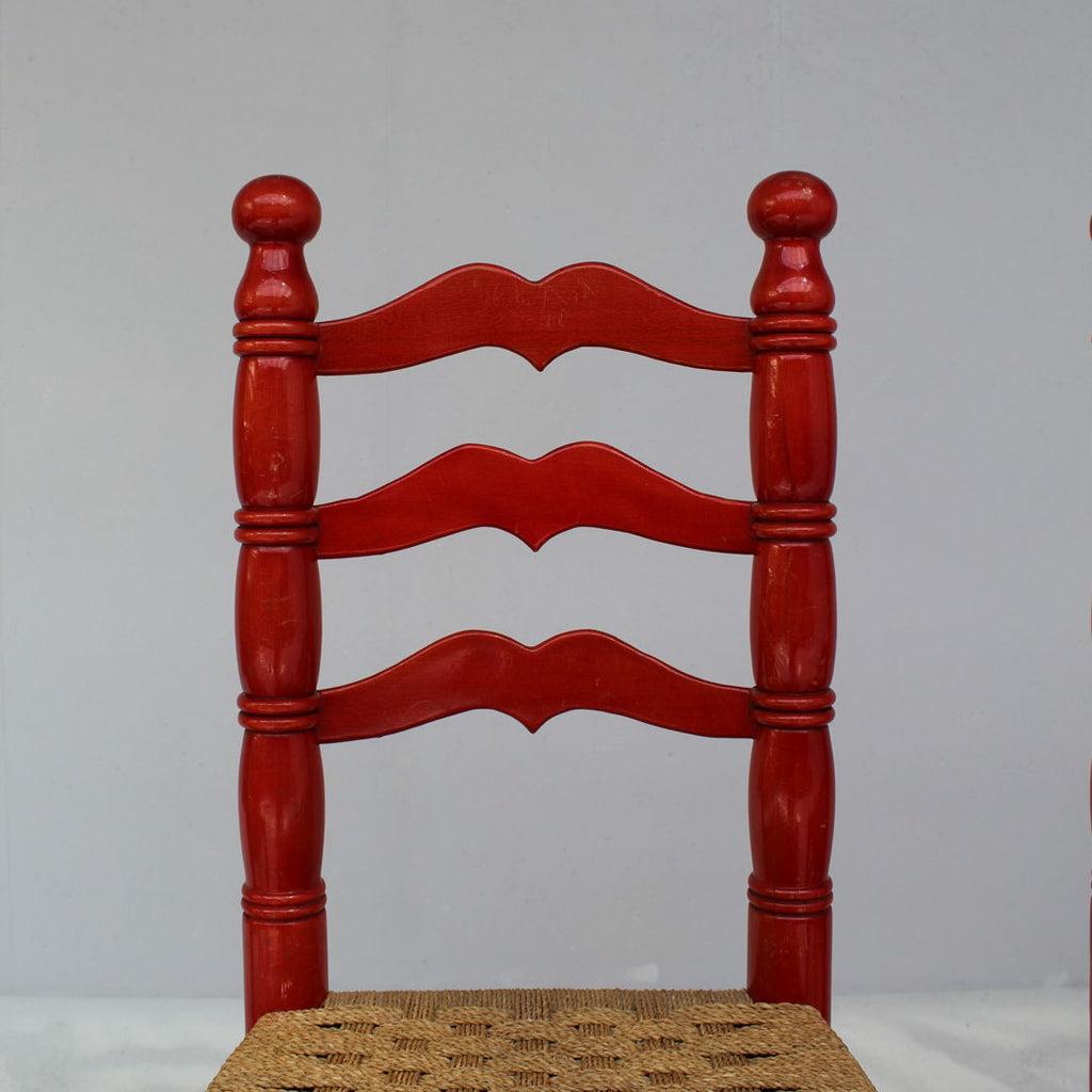 상태가 좋은 빨간색 이탈리안 러쉬 체어 세트. 크기: H106 x D42 x L46, SH 46cm