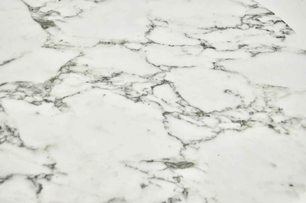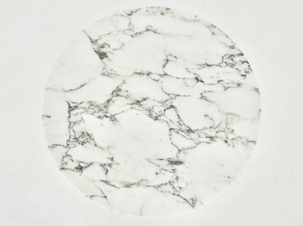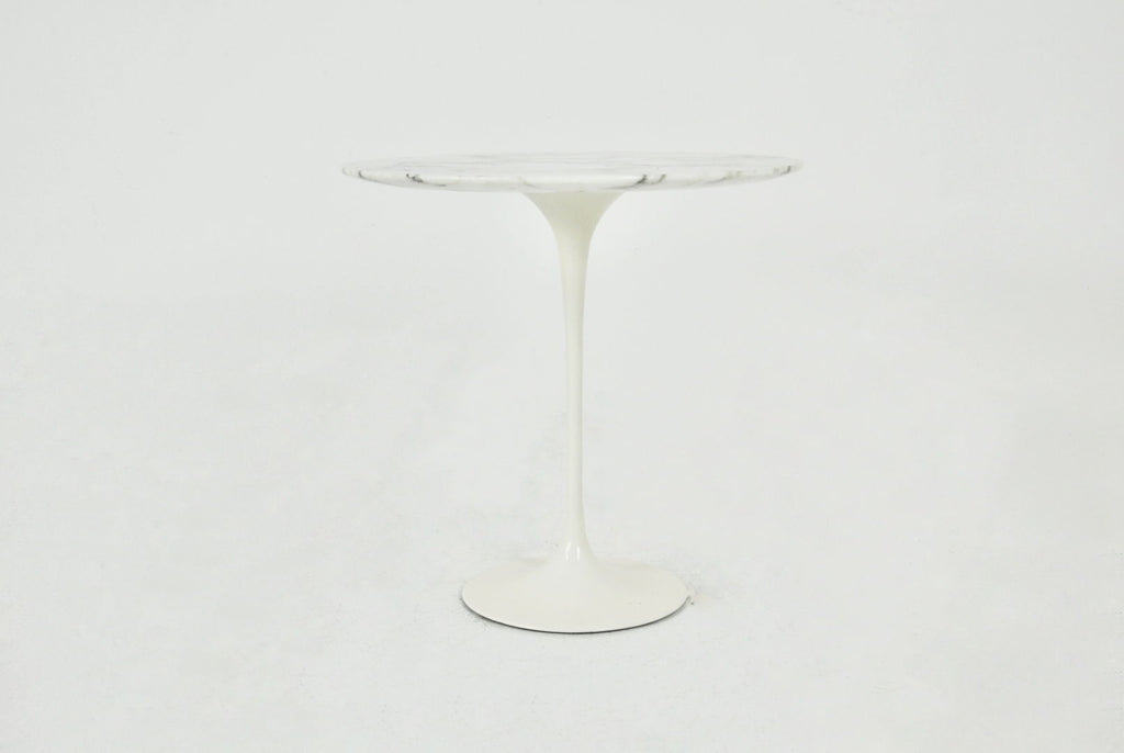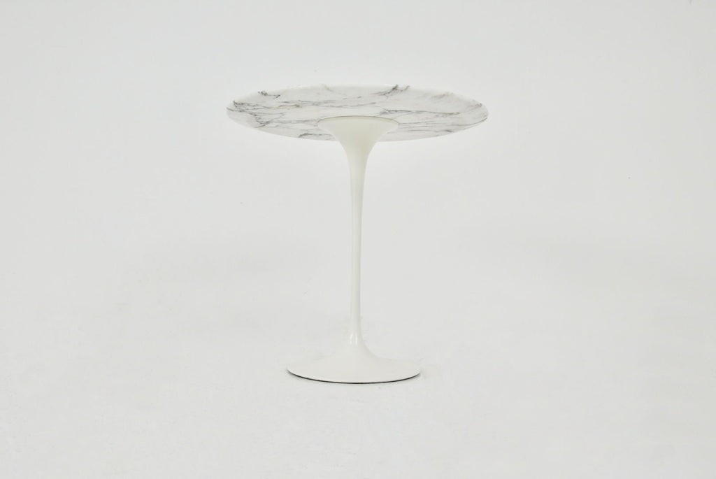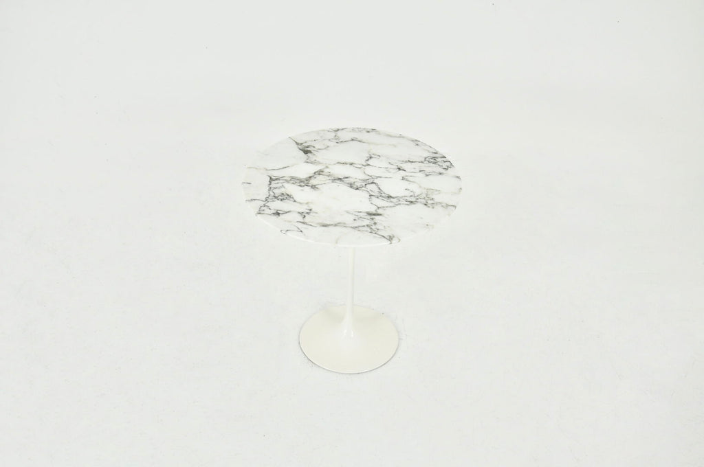 Side table with marble top and aluminum base designed by Eero Saarinen and produced by Knoll International in the 1960s. Wear due to time and age of the table.