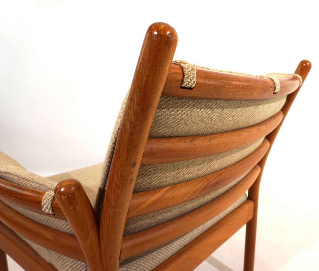 CFC Silkeborg의 우수한 상태의 Genius 티크 안락의자. 나뭇결이 매우 아름다우며 꿀빛 색상을 지닌 매력적인 나무 프레임은 마모된 흔적이 거의 없습니다. 베이지 브라운 컬러의 울 원단으로 제작된 커버도 상태가 완벽합니다. 안락의자는 매우 좋은 착석감을 제공합니다. Cfc Silkeborg는 가장 유명한 덴마크 가구 제조업체 중 하나로 덴마크 티크를 다루고 최고의 디자이너들과 협력했습니다. 이 안락의자는 1960년대 Illum Wikkelso가 디자인했습니다.
