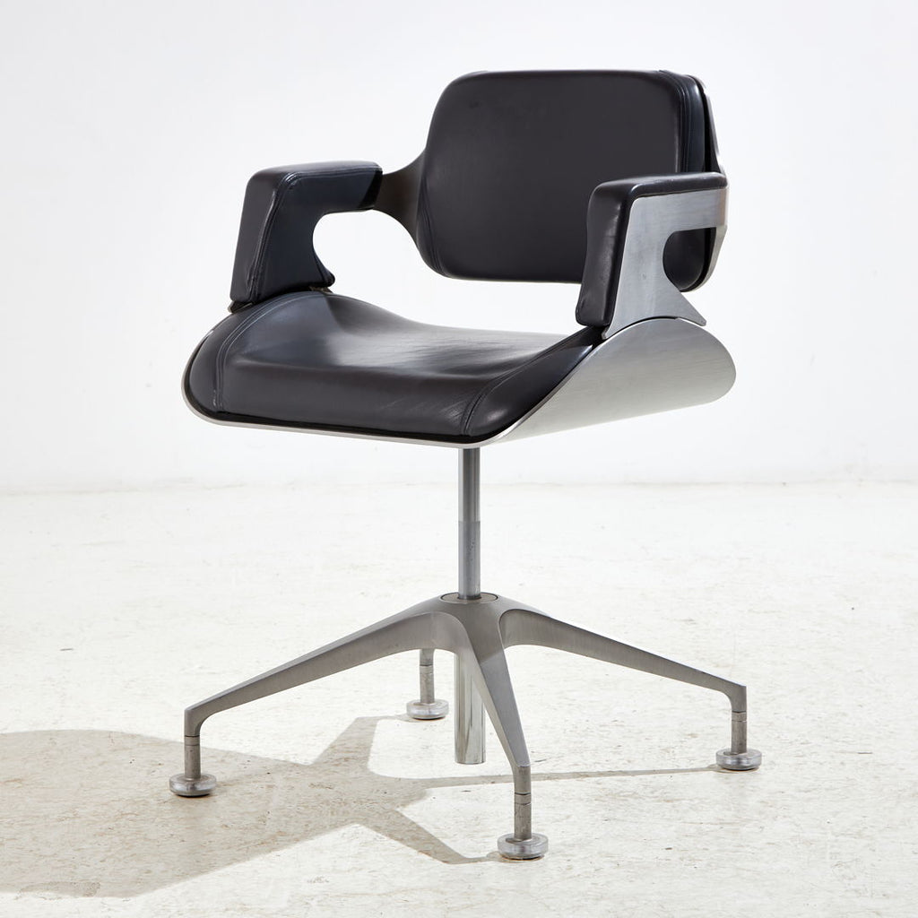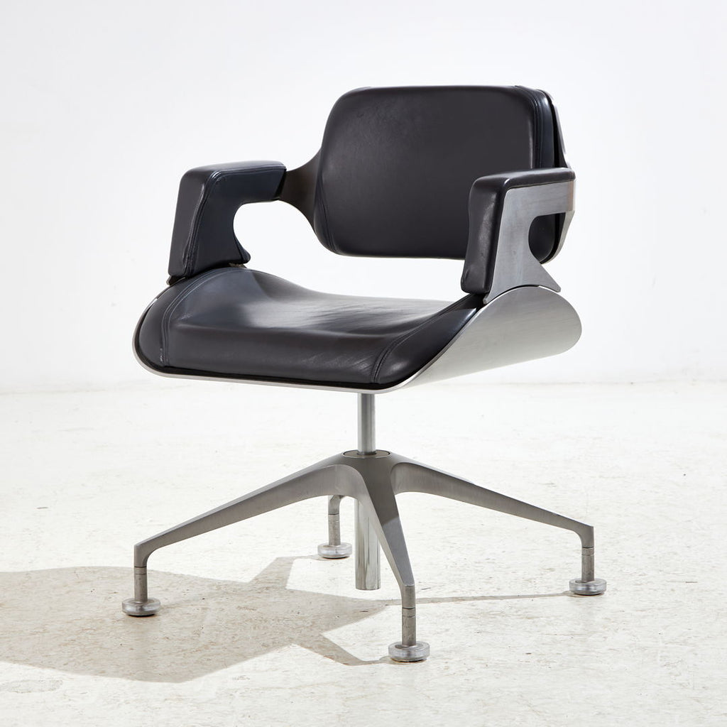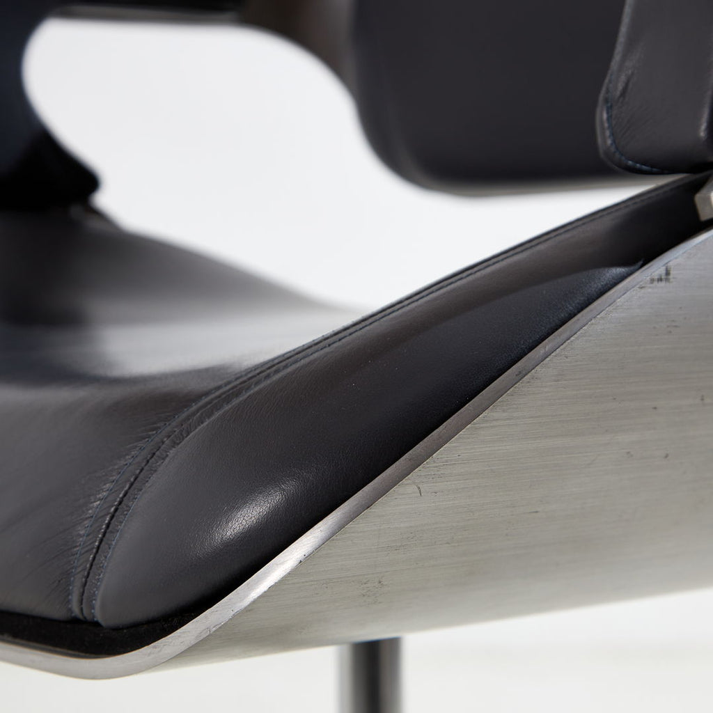 Interstuhl을 위해 Hadi Teherani가 디자인한 2000년대 가죽 시트와 등받이가 있는 '실버' 의자. 가죽, 스틸 부분에 표면에 약간의 상처나 마모가 있습니다. 좌석 높이는 45cm에서 55cm 사이로 조절 가능합니다.