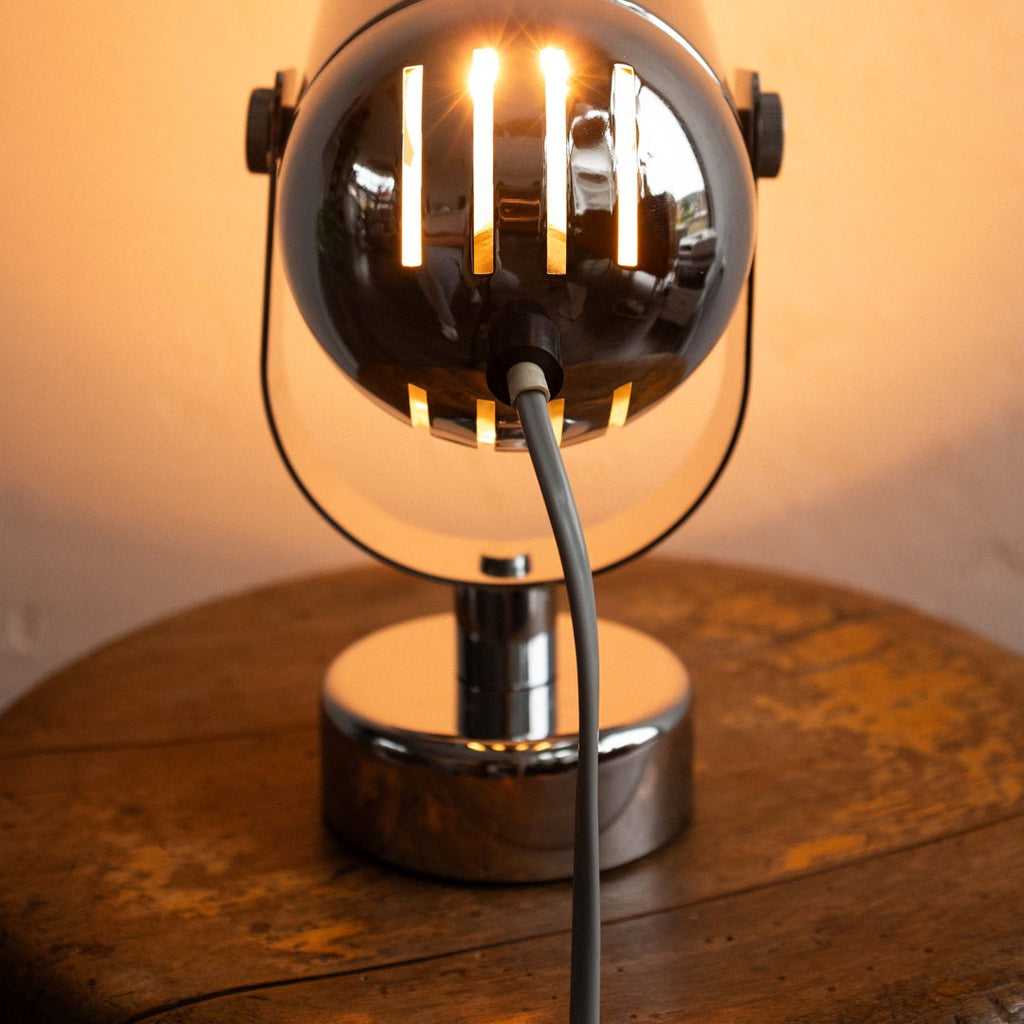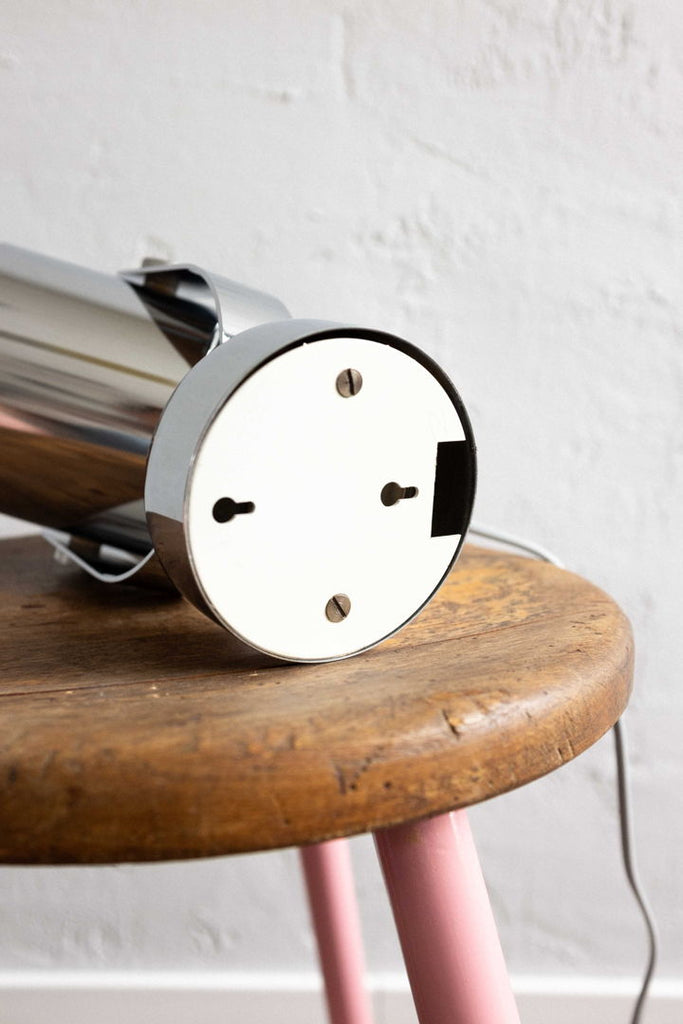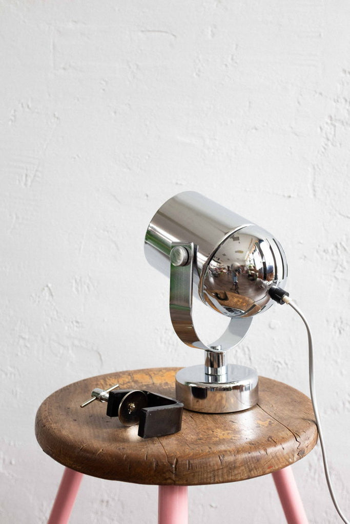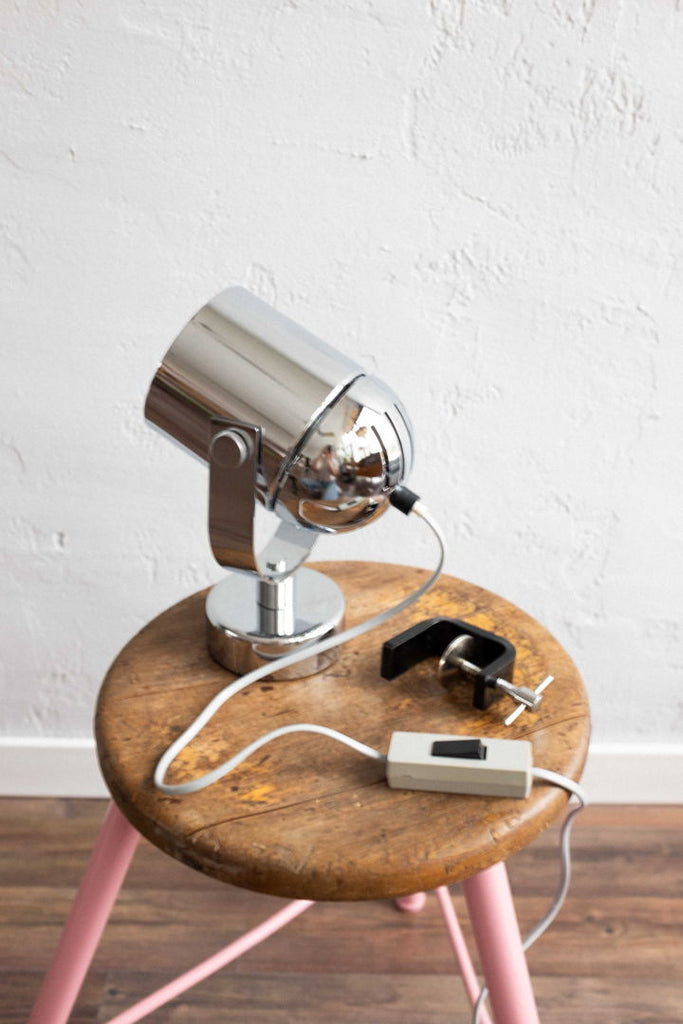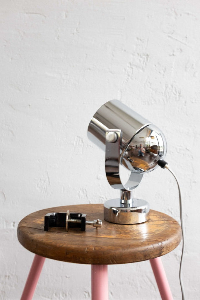 Combi Lux 실버 벽 램프는 체코 디자이너 Stanislav Indra가 디자인하고 80년대 체코슬로바키아의 Lidokov Boskovice가 제작했습니다. 원본 태그로 라벨을 붙였습니다. 램프는 선반에 부착할 수 있는 검은색 금속 클램프와 함께 제공됩니다. 완전히 복원되고 다시 배선되었으며 E27 전구 1개가 필요합니다.