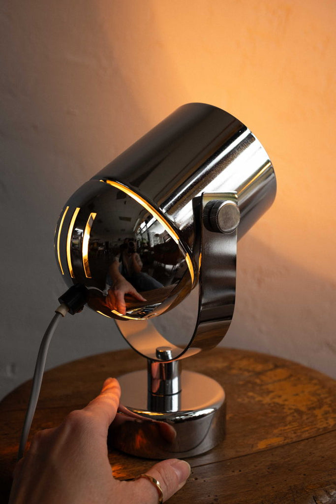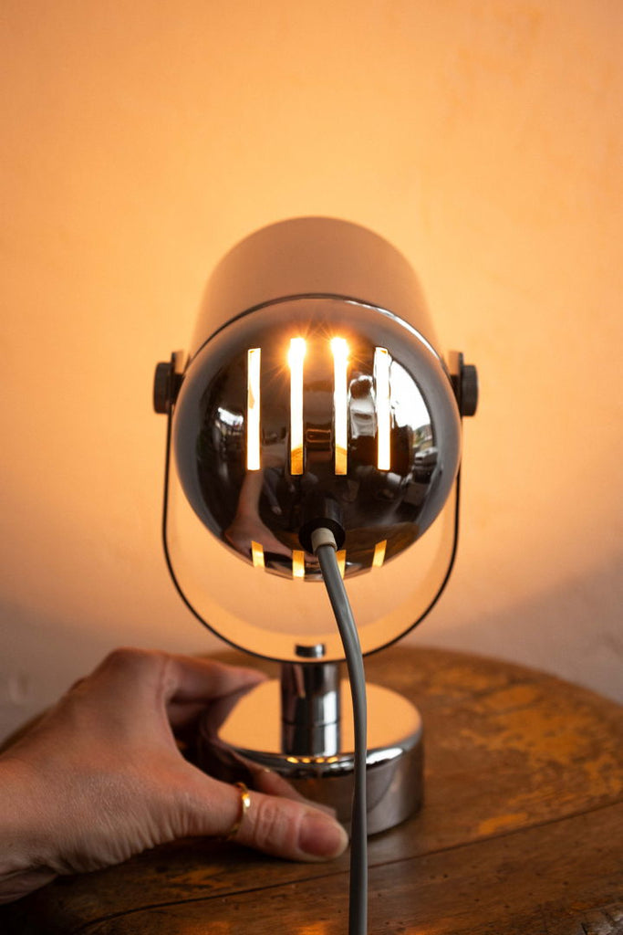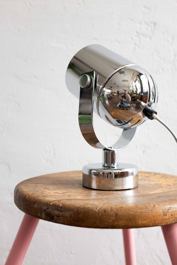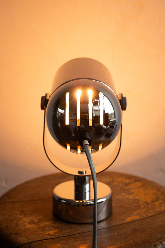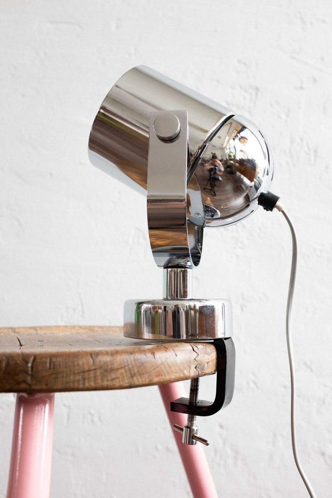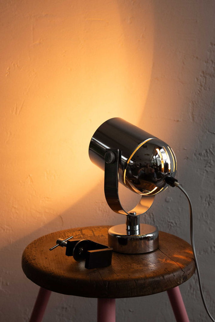 Combi Lux 실버 벽 램프는 체코 디자이너 Stanislav Indra가 디자인하고 80년대 체코슬로바키아의 Lidokov Boskovice가 제작했습니다. 원본 태그로 라벨을 붙였습니다. 램프는 선반에 부착할 수 있는 검은색 금속 클램프와 함께 제공됩니다. 완전히 복원되고 다시 배선되었으며 E27 전구 1개가 필요합니다.