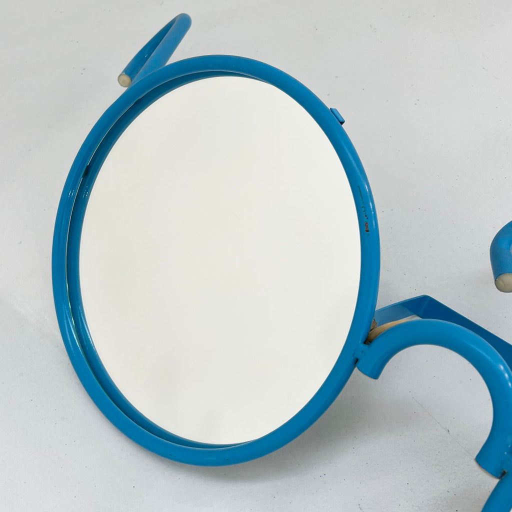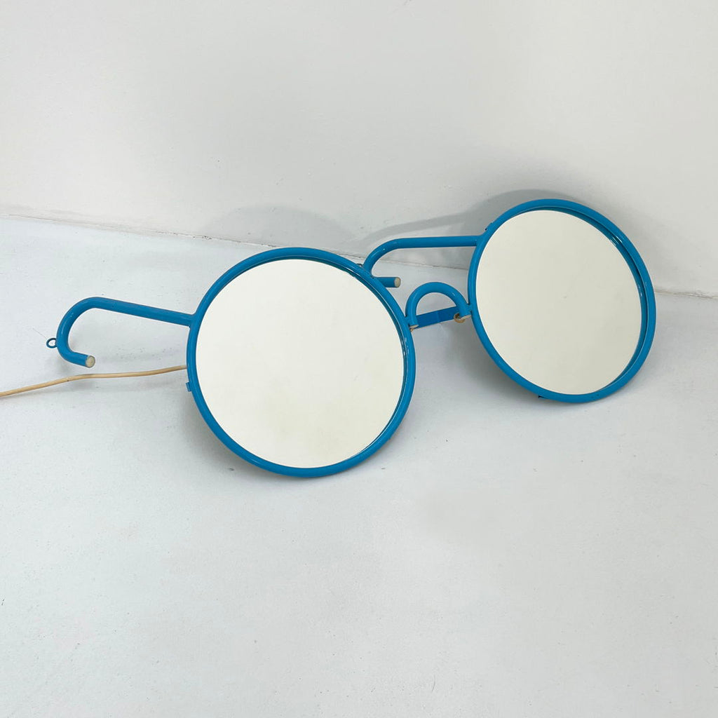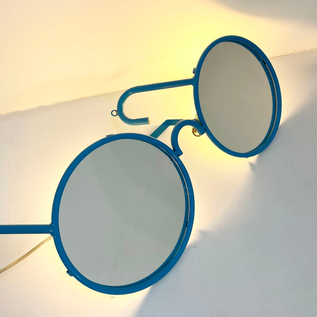 L'isola Che Non C'è의 선글라스 거울 및 조명, 1980년대 디자이너 - L'Isolache Non C'è 디자인 기간 - 80년대 치수 - 폭 90cm x 깊이 15cm x 높이 31cm 재질 - 메탈 색상 - 파란색 전기적 특성 - 유럽 플러그(최대 240V) / 전구 E14 상태 - 좋은 의견 - 연식 및 사용에 따른 가벼운 마모. 페인트에 약간의 가벼운 흠집이 있습니다. 세부 사진을 참조하세요.