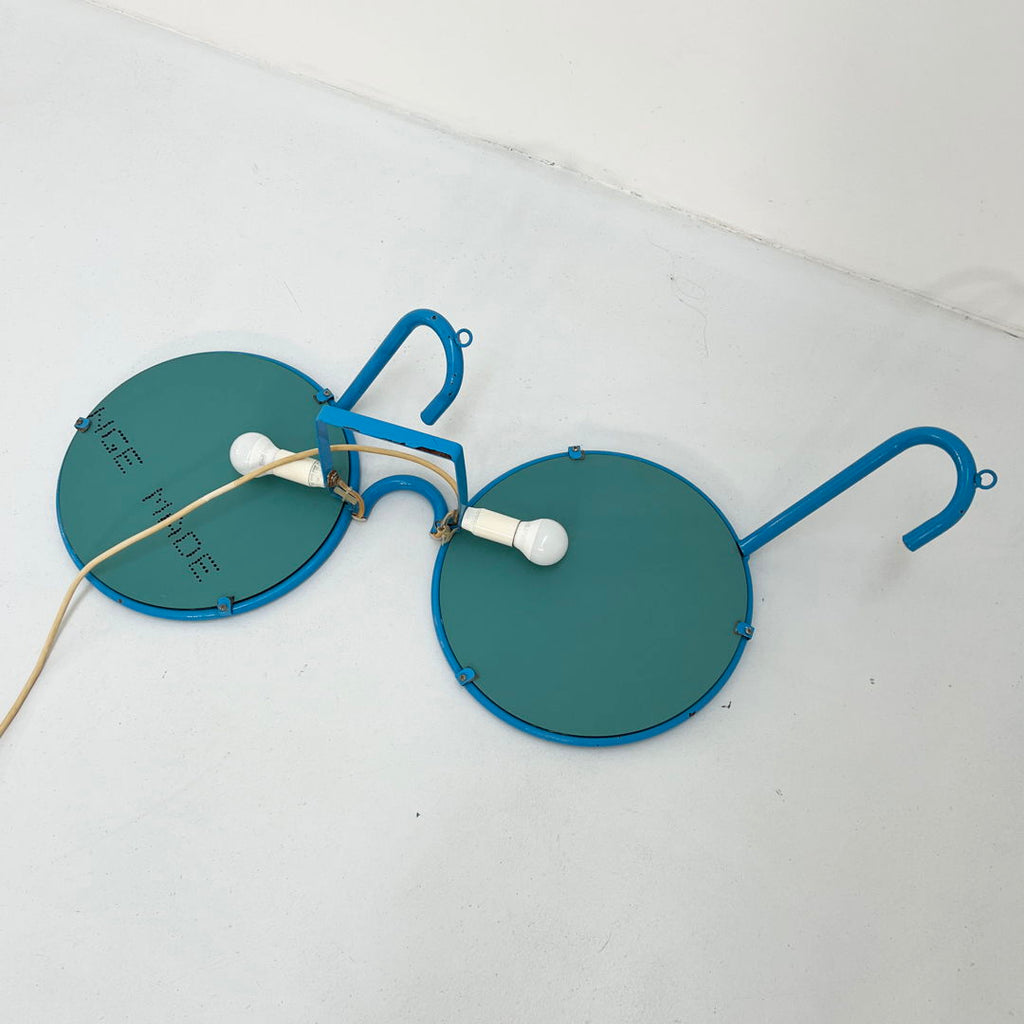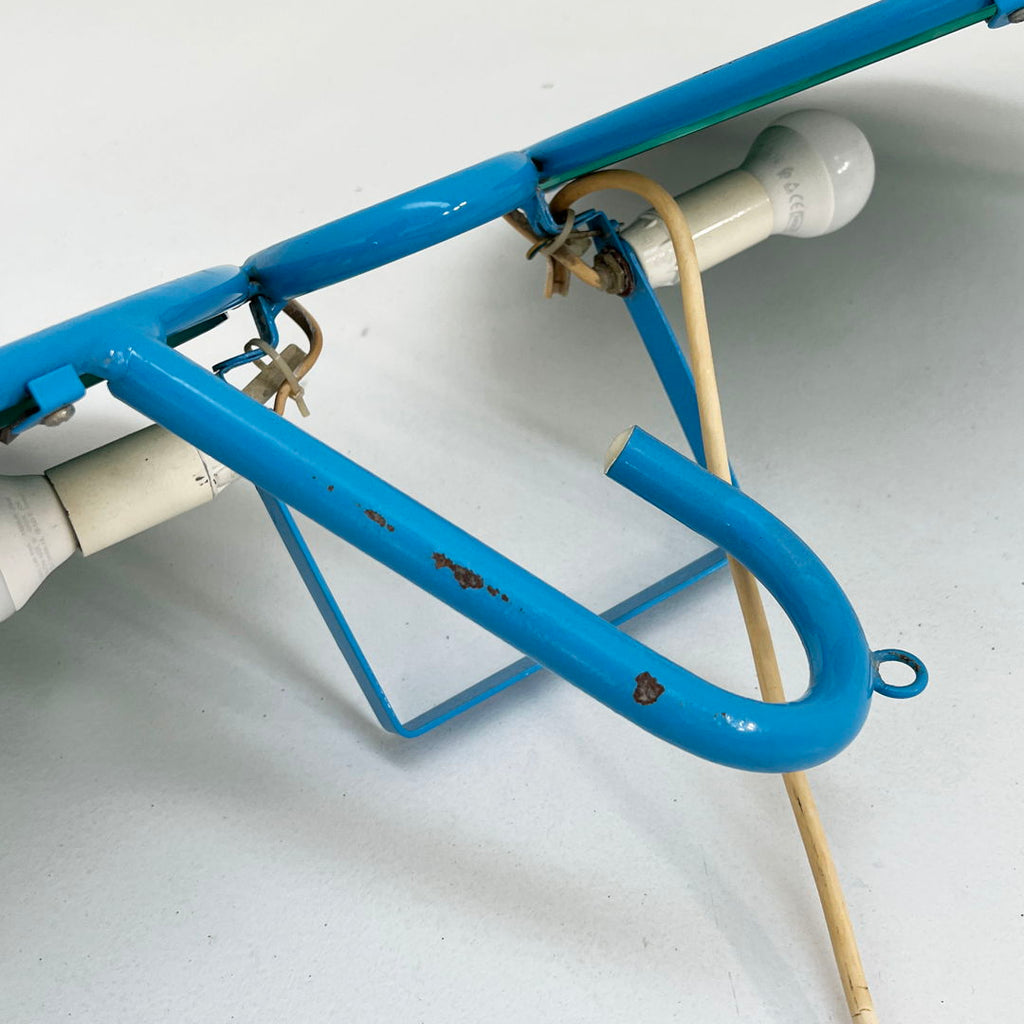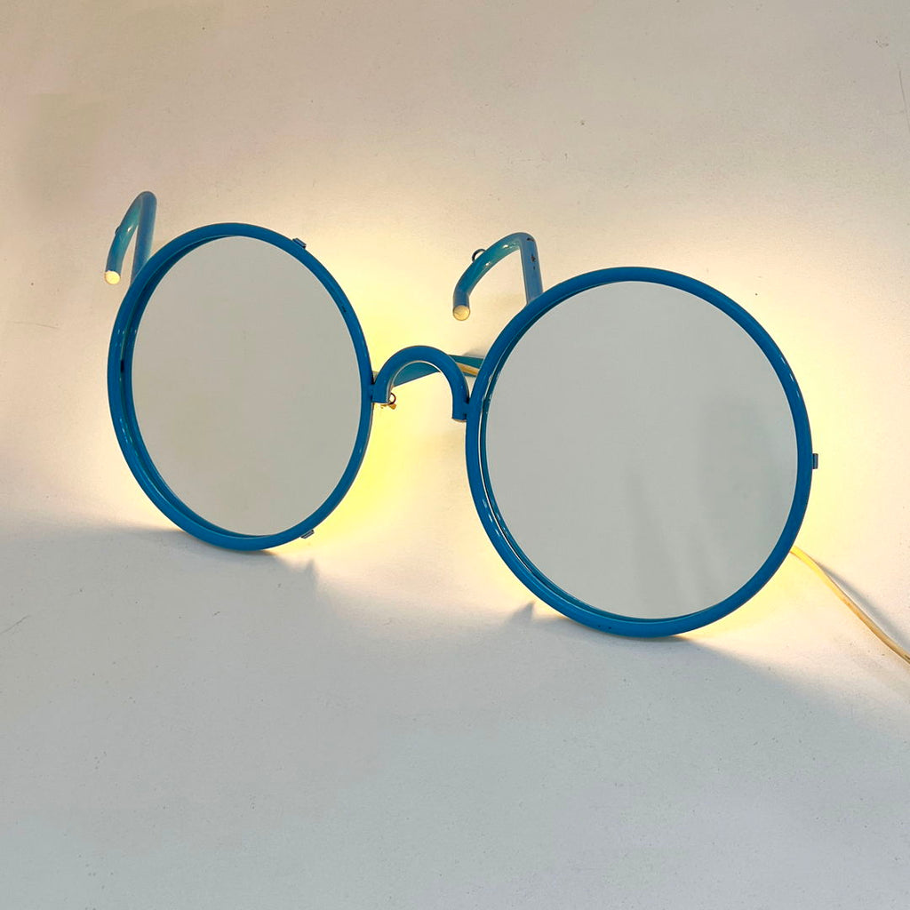 L'isola Che Non C'è의 선글라스 거울 및 조명, 1980년대 디자이너 - L'Isolache Non C'è 디자인 기간 - 80년대 치수 - 폭 90cm x 깊이 15cm x 높이 31cm 재질 - 메탈 색상 - 파란색 전기적 특성 - 유럽 플러그(최대 240V) / 전구 E14 상태 - 좋은 의견 - 연식 및 사용에 따른 가벼운 마모. 페인트에 약간의 가벼운 흠집이 있습니다. 세부 사진을 참조하세요.