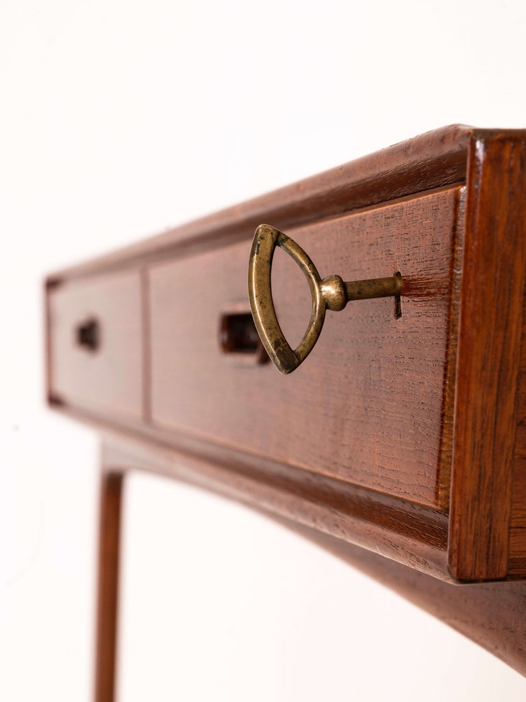 이 책상은 Sigurd Hansen이 제작했습니다. 덴마크 미드 센츄리 모던 디자인과 장인 정신의 진정한 예입니다. 서랍이 2개 있고 디테일이 좋습니다. 책상 위의 곡선 모양과 받침대의 디자인. 원래 키를 사용할 수 있는 매우 좋은 상태입니다.