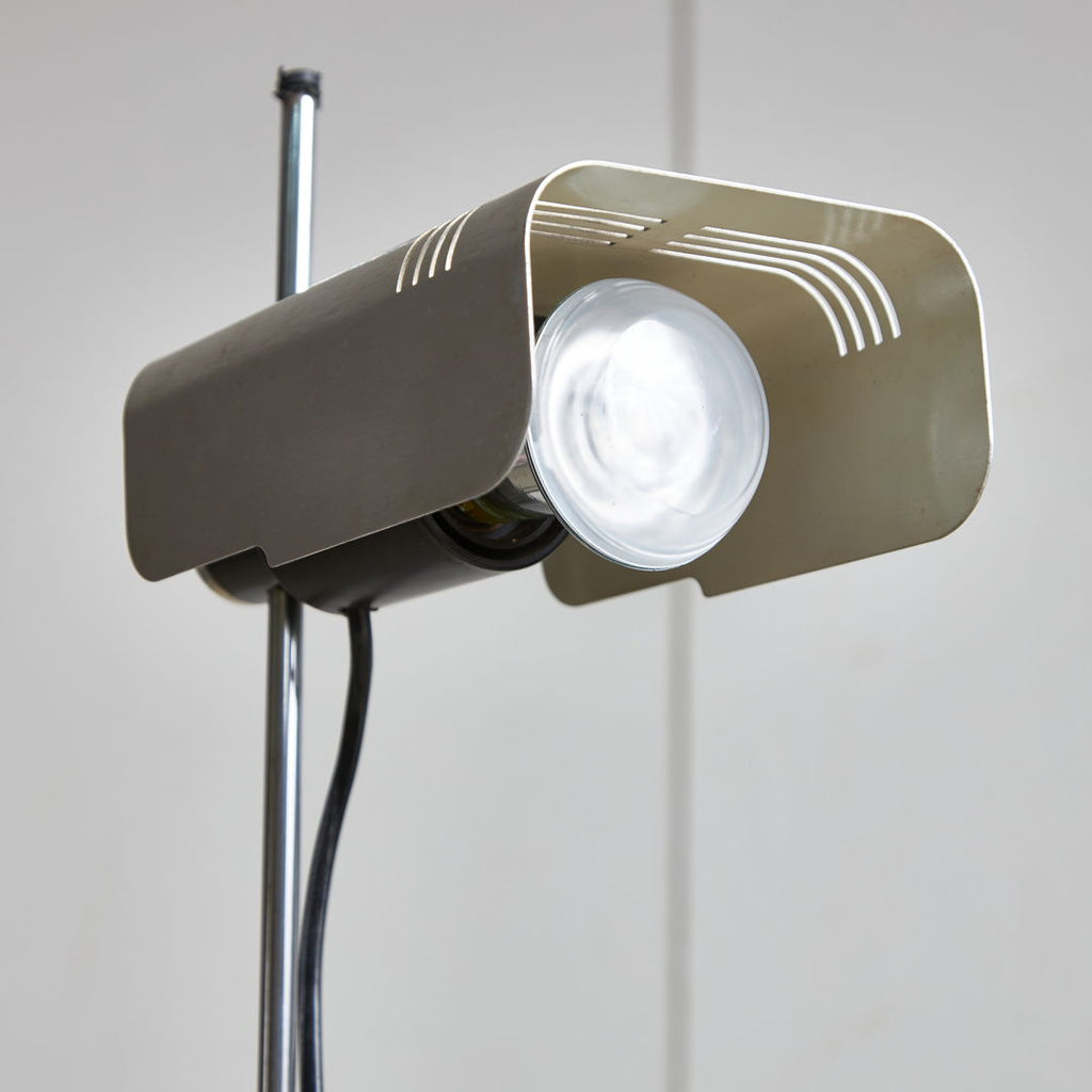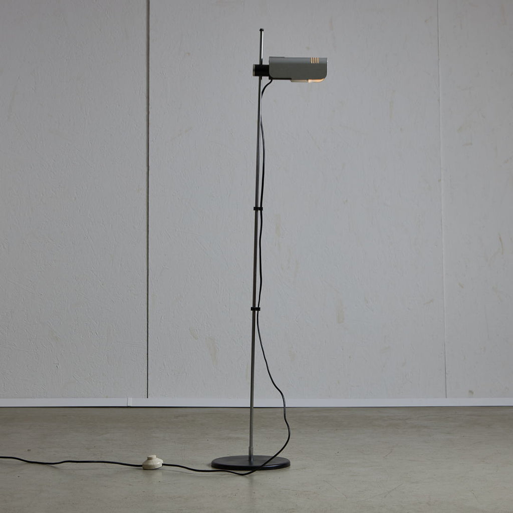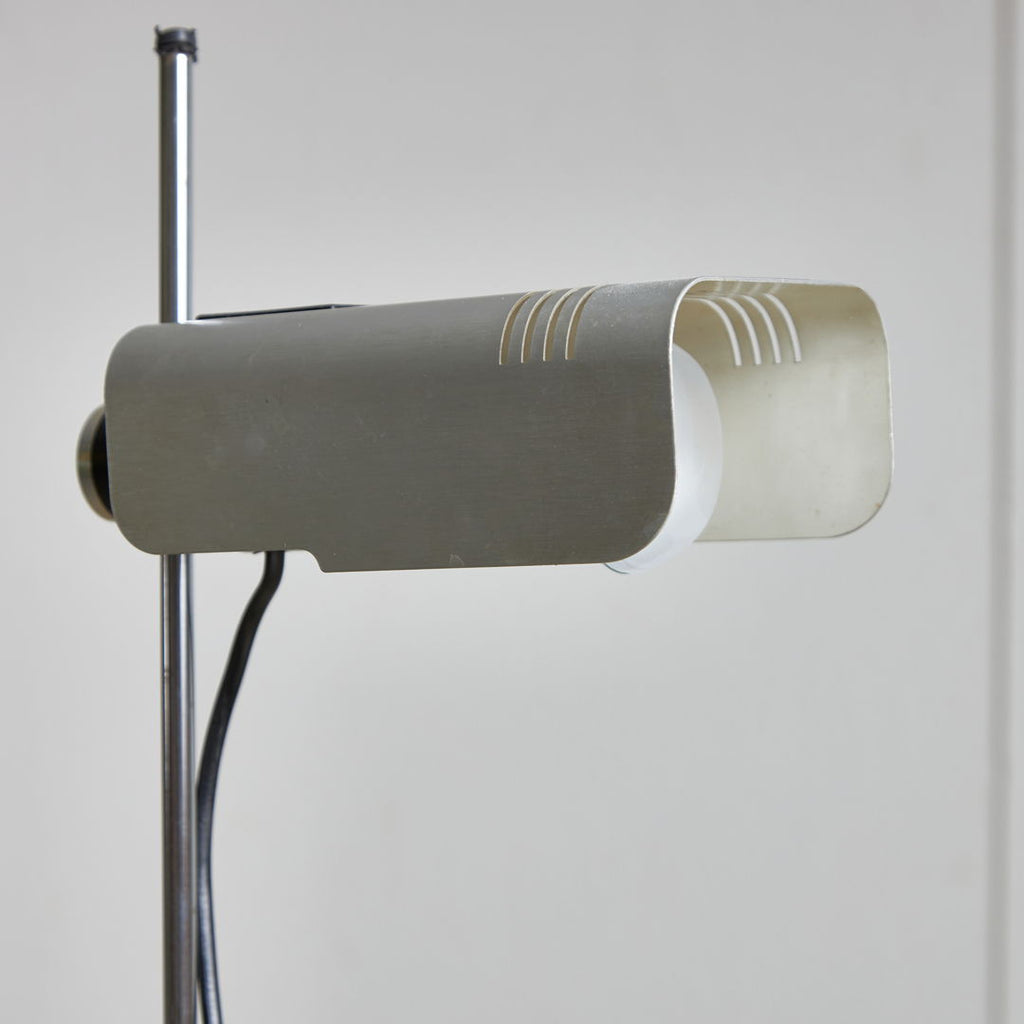 시대를 초월한 우아함과 기능성이 1960년대 Targetti Sankey를 위해 Targetti Sankey가 디자인한 이 플로어 램프에서 만났습니다. 플라스틱 밑창이 있는 검은색 금속 베이스 위에 세워져 있으며 조절 가능한 크롬 스템과 은회색의 구부러진 알루미늄 전등갓이 특징입니다. 이 품목은 경미한 표면 긁힘과 세월과 사용에 따른 가벼운 마모가 있습니다.
