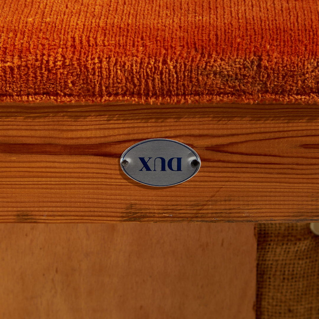 1970년대 벨벳 커버와 쿠션을 갖춘 3인용 Dux 소파. 커버에 약간의 마모와 얼룩이 있습니다. 약간의 사용감이 있는 빈티지 상태입니다.