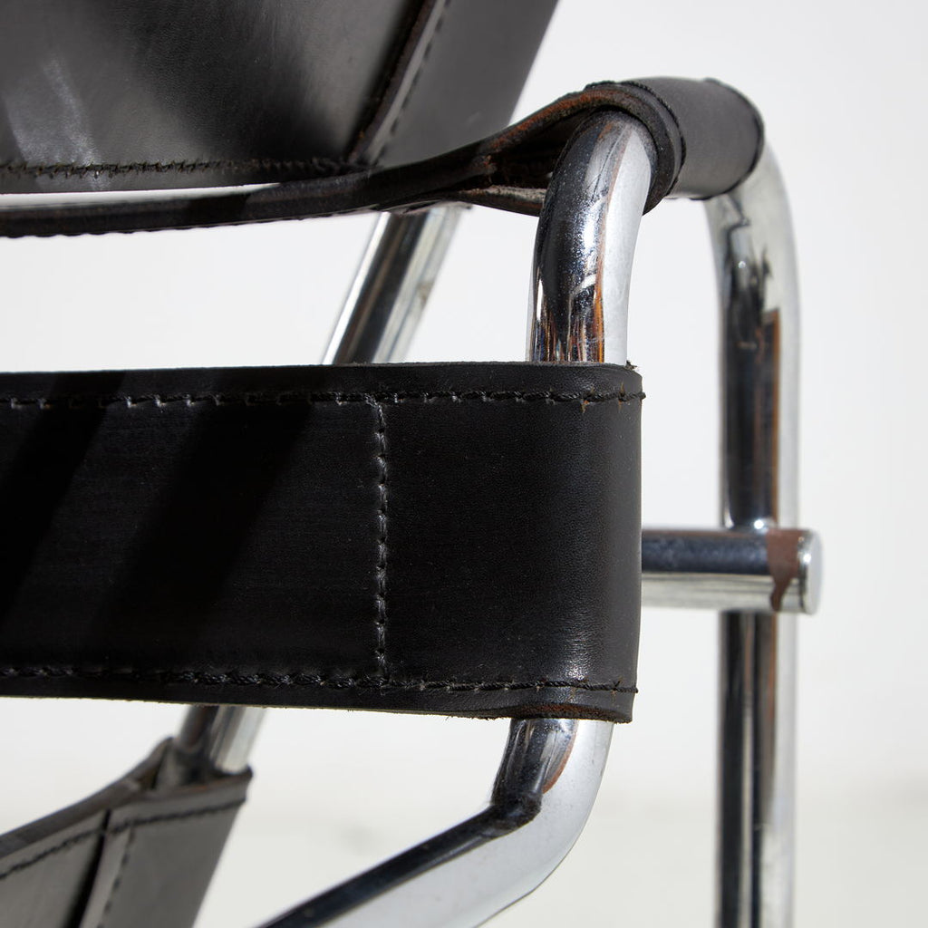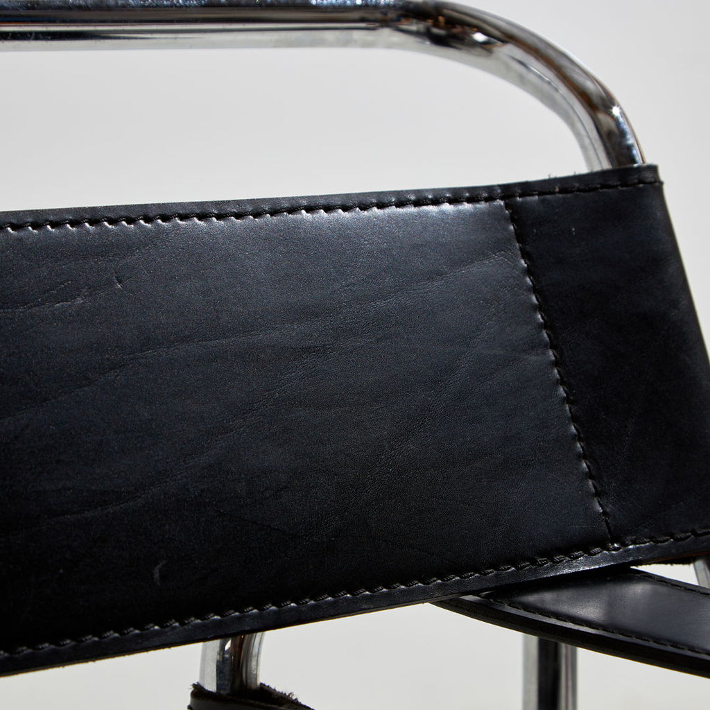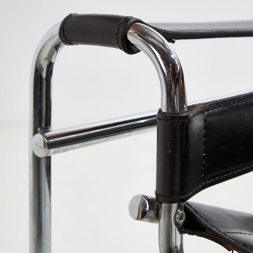 Bauhaus style tubular chair from the 1980s. With some scratches, wear and rust on the chrome and leather parts. Price is per piece.