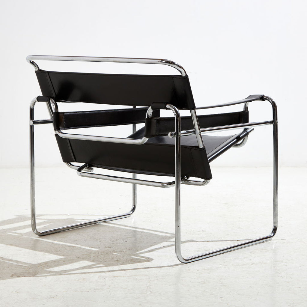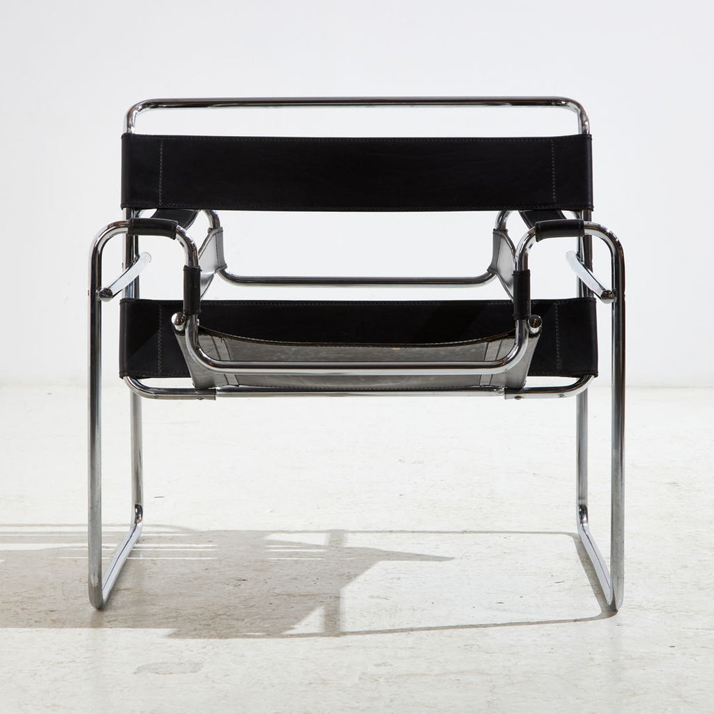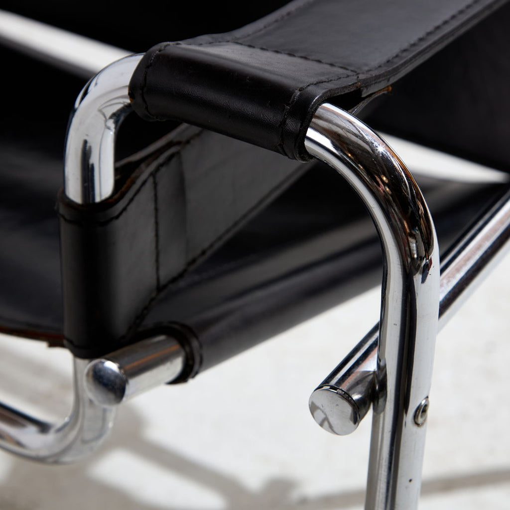 Bauhaus style tubular chair from the 1980s. With some scratches, wear and rust on the chrome and leather parts. Price is per piece.