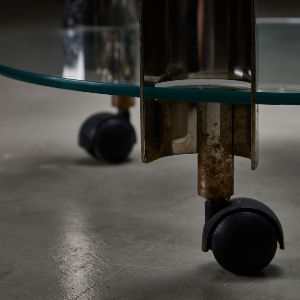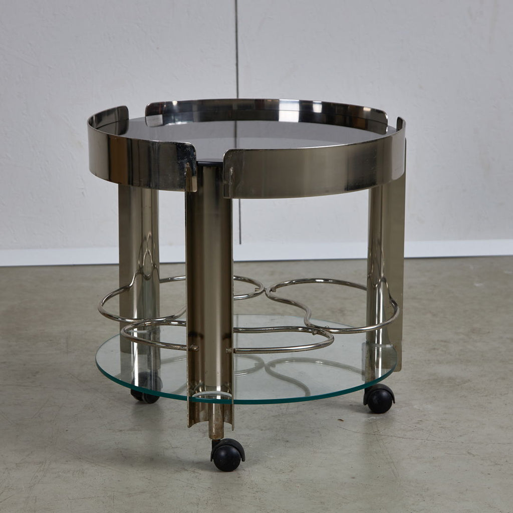Two-story Chrome-framed Italian Bar Cart with Wine Holder, 1970s