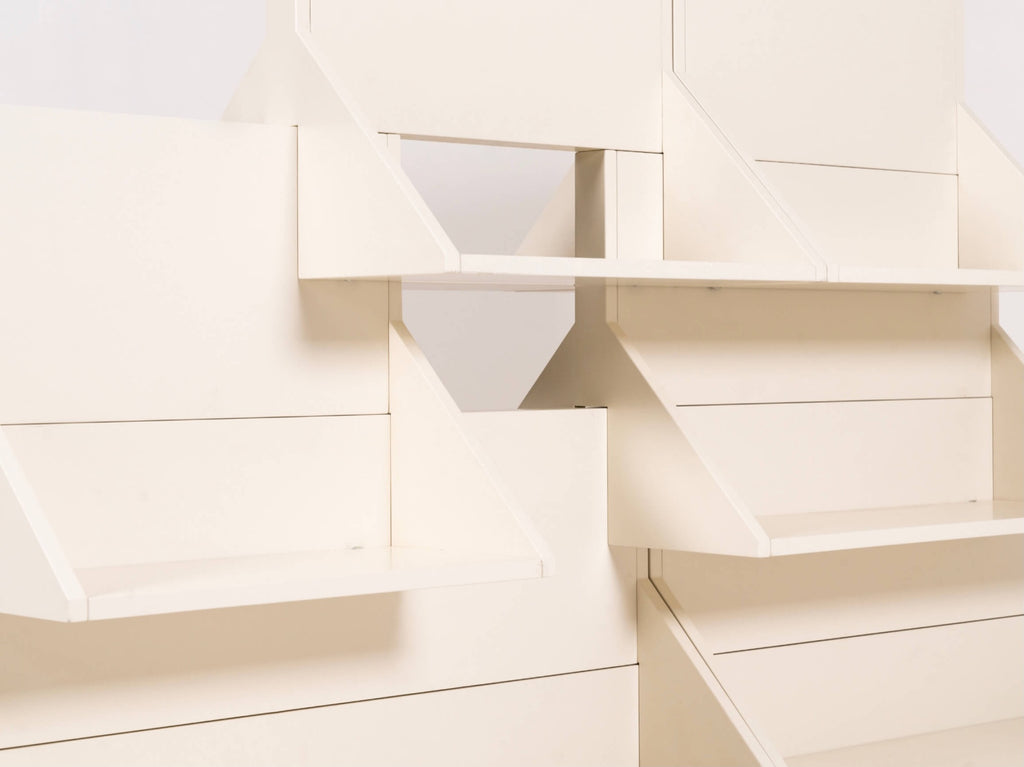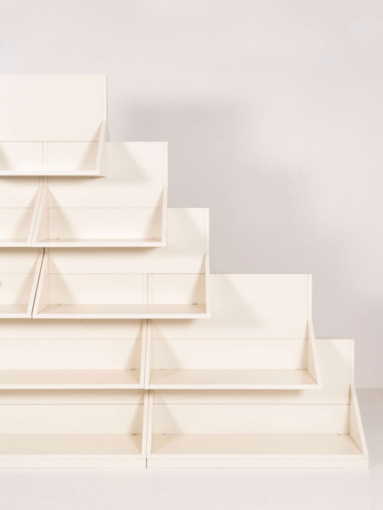이 책장은 3가지 크기의 11가지 요소로 구성되어 있습니다. 흰색 래커 목재로 된 이 적층형 양면 선반은 원하는 모든 유형의 장치에 쌓고 배치할 수 있 여러 디자인 조합이 가능합니다.