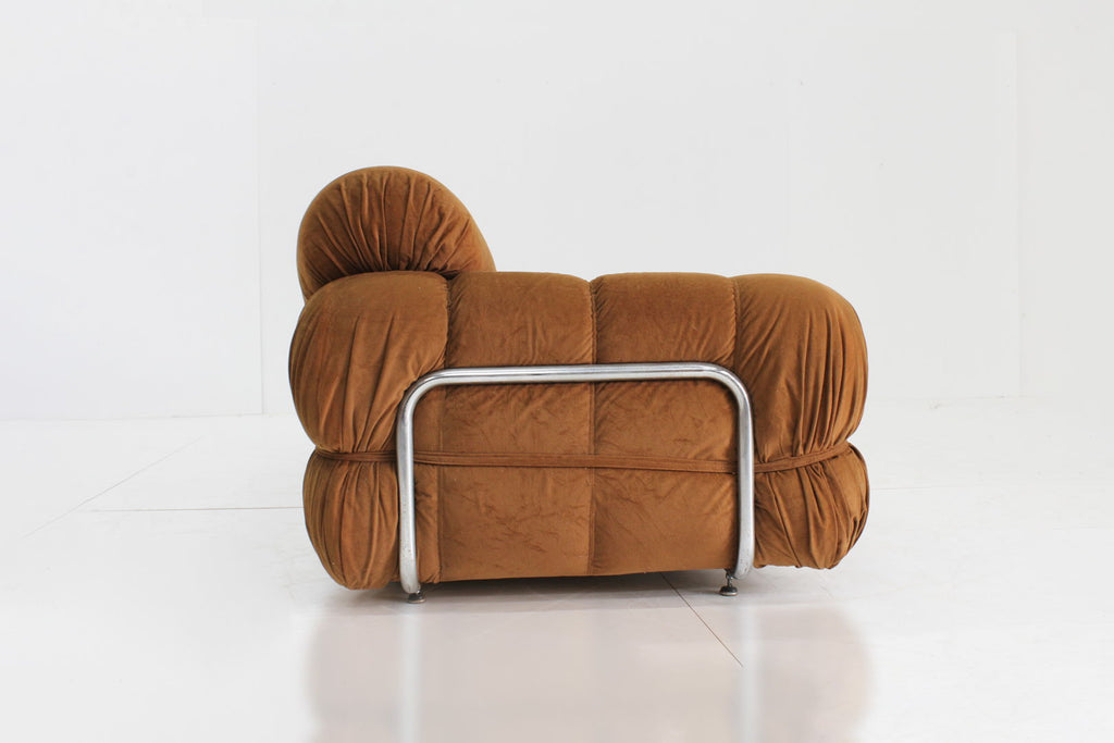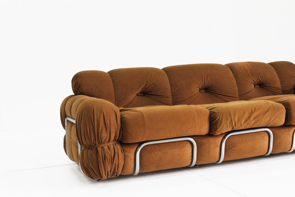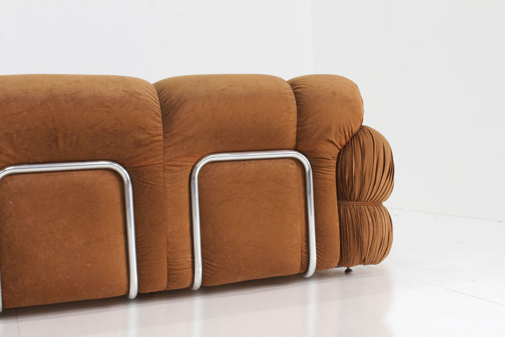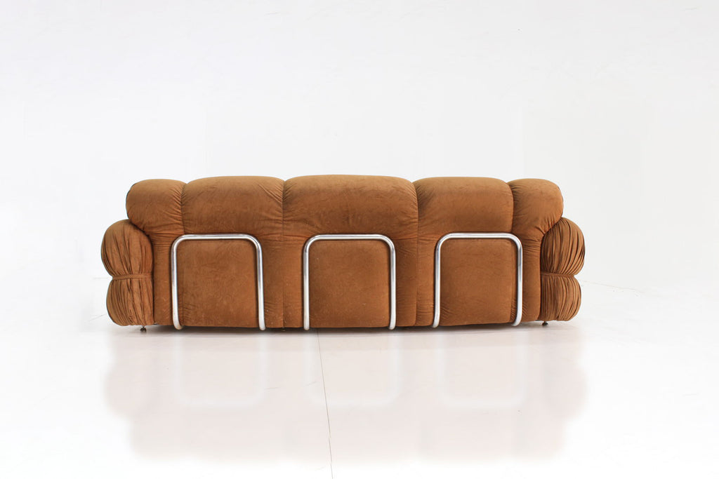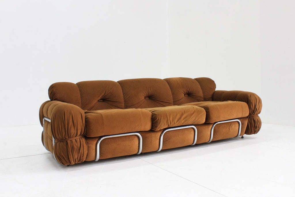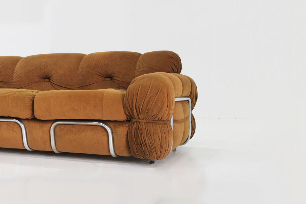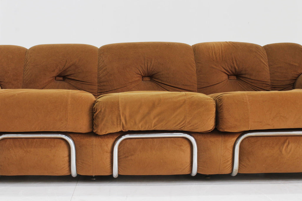 Vintage Italian 3 seater sofa from the 1970s in a beautiful fabric with chrome frame.