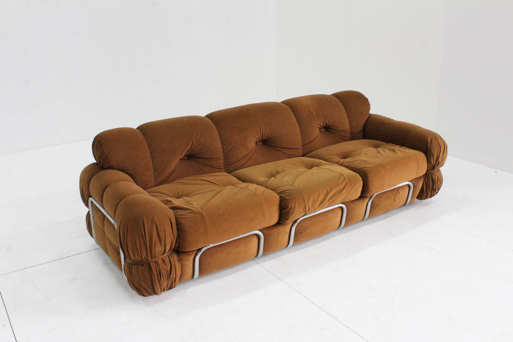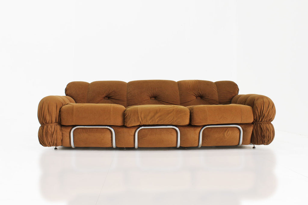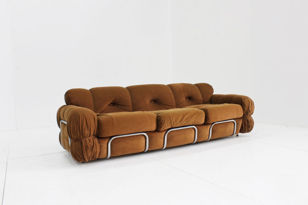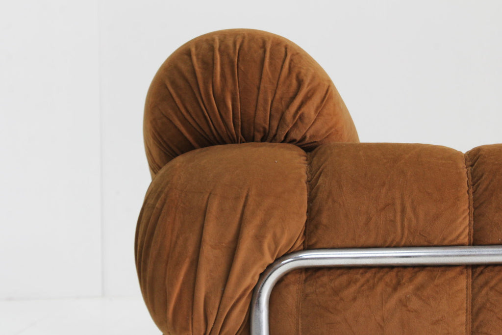 1970년대 빈티지 이탈리안 3인용 소파 크롬 프레임과 아름다운 패브릭으로 제작된 1970년대 빈티지 이탈리안 3인용 소파입니다. 디자인 기간: 1970년~1979년 제조국: 이탈리아 치수: 길이 220cm, 깊이 90cm, 높이 70cm 좌석 높이 44cm