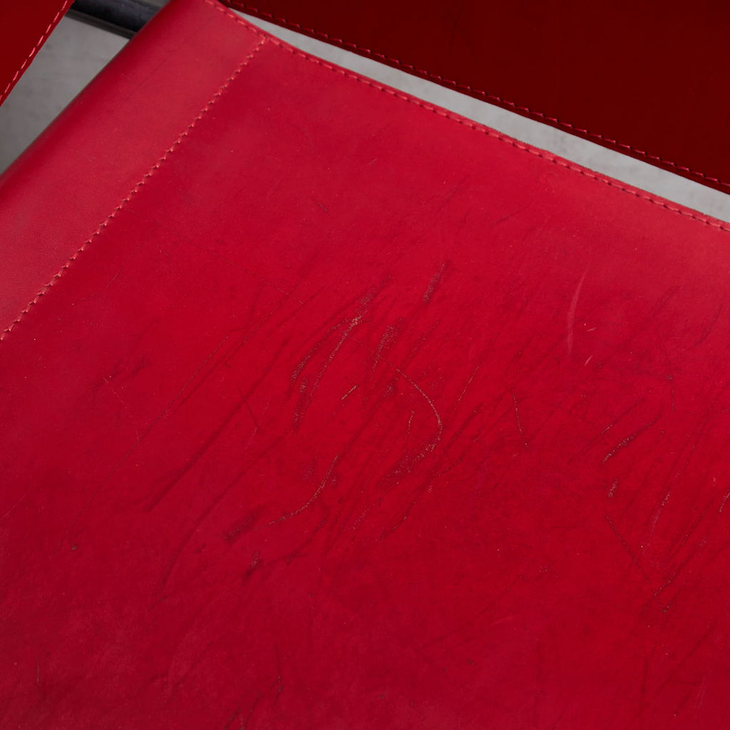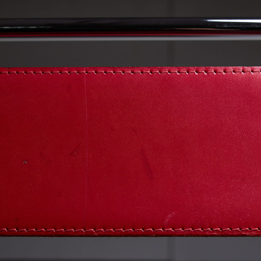 Tubular steel chair by Marcell Breuer with vibrant red leather. The Wassily chair was designed in the 1920s for Knoll; this piece is considered as a landmark of modern design. Available in good vintage condition with some signs of scratches on the frame and spots on the leather.