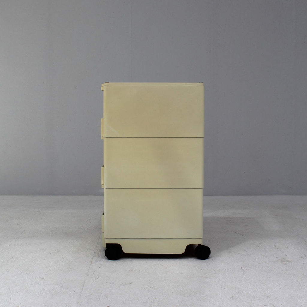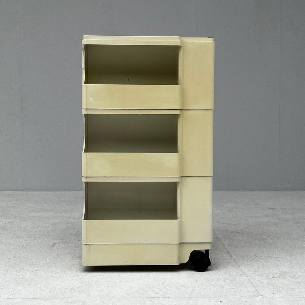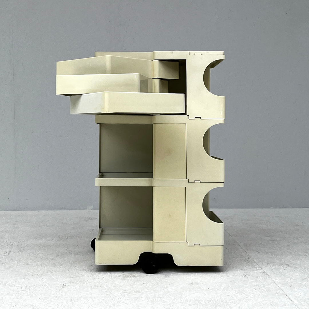Bieffeplast Italy를 위해 Joe Colombo가 디자인한 흰색 "Boby" 보관 트롤리, 3개의 보관함, 3개의 회전 서랍 및 3개의 보관함을 갖춘 1970년대 트롤리. 변색 등 사용 흔적 치수 : h74 x w41 x d43