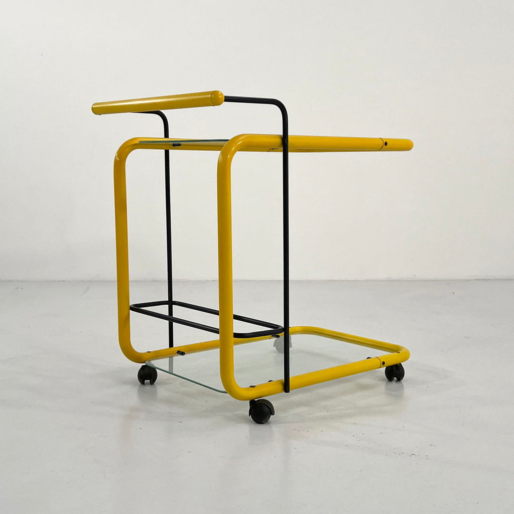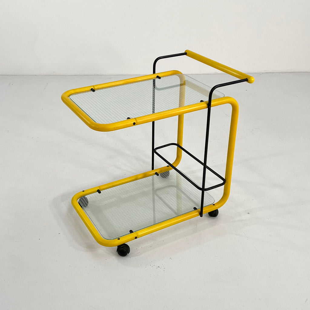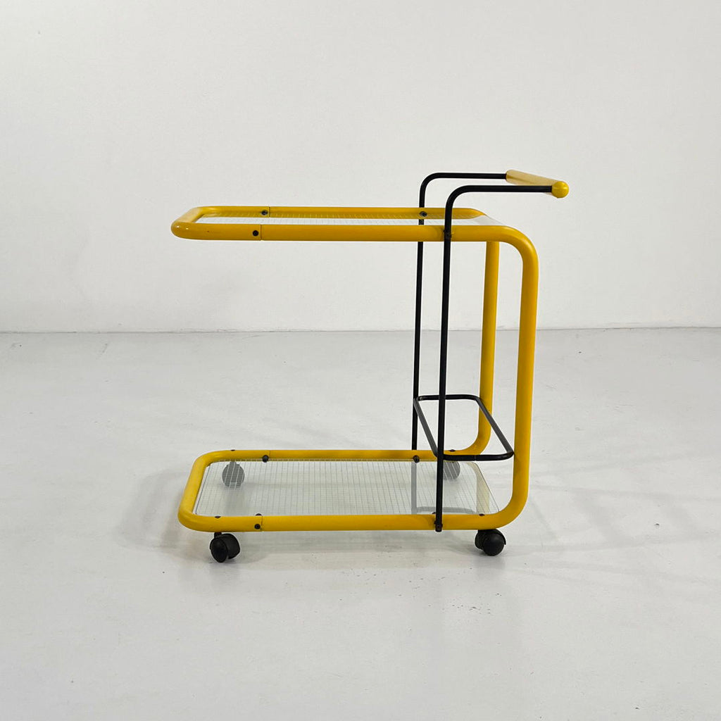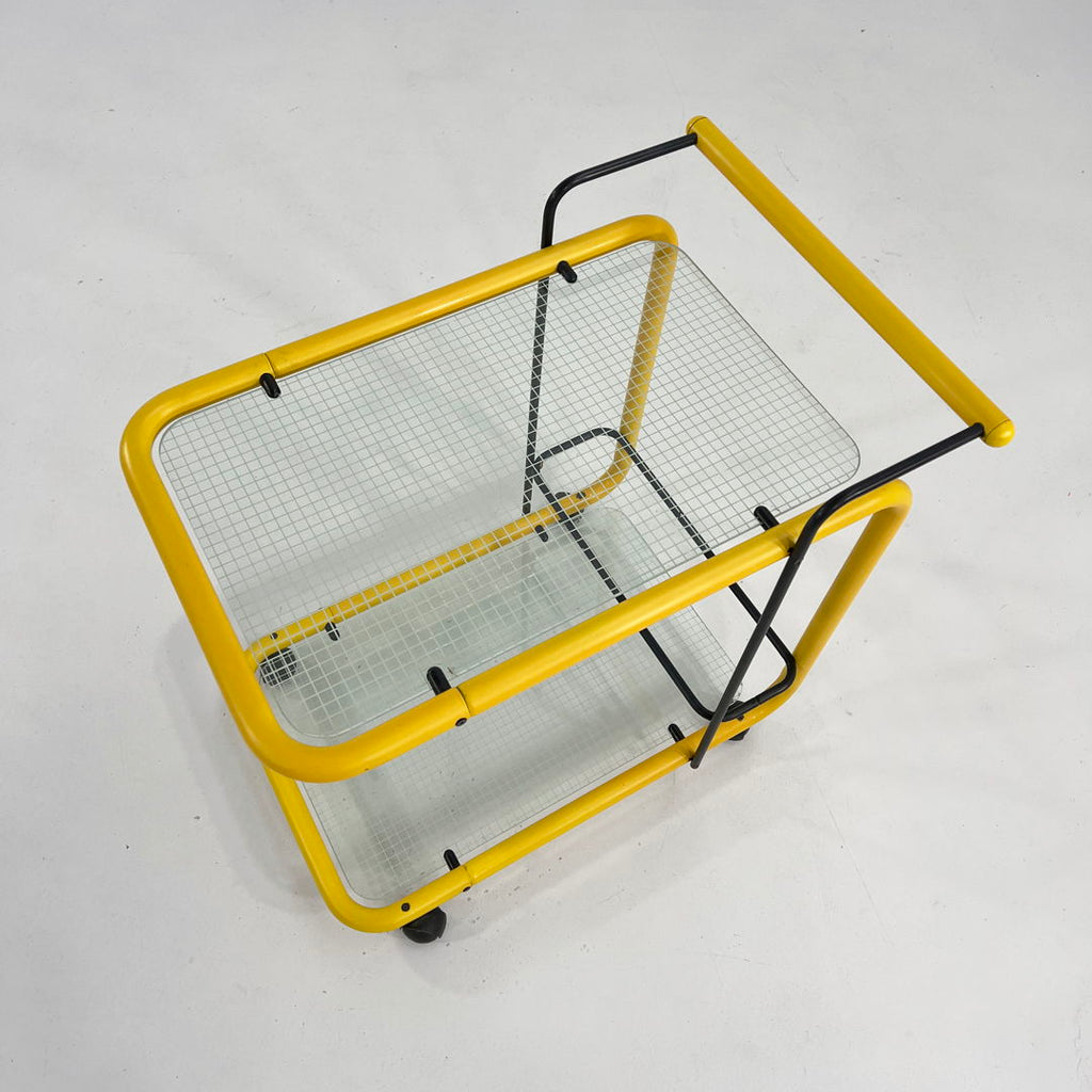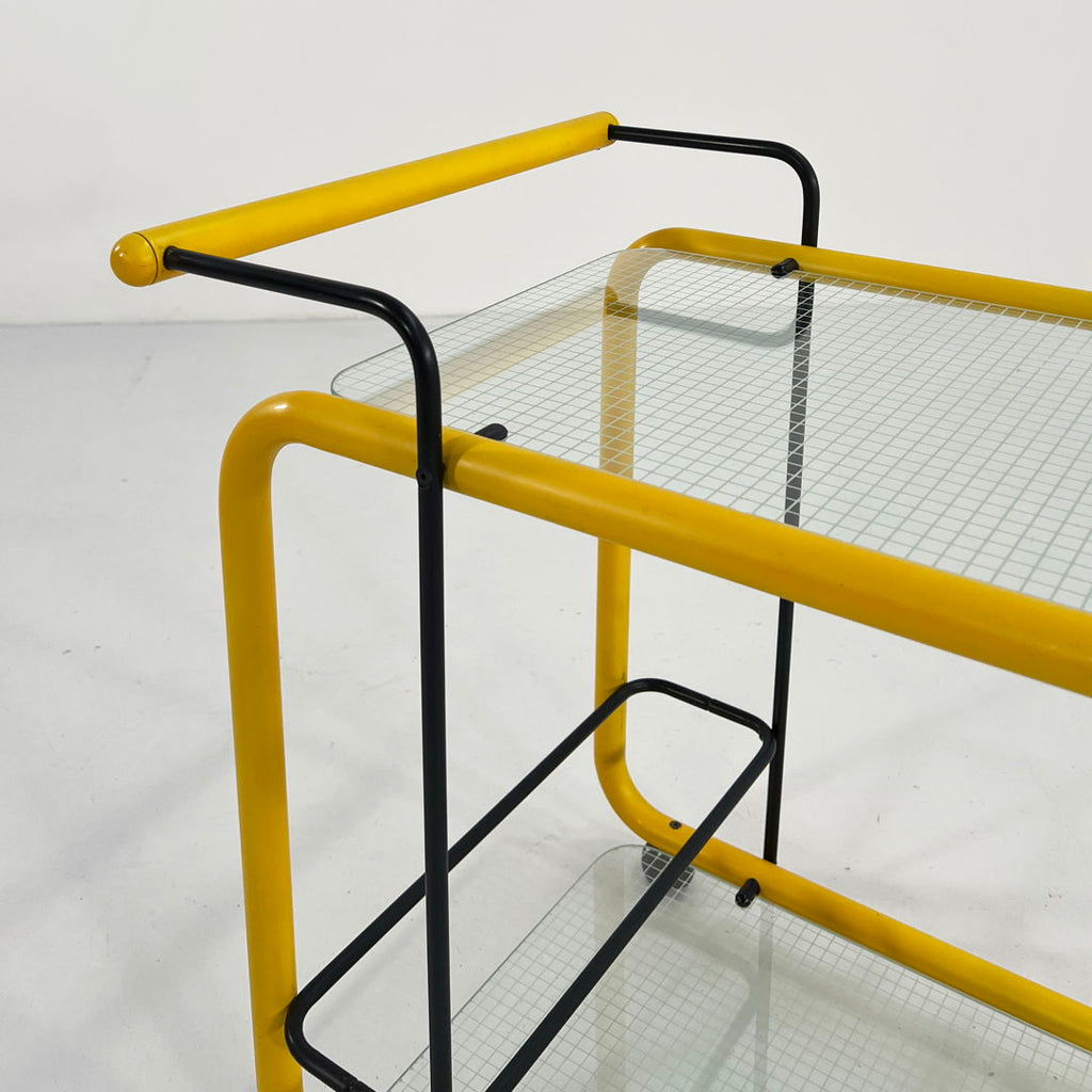 Yellow Postmodern Serving Trolley with Quaderna Pattern, 1980s