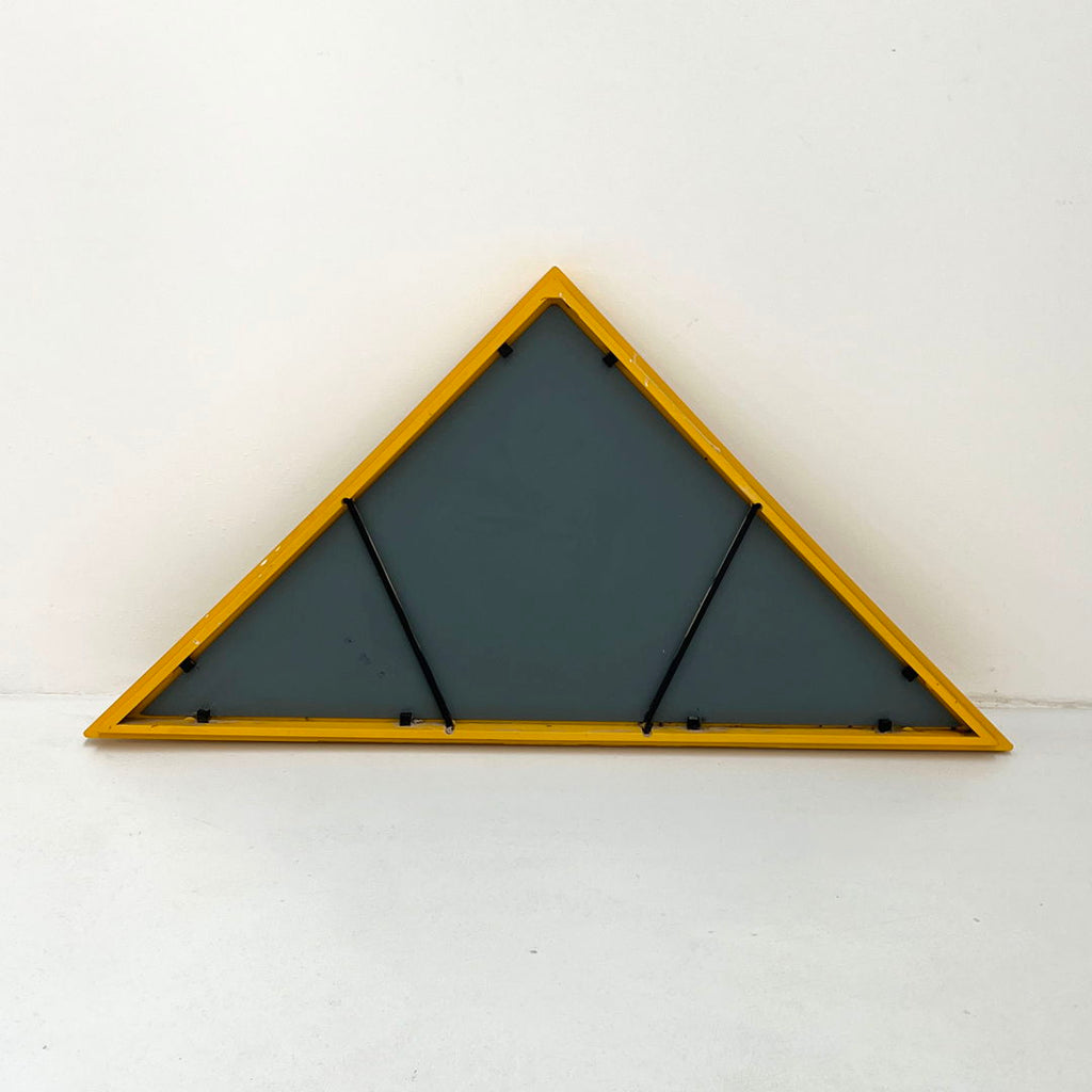 Kartell을 위한 Anna Castelli Ferrieri의 노란색 삼각형 프레임 거울, 1980년대 디자이너 - Anna Castelli Ferrieri 프로듀서 - Kartell 모델 - 모델 4720 설계 기간 - 80년대 측정 - 폭 100cm x 깊이 4cm x 높이 51cm 재료 - 발포 폴리우레탄, 거울 색상 - 노란색 상태 - 좋은 코멘트 - 세월과 사용감에 따른 가벼운 착용감.