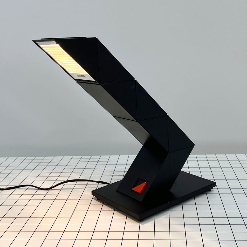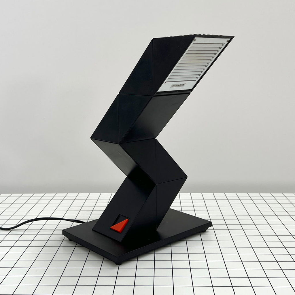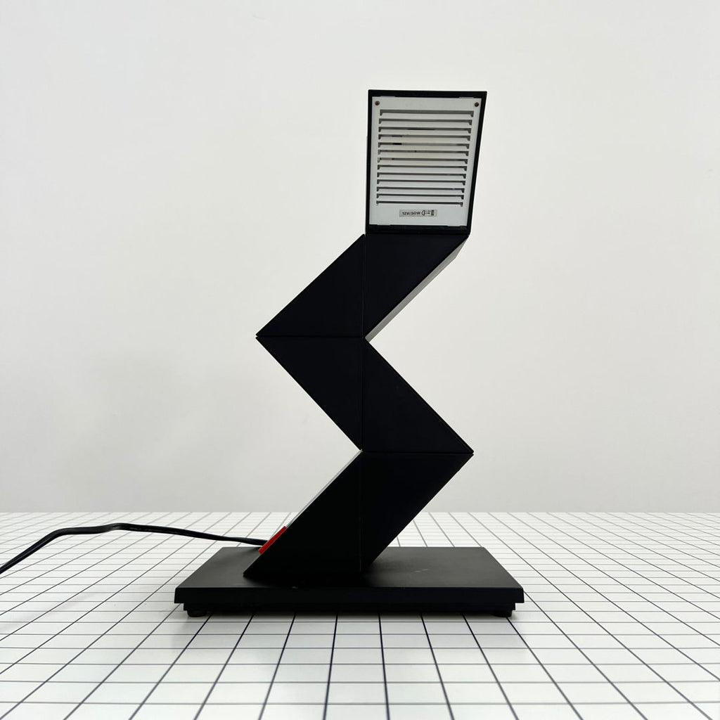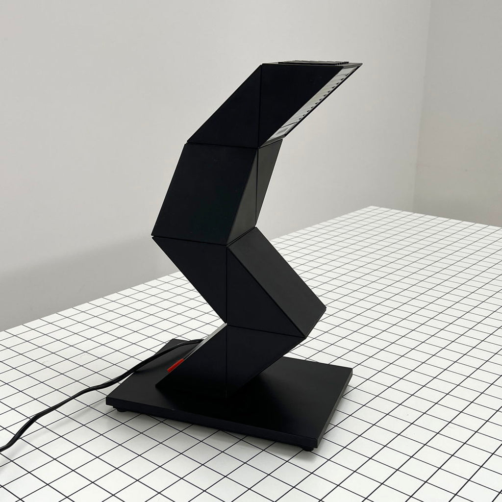 Zig Zag Desk Lamp by Chan Shui for Z-Lite, 1980년대 디자이너 - Chan Shui 프로듀서 - Z-Lite 모델 - Zig Zag Desk Lamp 설계 기간 - 80년대 치수 - 폭 17cm x 깊이 25cm x 높이 38cm 재질 - 플라스틱 색상 - 검정색 전기적 특성 - 전기적 특성 - 유럽식 플러그(220~240V) / 전구 G4 상태 - 좋음 의견 - 연식 및 사용에 따른 가벼운 마모.