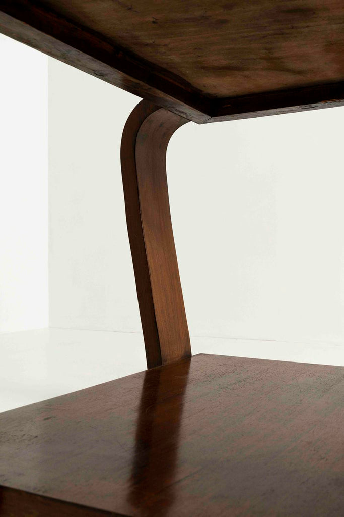 이 테이블은 각 모서리에 4개의 구부러진 '다리'로 연결된 직사각형 상단과 하단이 특징입니다. 테이블은 매력적이며 사용 기간에 따른 정상적인 사용으로 인해 좋은 상태를 유지하고 있습니다.