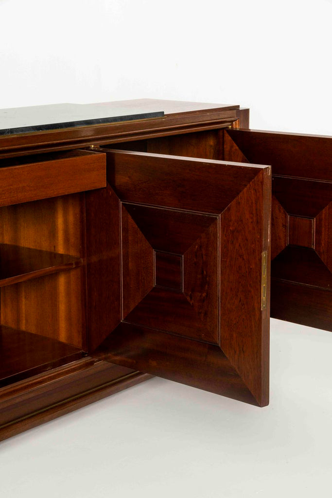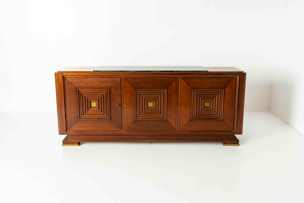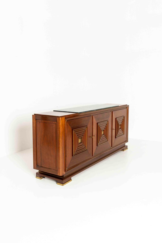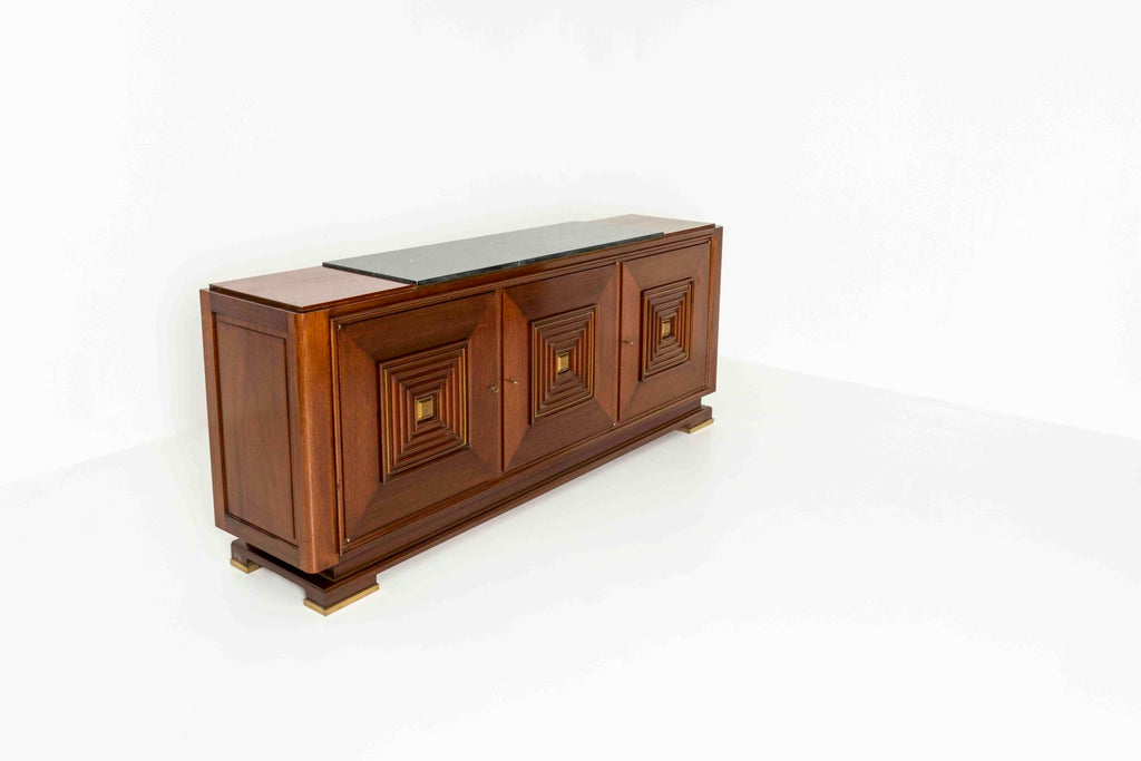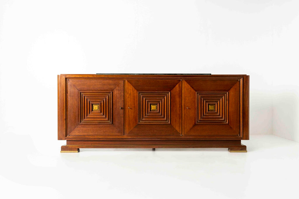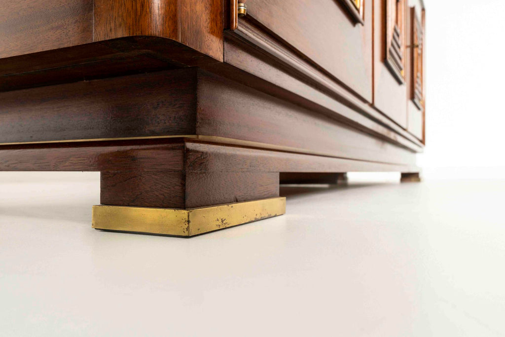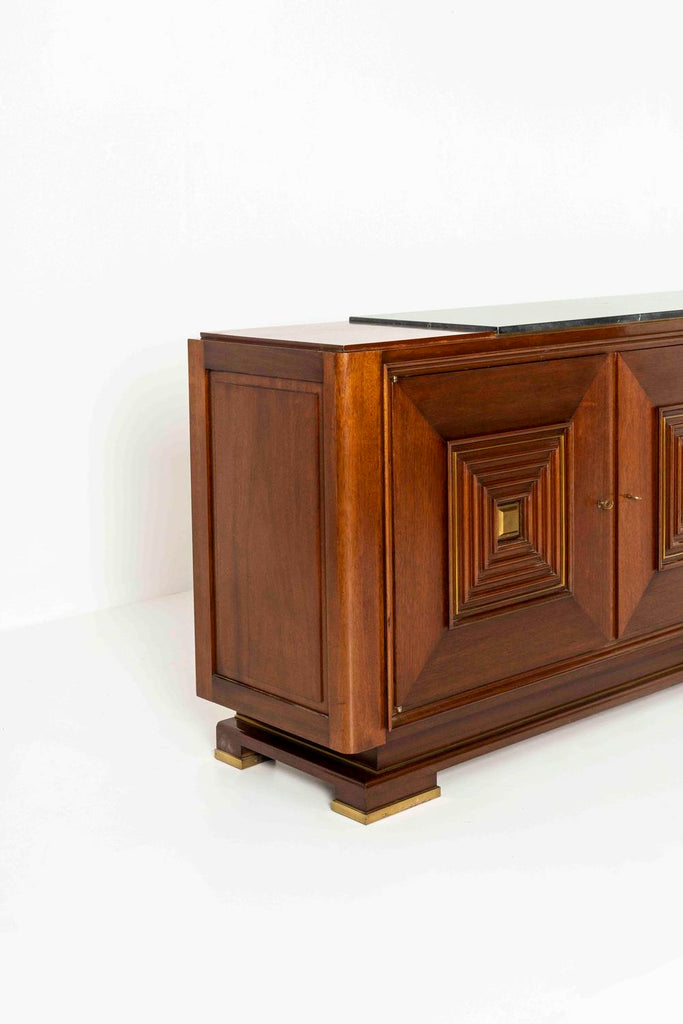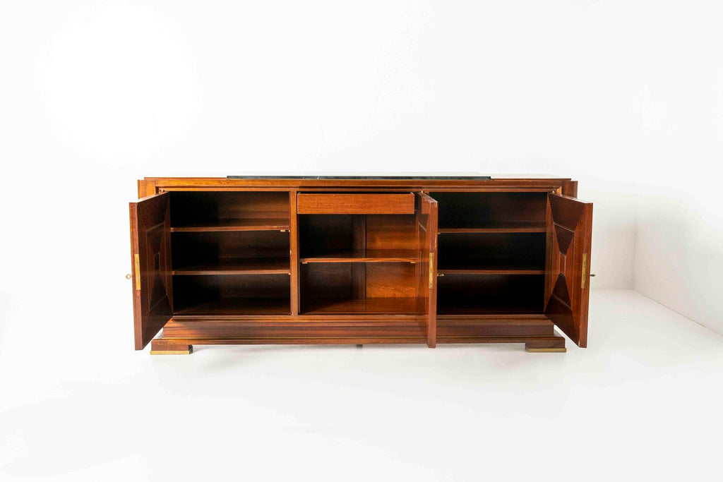 Art Deco Sideboard in Mahogany with Brass and Marble in the Style of Maxime Old, France 1940s