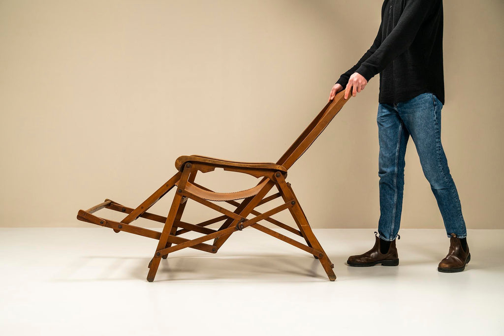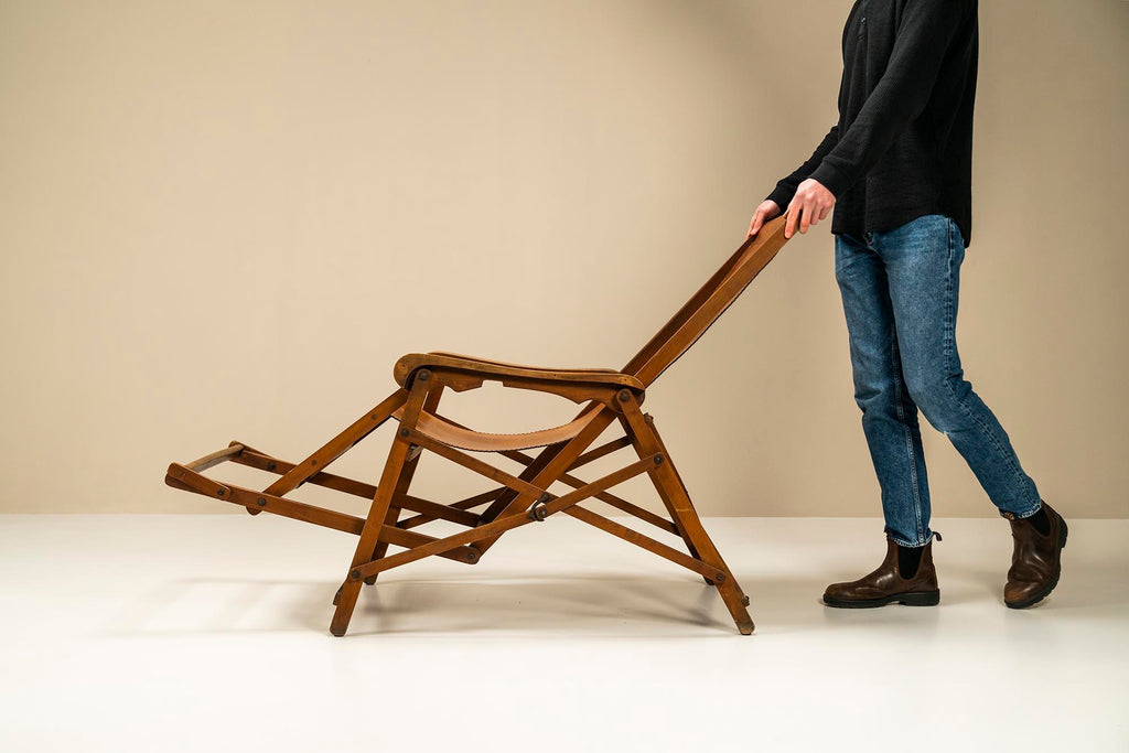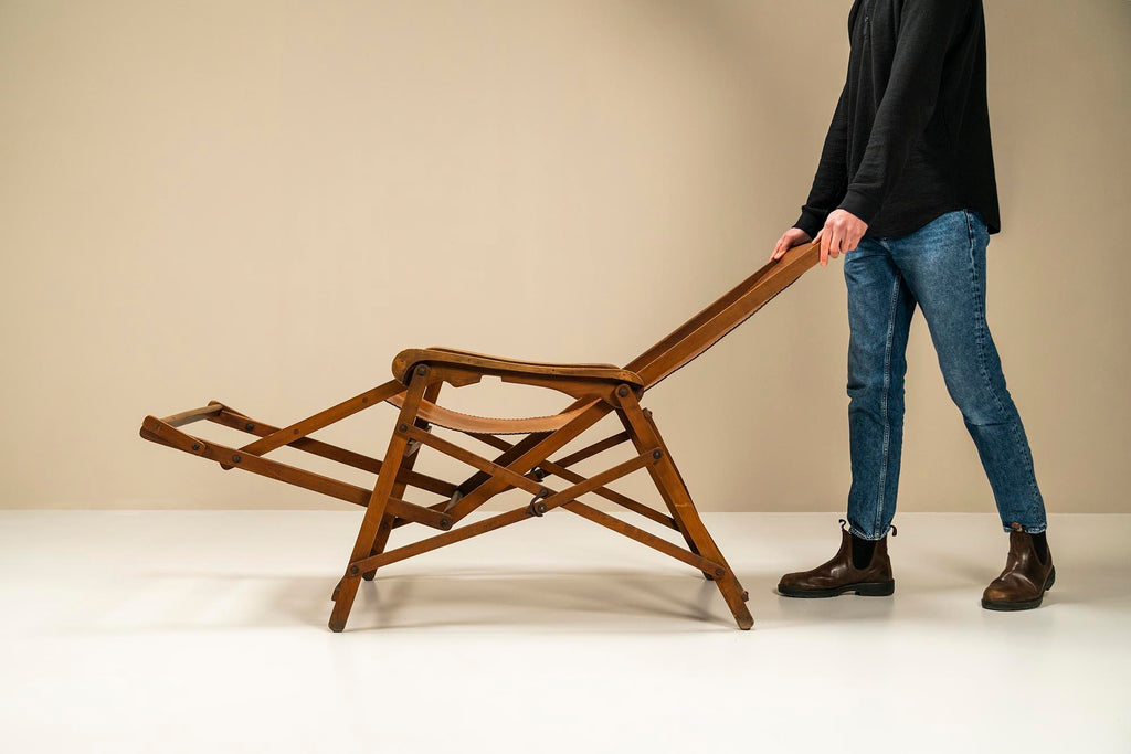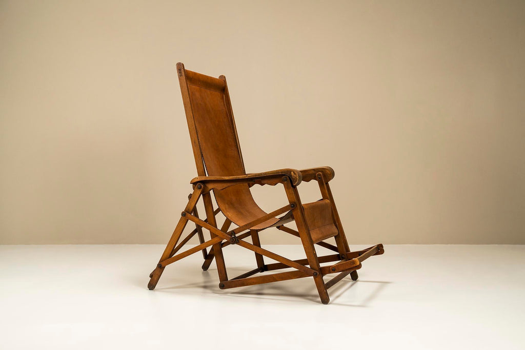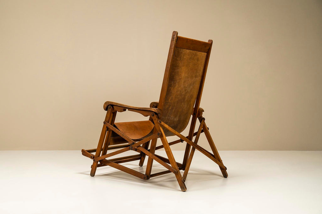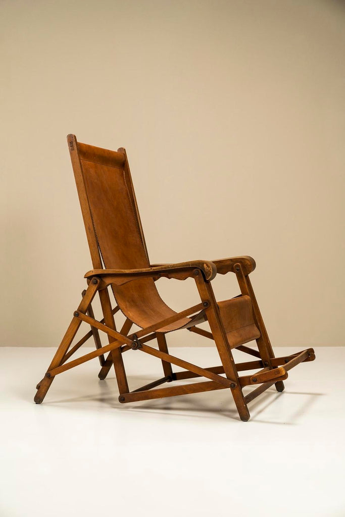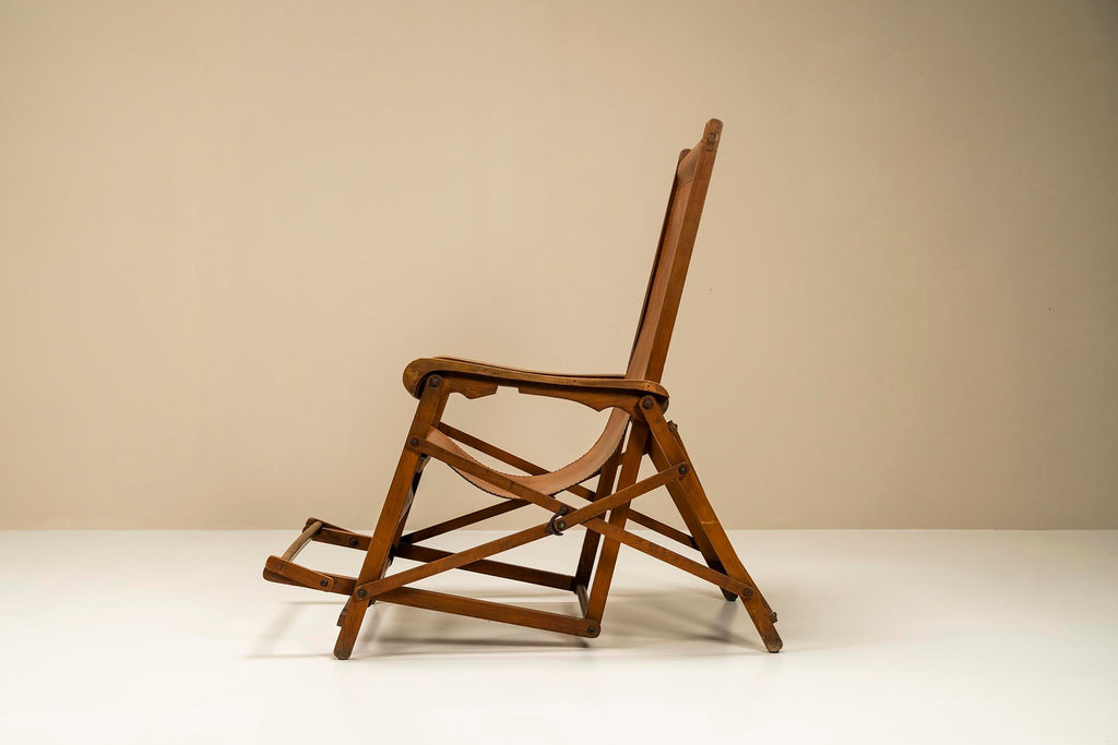 Deck lounge Chair in Wood and Leather by Fratelli Reguitti X Louis Vuitton, Italy 1938