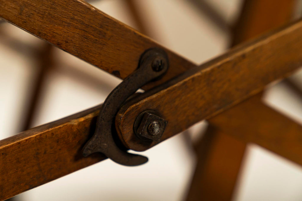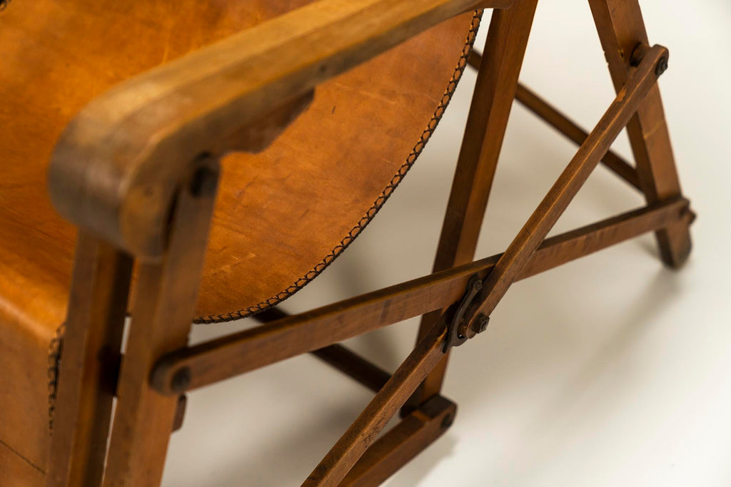 1938년 Fratelli Reguitti가 Louis Vuitton과 공동으로 디자인한 데크 체어는 장인 정신과 디자인의 진정한 걸작입니다. 이 의자는 Fratelli Reguitti와 Louis Vuitton의 작업을 특징짓는 뛰어난 품질과 디테일에 대한 관심을 보여주는 완벽한 예입니다. 고품질의 원목을 사용하여 세심하게 제작되어 견고하면서도 우아한 프레임을 연출합니다. 의자를 덮는 가죽 테두리는 가장자리에 십자수로 테두리를 두어 디자인에 세련미를 더했습니다. 가죽 밑면에는 제조사 마크인 'Maker GIGI'S Leather'가 각인되어 진품임을 알 수 있습니다. 의자는 풍부한 역사와 출처를 가지고 있으며 한때 파도바에서 개인 소장품의 일부였습니다. 또한 시트가 원래 가죽으로 다시 천을 씌우고 이에 상응하는 원래 스티치로 복원되었습니다. 복원 작업은 Louis Vuitton/LMVH Group에서도 근무했던 Fiesso d'Artico의 Roberto Sartolini 워크숍에서 LMVH에 의해 수행되었습니다. 복원은 의자의 아름다움과 진정성을 보존했을 뿐만 아니라 그 시대와 용도를 말해주는 눈에 띄는 녹청도 부여했습니다. 스타일과 편안함을 모두 고려하여 디자인된 아름답고 기능적인 가구입니다. 의자의 상태는 약간의 긁힘과 자국이 있는 경년 및 사용과 일치하지만 이것이 매력과 특성을 더한다고 생각합니다. 결론적으로 이 의자는 훌륭하게 만들어진 가구의 놀라운 예입니다. 그 품질과 디자인은 타의 추종을 불허하며 역사와 기원이 매력을 더합니다. 이 의자는 기능적인 가구일 뿐만 아니라 어떤 공간에 세련미를 더할 수 있는 예술 작품이기도 합니다.