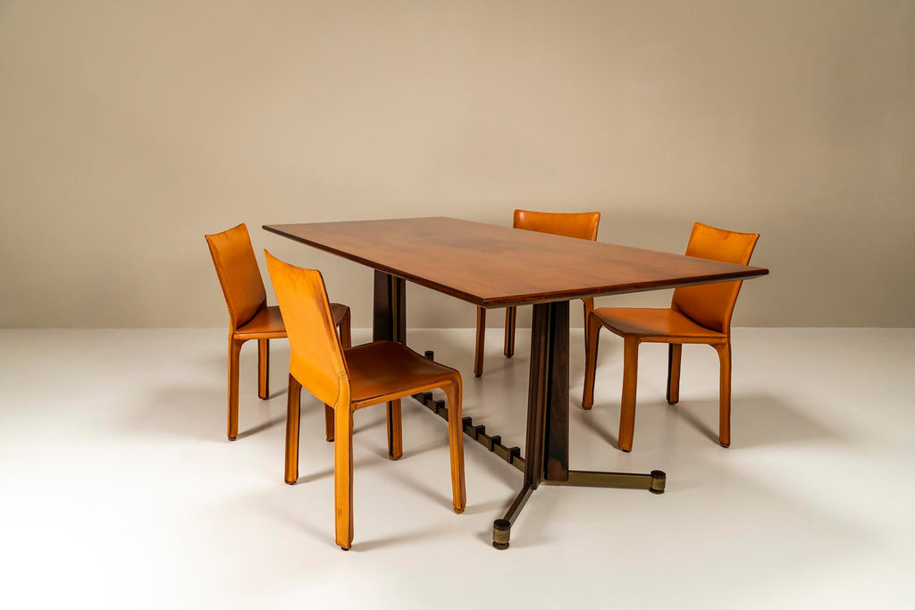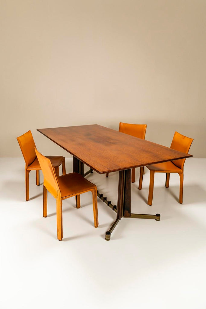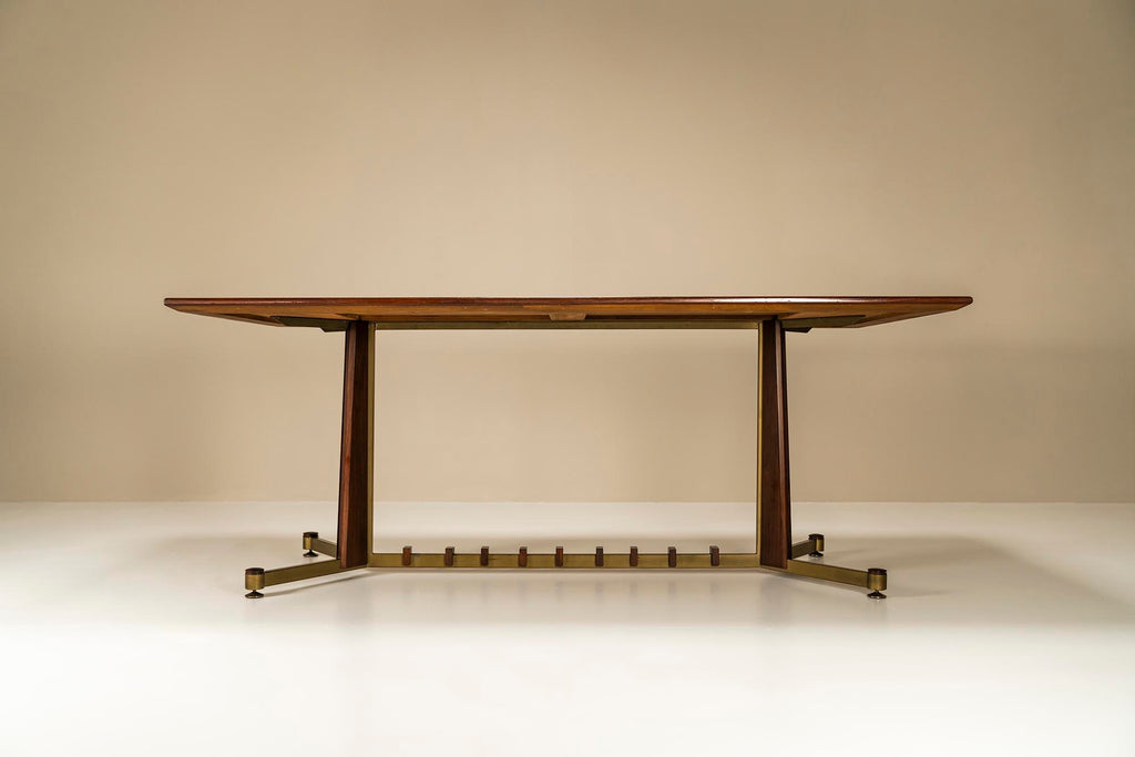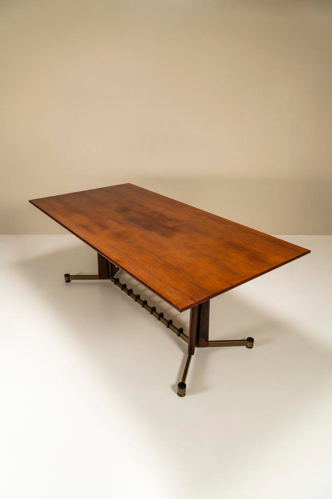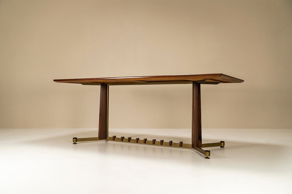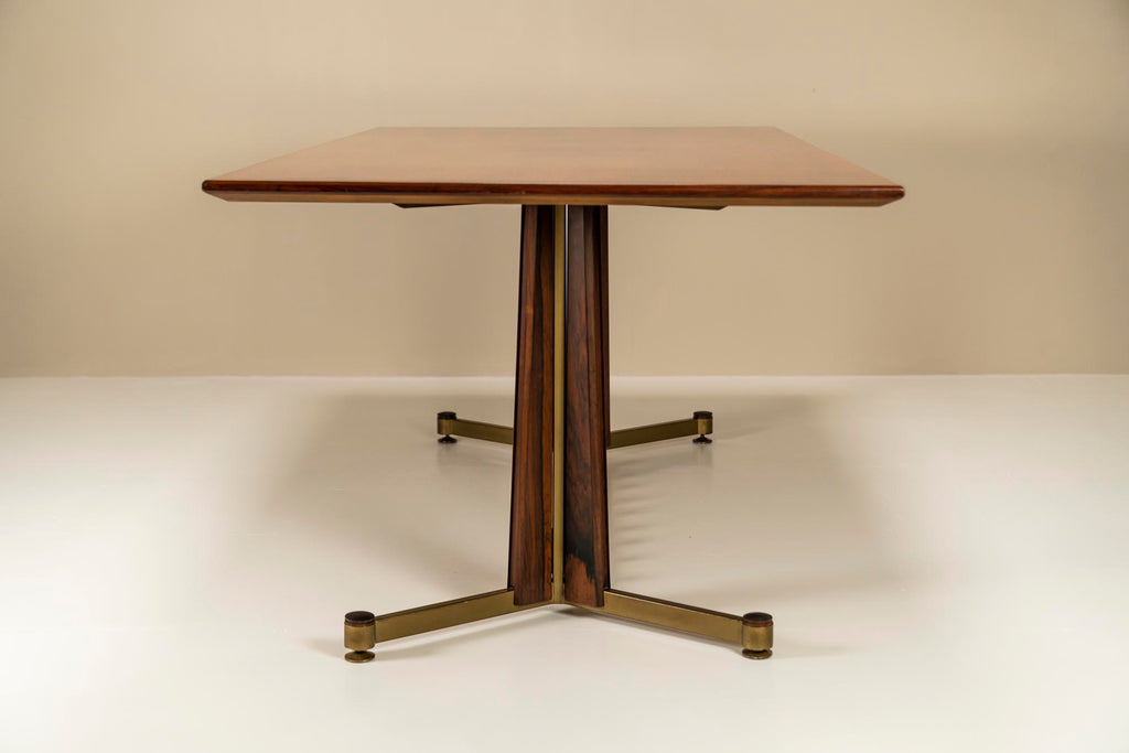 Dining Table in Mahogany, Rosewood and Brushed Brass, Italy 1960s