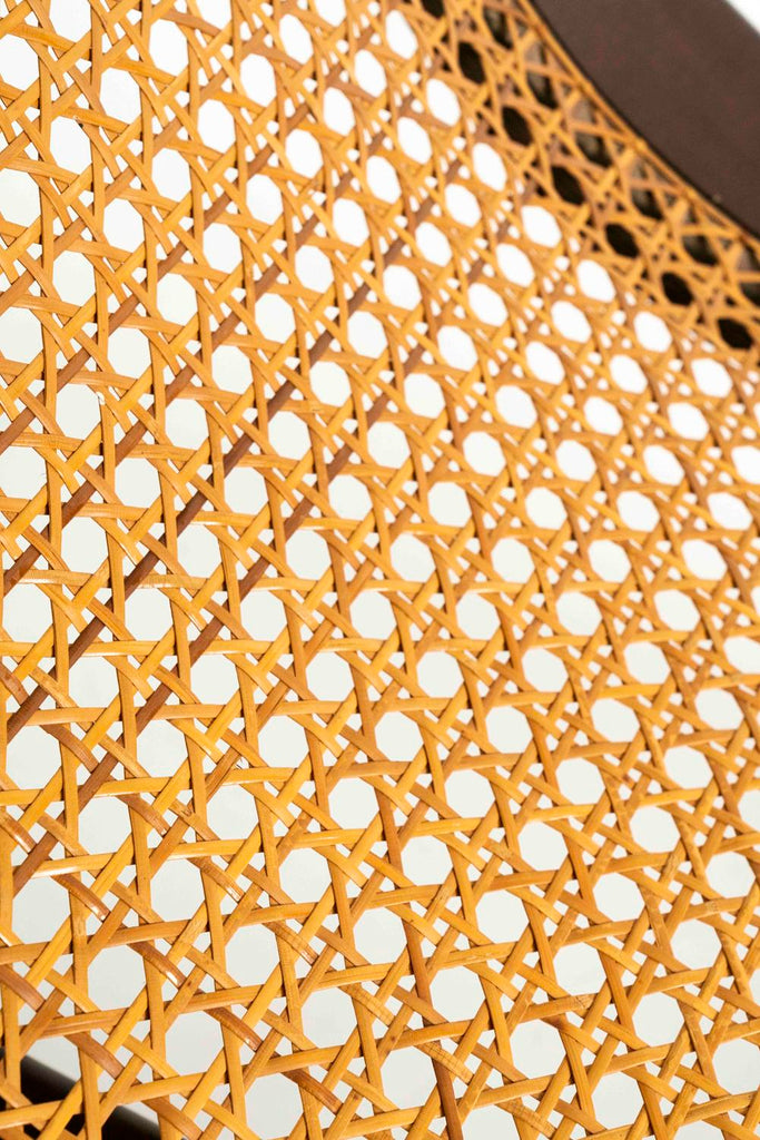 의자의 구조는 나무로 만들어졌으며 구부러진 좌석 공간과 4개의 비대칭 다리가 특징입니다. 좌석 공간은 지팡이로 만들어졌습니다. 이 의자는 예술품이며 오래된 덕분에 약간의 사용감이 있는 좋은 상태입니다.