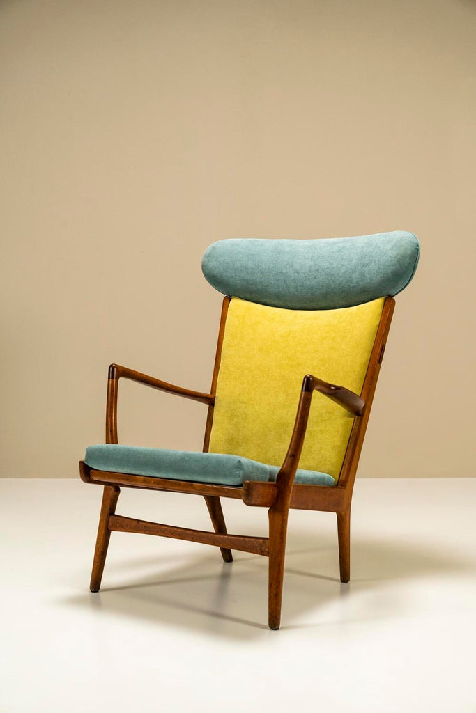 Hans Wegner 'AP-15' Wingback Lounge Chair in Teak and Two-tone Fabric, Denmark 1951