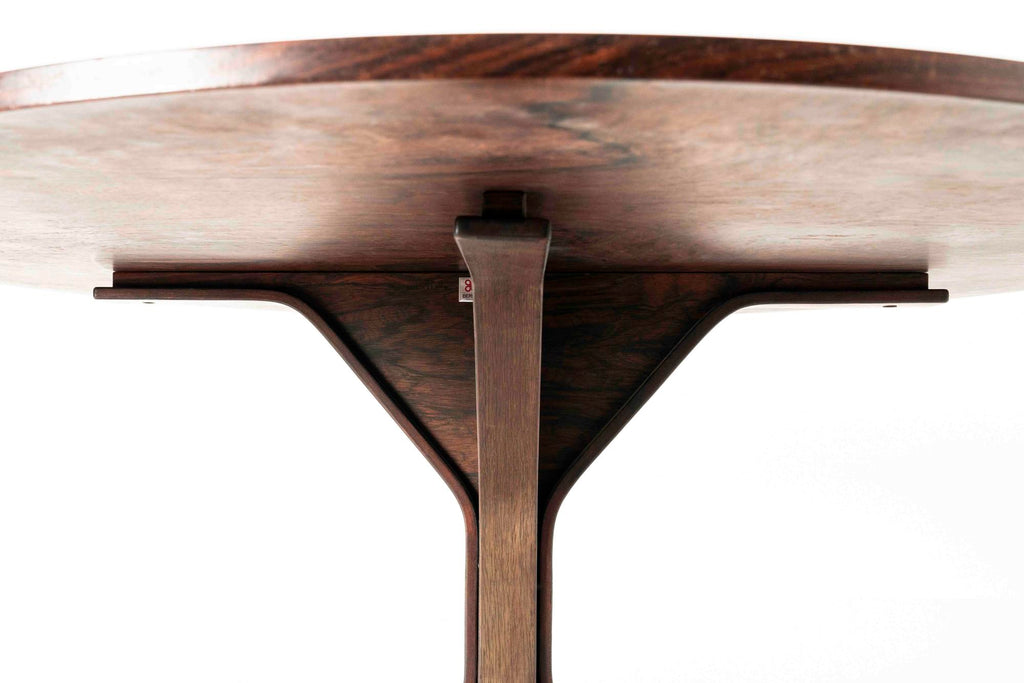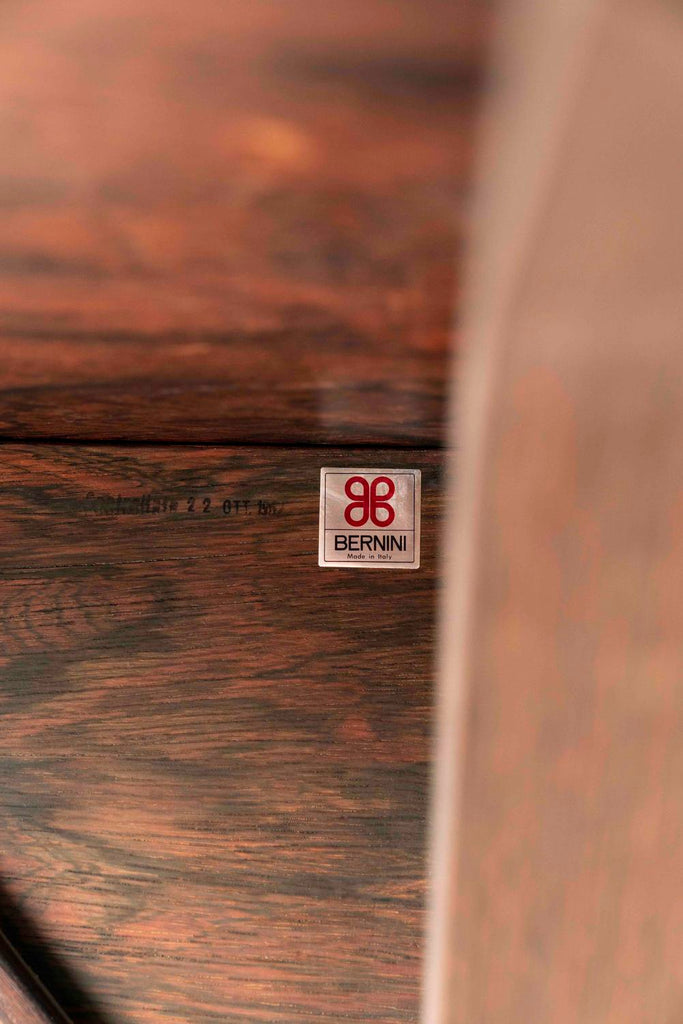 1960년대 이탈리아 베르니니를 위한 지안프랑코 프라티니의 멋진 로즈우드 식탁. 모델 522가 있는 이 원형 식탁에는 Frattini의 소매가 있는 식별 가능한 베이스가 있습니다. 테이블 아래에 원래 베르니니 라벨이 있습니다. 테이블은 세월에 따른 약간의 사용감이 있는 좋은 상태입니다.