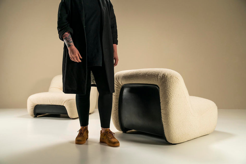 Set of 'Malu' Lounge chairs in White Bouclé by Claudio Vagnoni, Italy 1970s