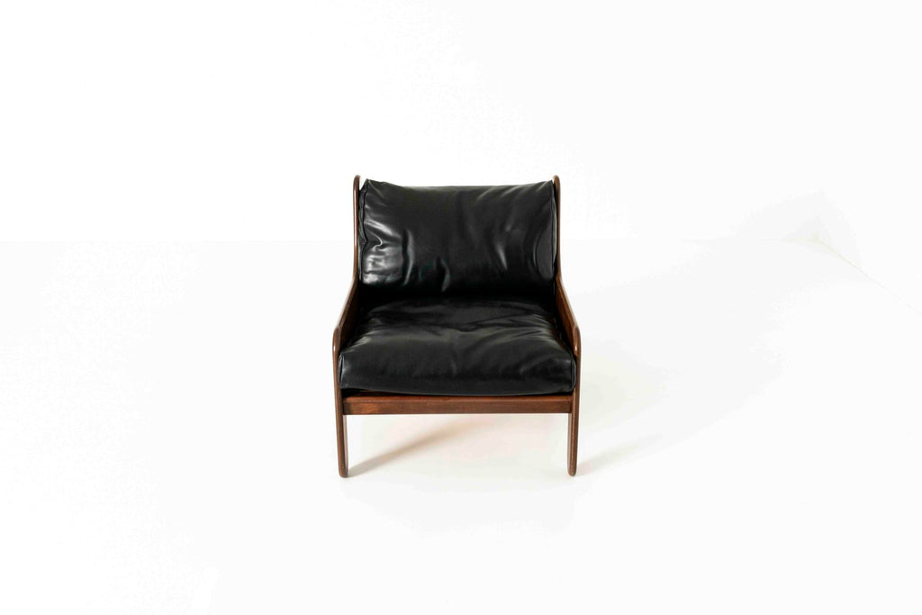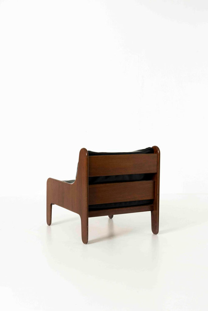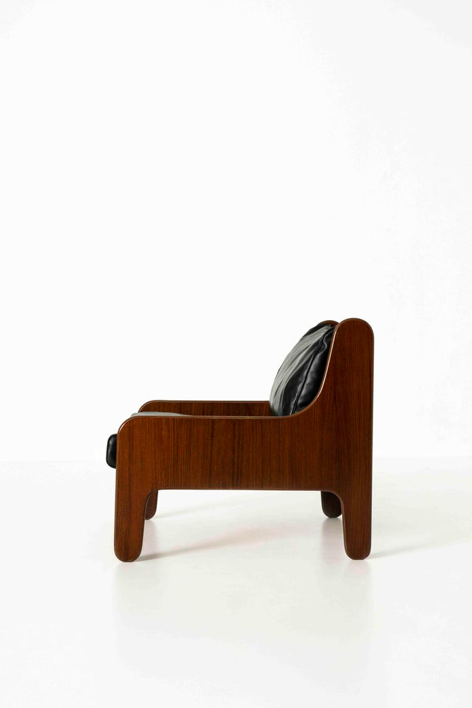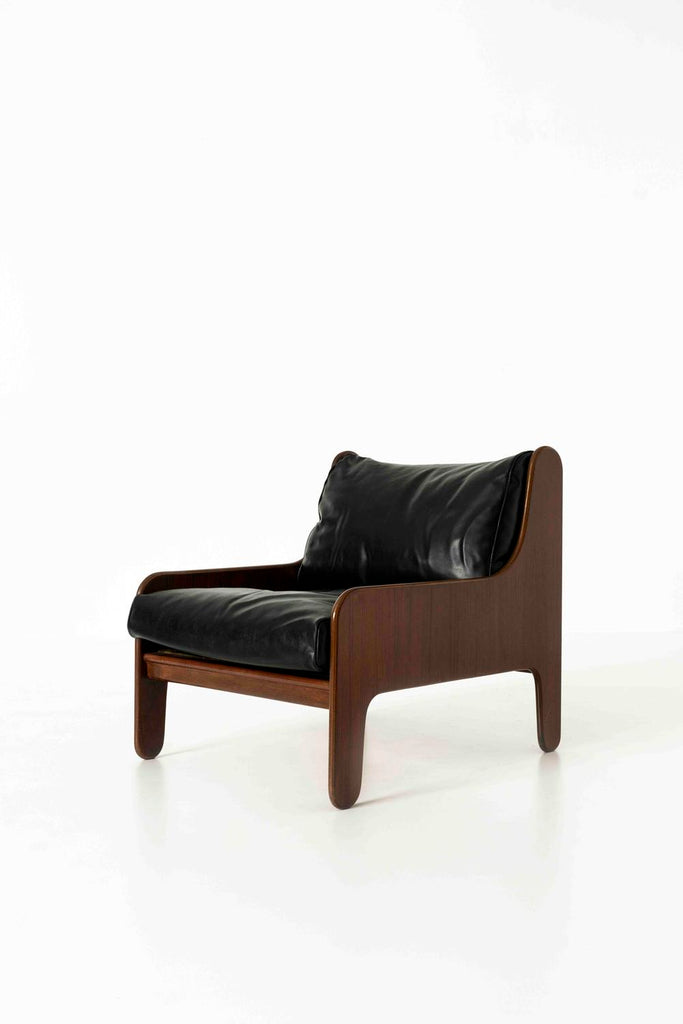 Arflex를 위한 Marco Zanuso의 멋진 Baronet 라운지 의자. 대략 1964년으로 거슬러 올라가는 이 의자에는 여전히 원래 레이블이 붙어 있습니다. 기초는 베니어가 있는 나무, 패딩 처리된 피부 및 검은색 가죽으로 덮인 쿠션으로 제작되었습니다.