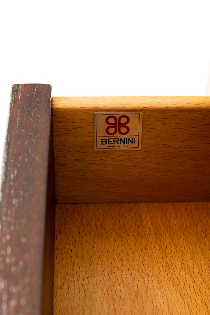 1963년 이탈리아 베르니니를 위한 지안프랑코 프라티니의 로즈우드 소재 캐비닛으로 찬장에는 3개의 탬버 도어, 왼쪽 뒤에는 네 개의 서랍이 있고 상단에는 'Bernini'라고 명확하게 표시되어 있습니다. 중간 및 오른쪽 문 뒤에는 선반이 있어 충분한 수납공간을 제공합니다