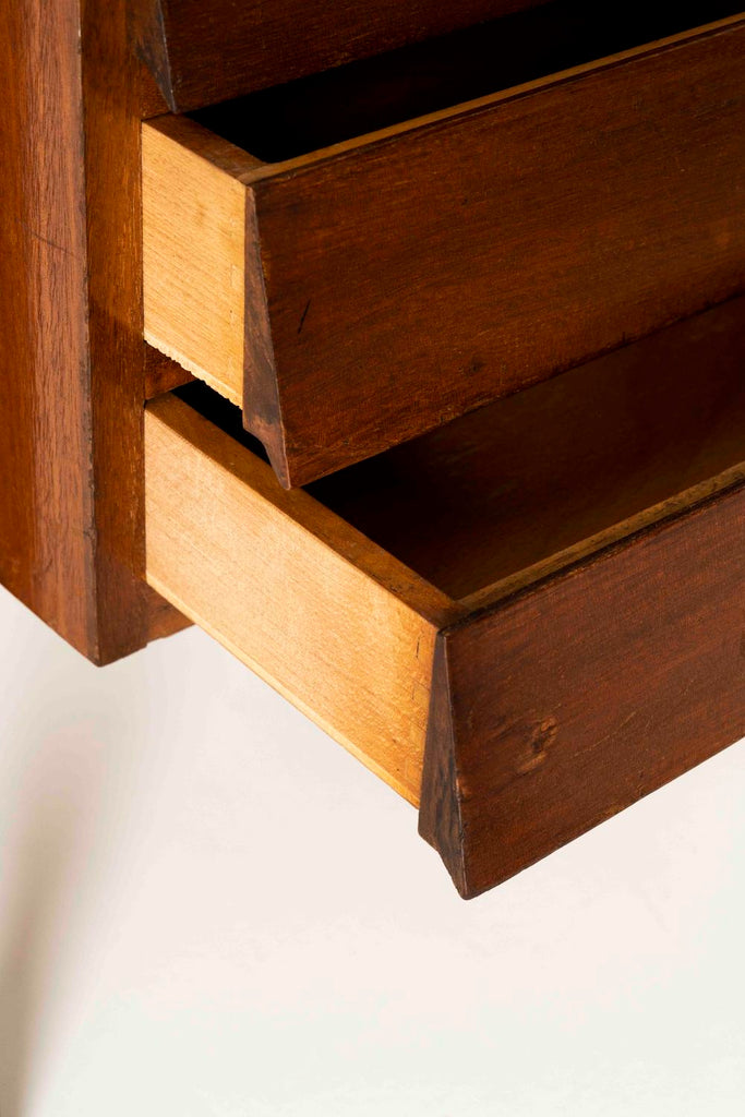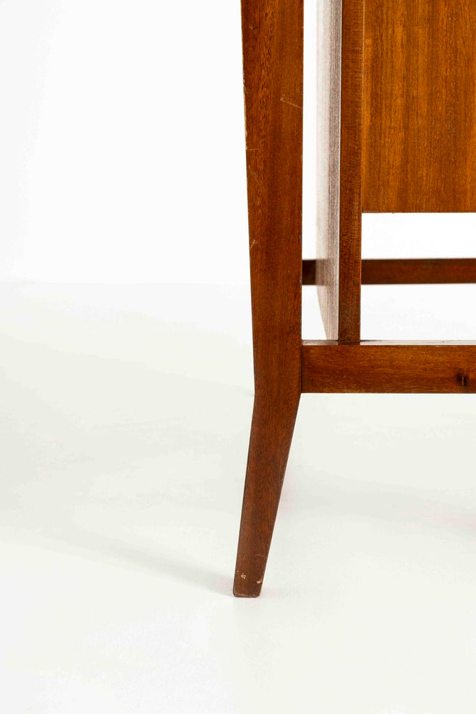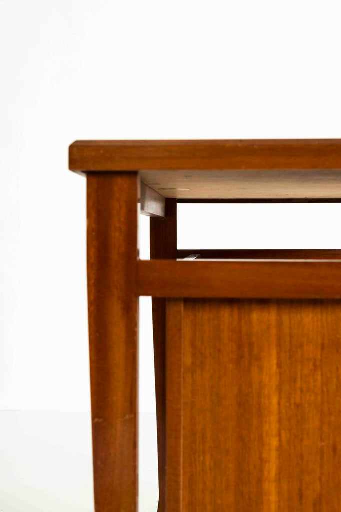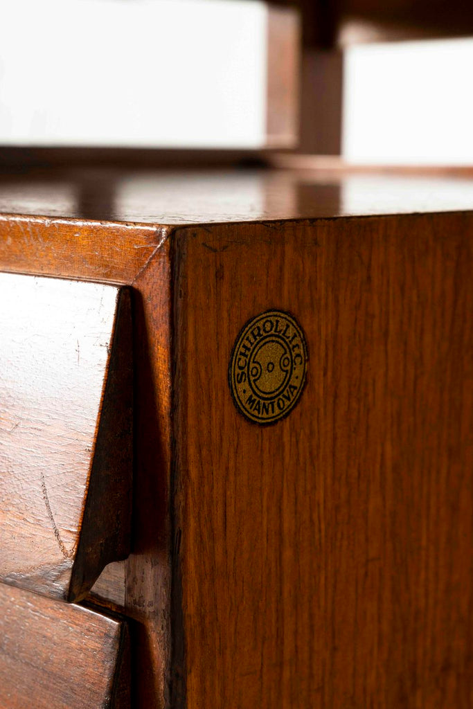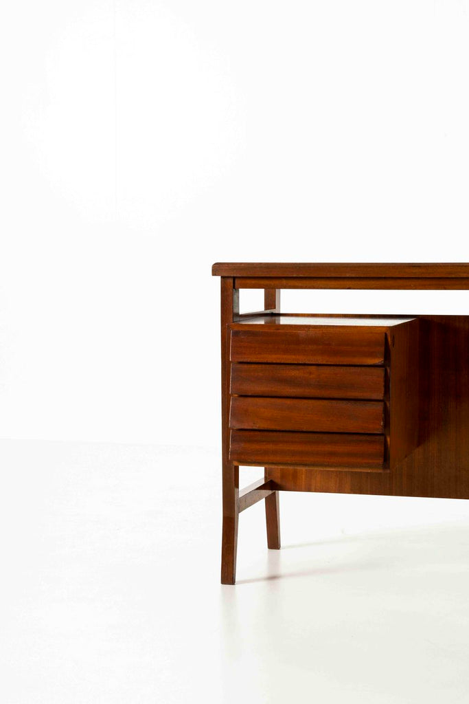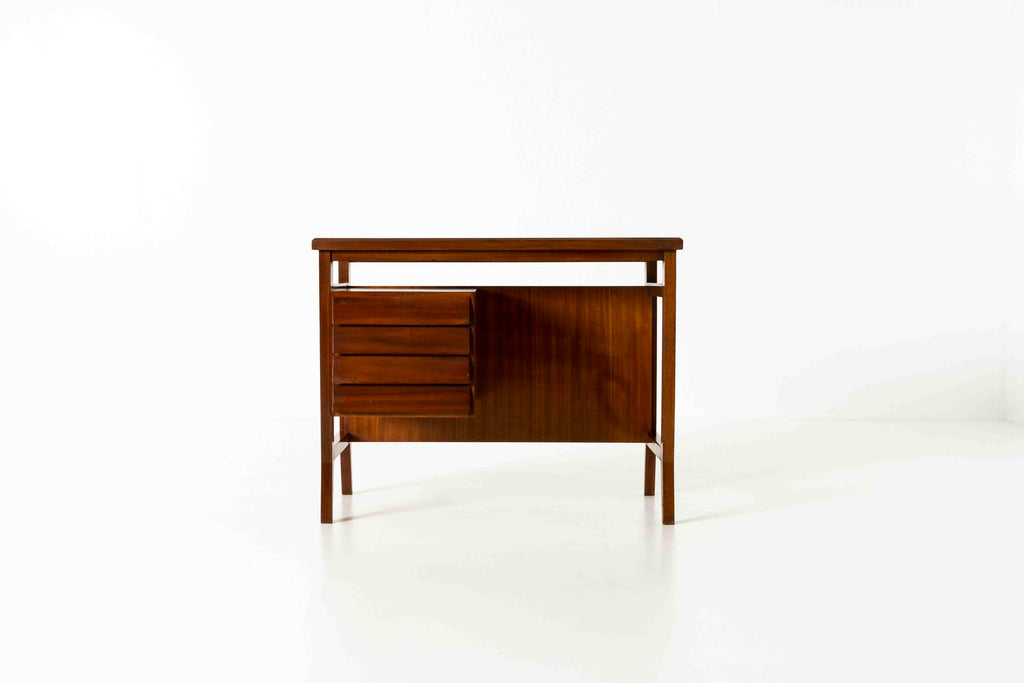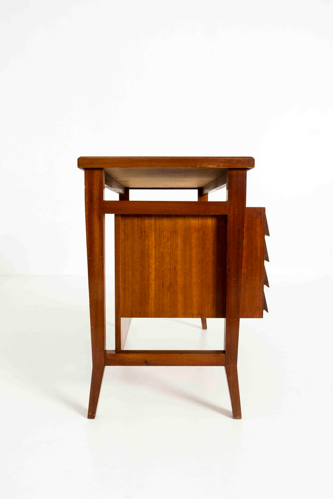 이탈리아 Mid-Century Modern 디자이너 Gio Ponti의 작은 작가 책상. 이 책상은 1960년대 Schirolli를 위해 제조되었으며 제조사 브랜드가 있습니다. 이 귀여운 나무 책상은 특히 작은 공간이나 어린이 방에 적합합니다. 네 개의 멋진 모양의 서랍과 눈에 띄는 다리 구조가 있는 멋진 디자인입니다.
