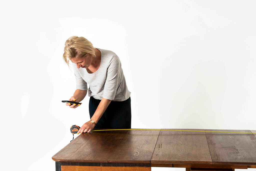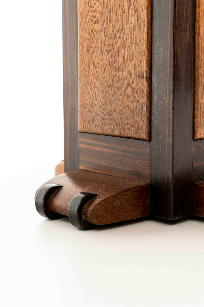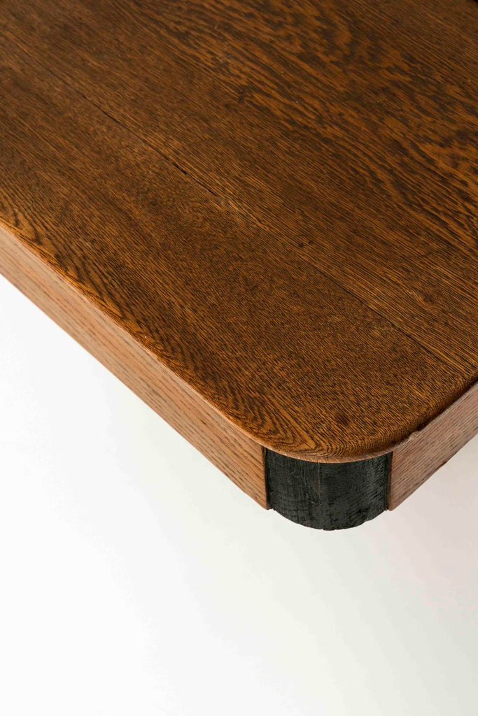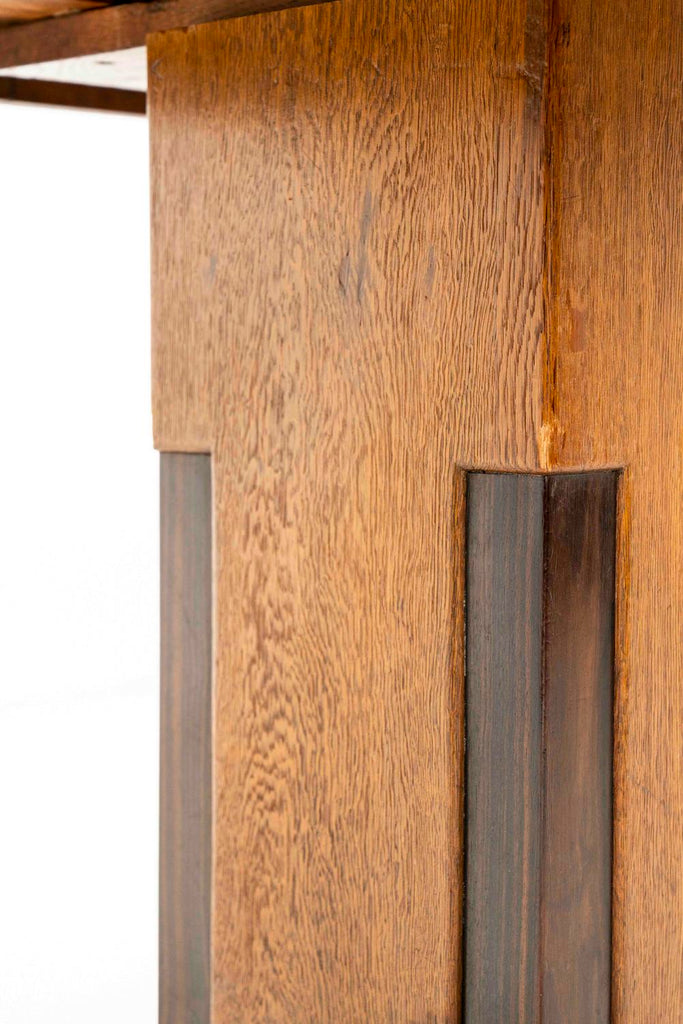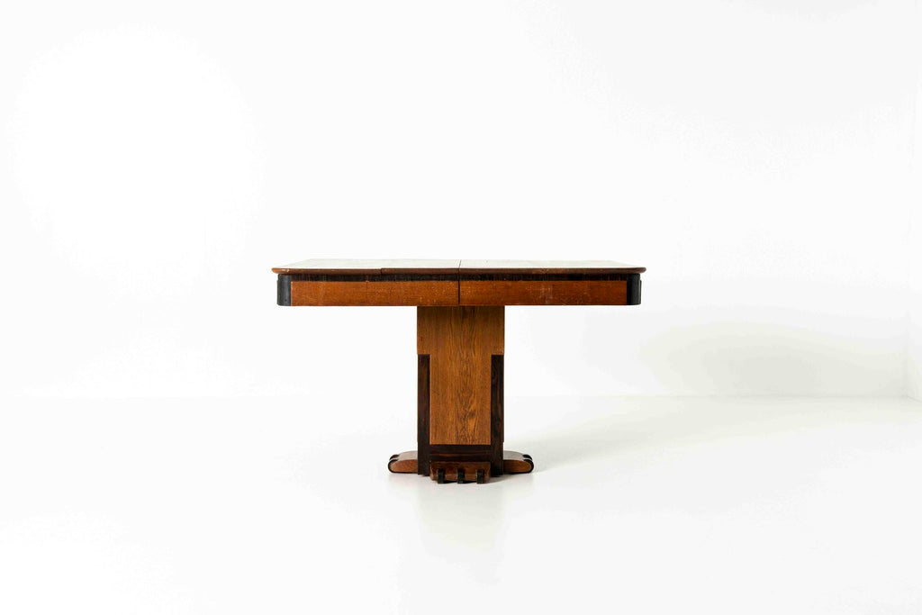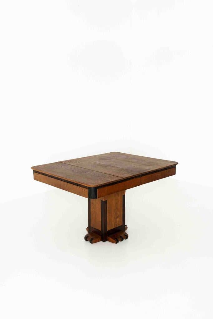 1920년대 네덜란드 헤이그 학교의 확장 가능한 식탁. 이 테이블에는 '사자의 발톱'처럼 보이는 인상적인 받침대가 있습니다. 상단에는 테이블 너비를 총 187cm로 만드는 두 개의 추가 요소가 숨겨져 있습니다.