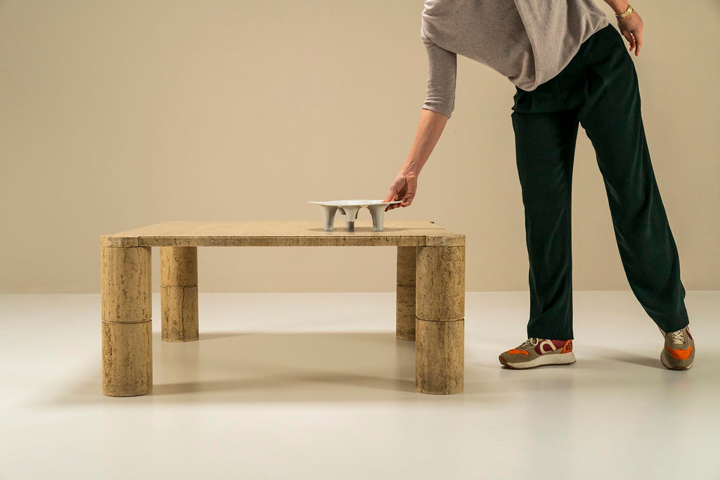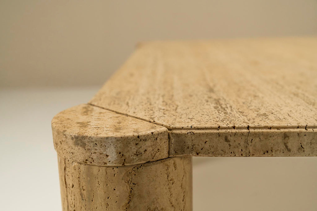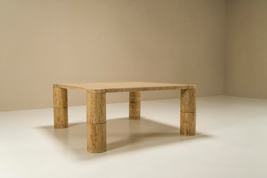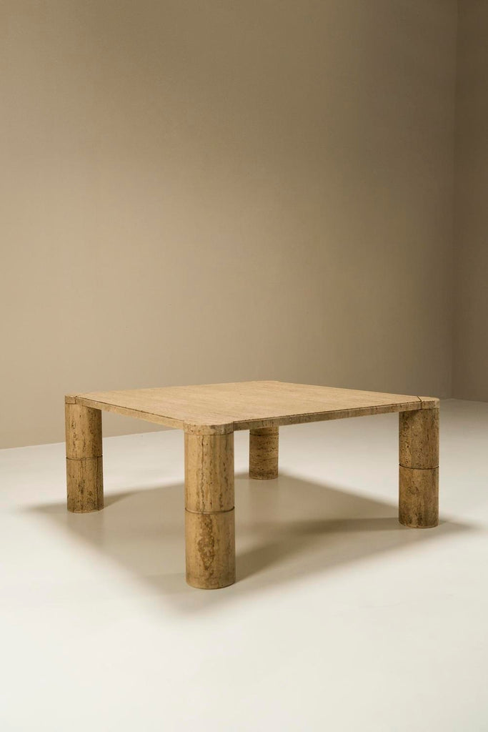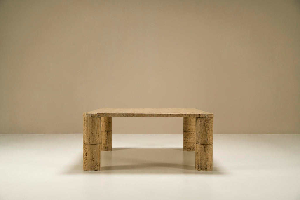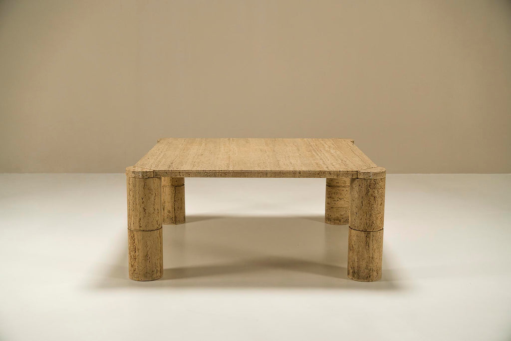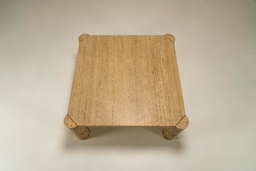 Travertine Square Coffee Table with Cylindrical Legs, France 1970s