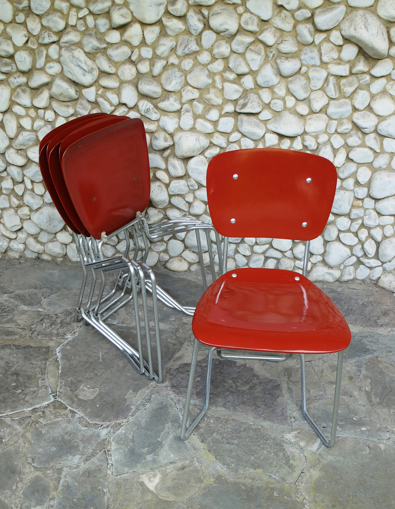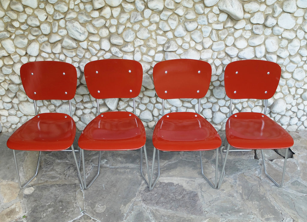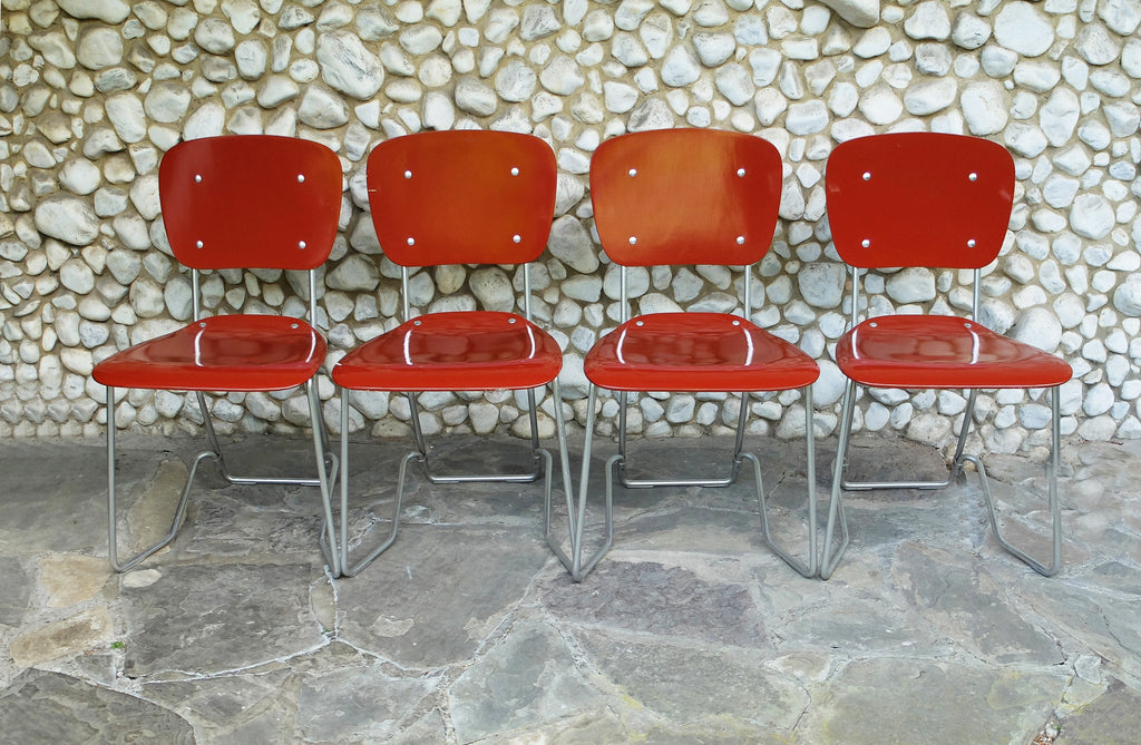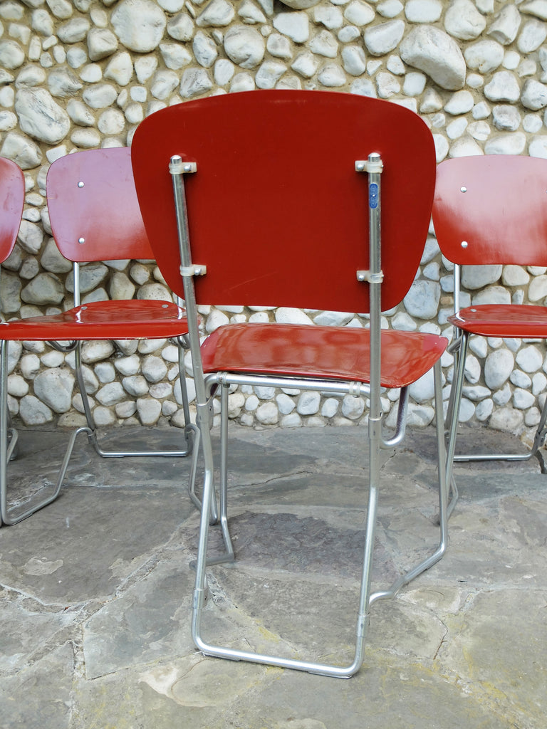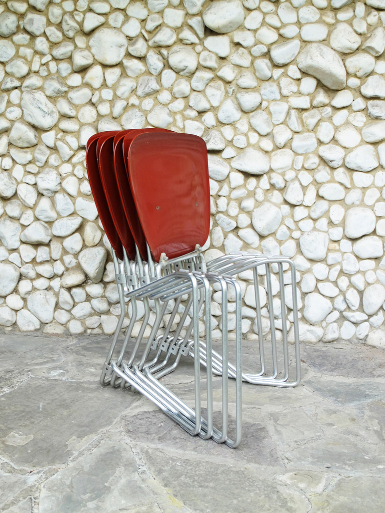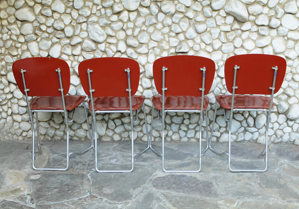Armin Wirth가 디자인하고 스위스의 Ph. Zieringer KG에서 제조한 쌓을 수 있는 Aluflex 의자 4개 세트.