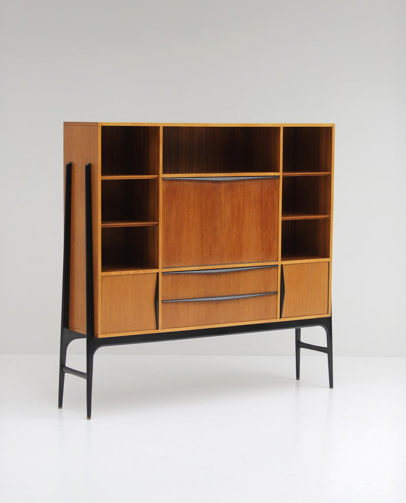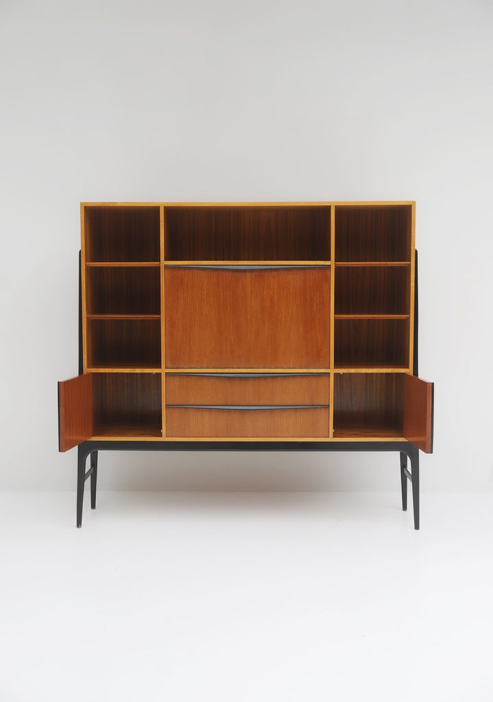 1950년대 Belform을 위해 Alfred Hendrickx가 디자인한 숨겨진 책상이 있는 매우 희귀한 하이보드.