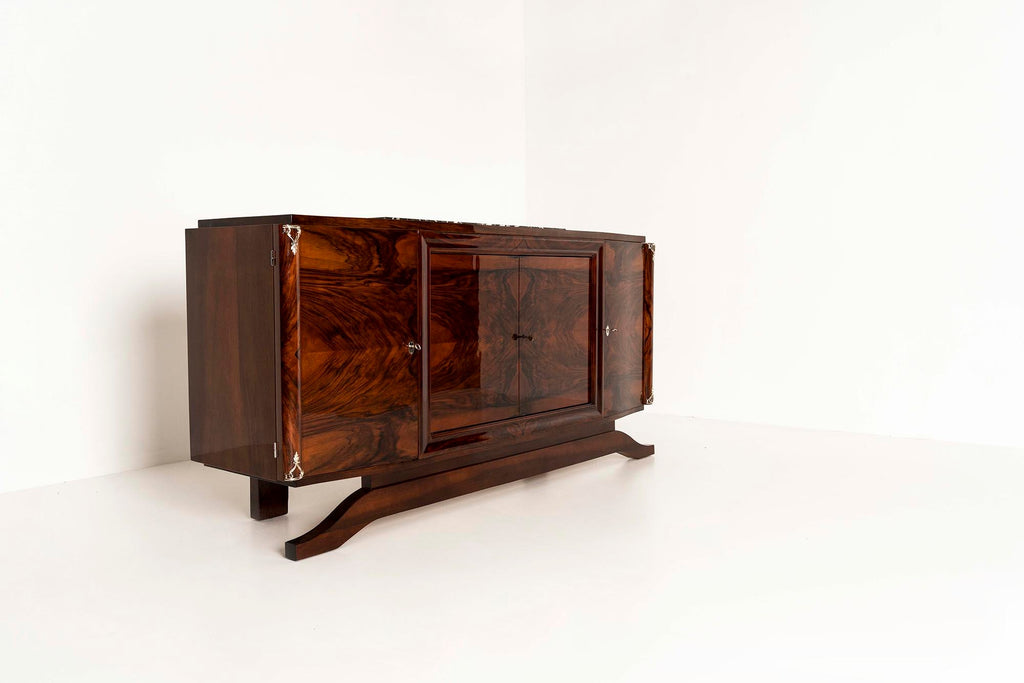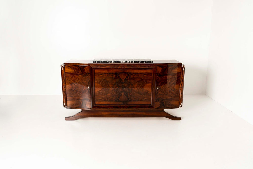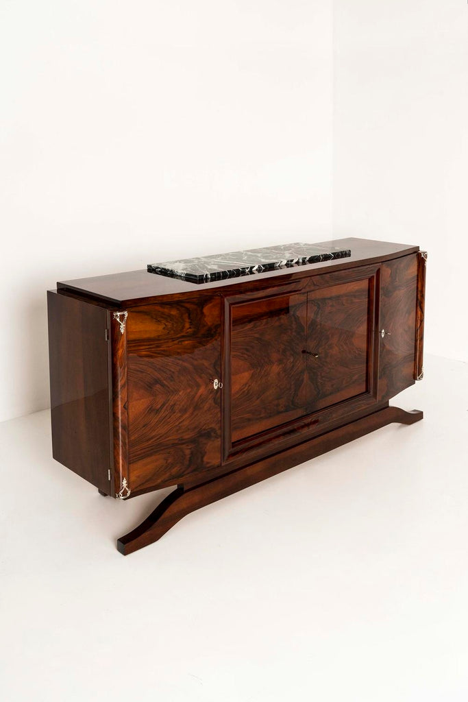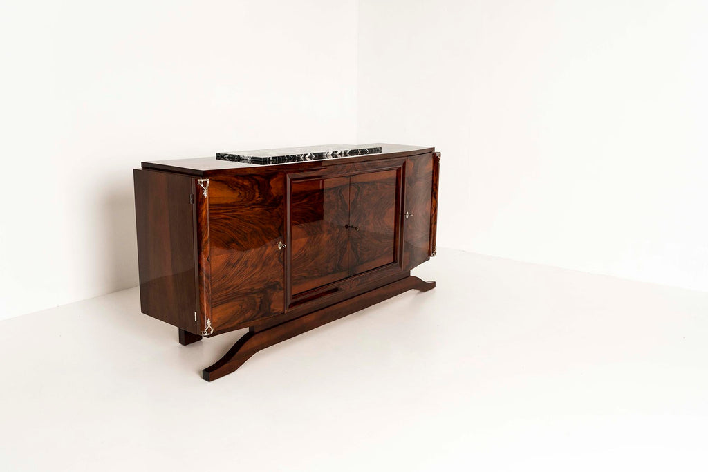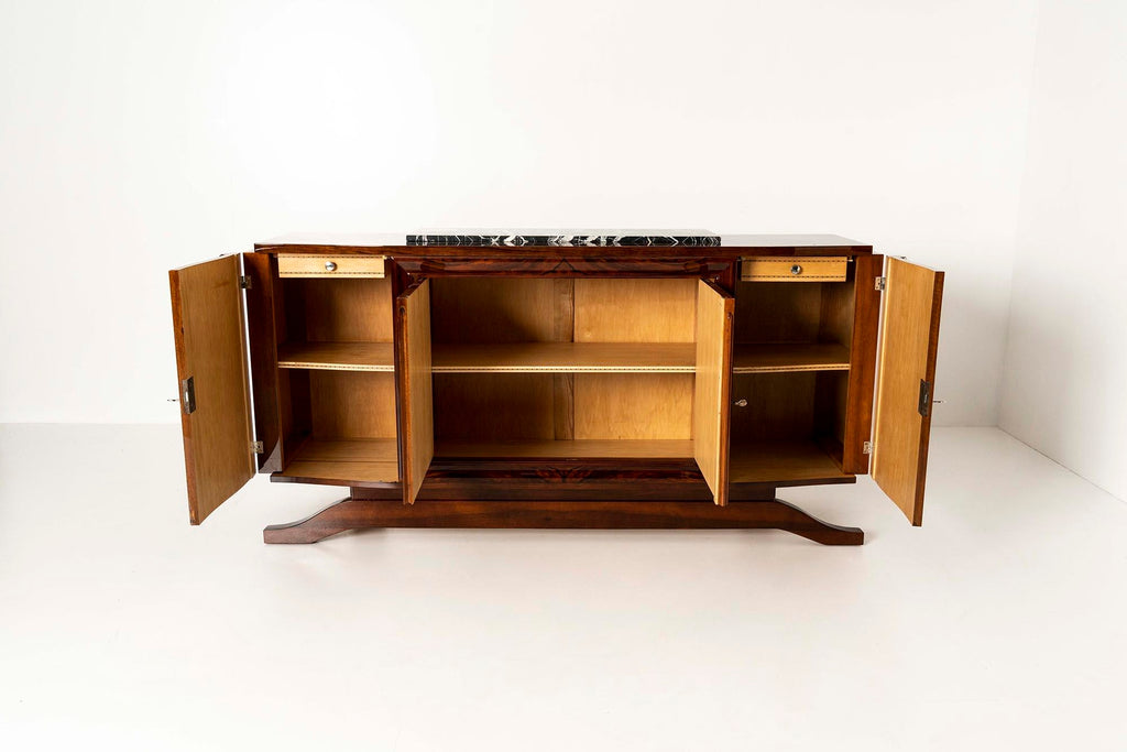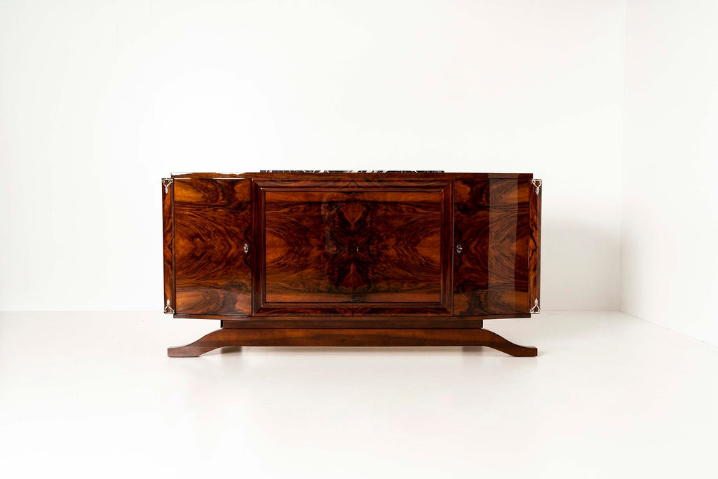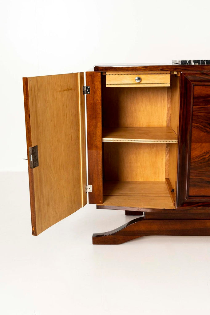Art Deco Sideboard in Walnut Burl and Marble,1930s