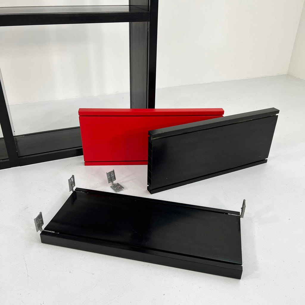 디자이너 - Ernesto Gismondi 프로듀서 - Artemide 모델 - 모듈식 "Dodona 300" 책장 디자인 기간 - 70년대 치수 - 폭 150 cm x 깊이 30 cm x 높이 210 cm 재료 - 플라스틱 색상 - 블랙 / 레드 나이와 사용에 맞는 가벼운 착용. 약간의 흠집이 있습니다.